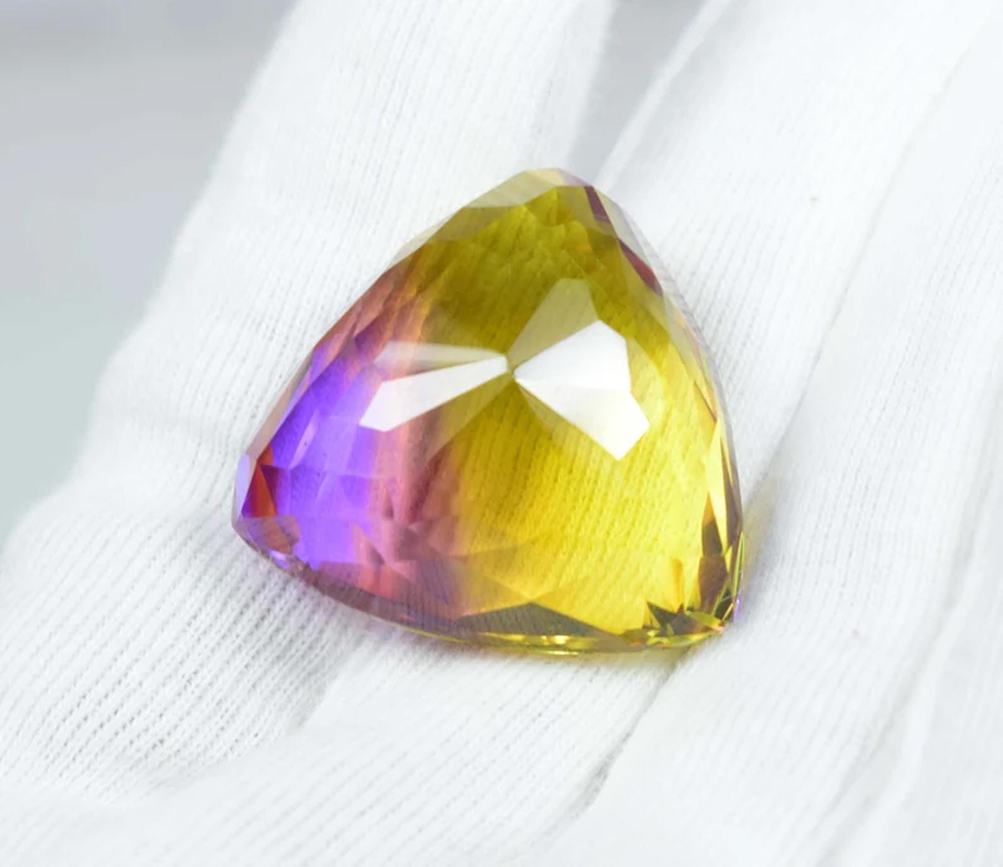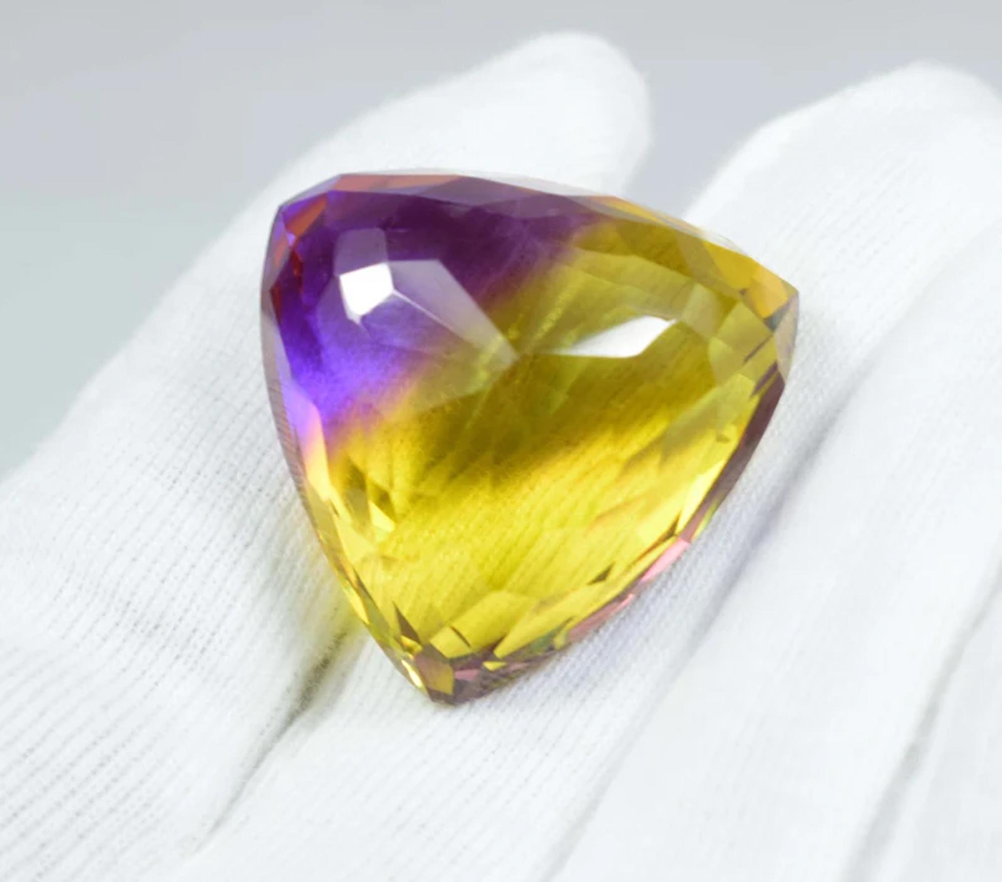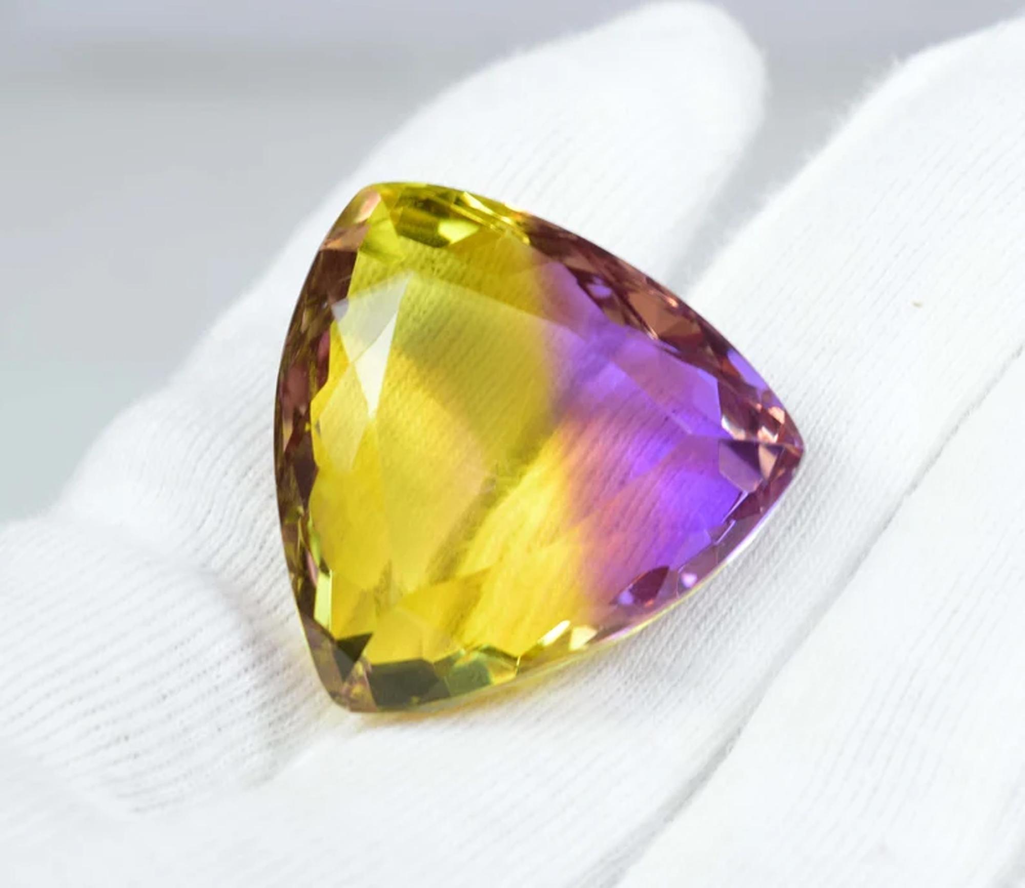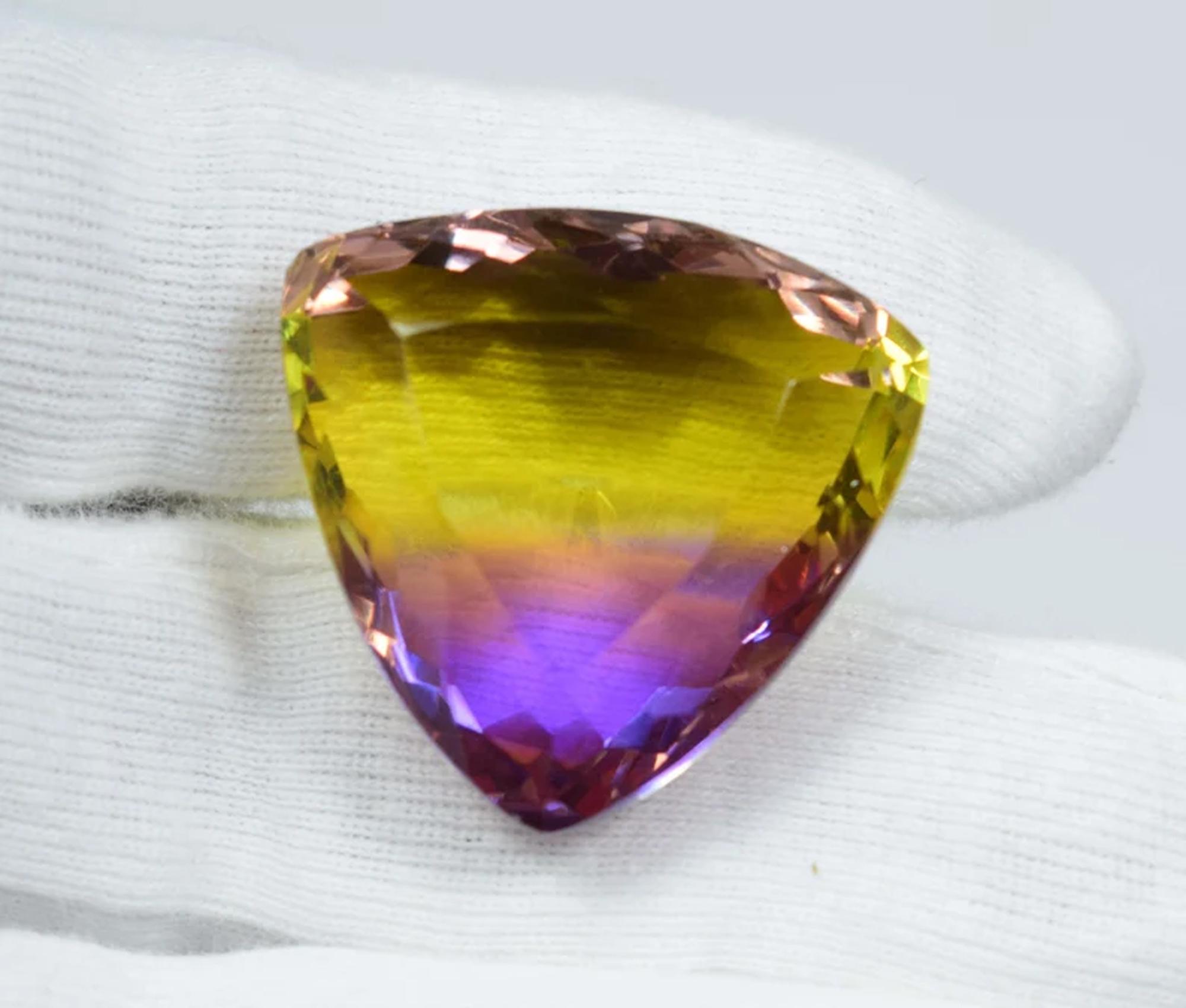 Faceted Bi-Color Tourmaline Triangle Gemstone: 80 Carat Loose Stone