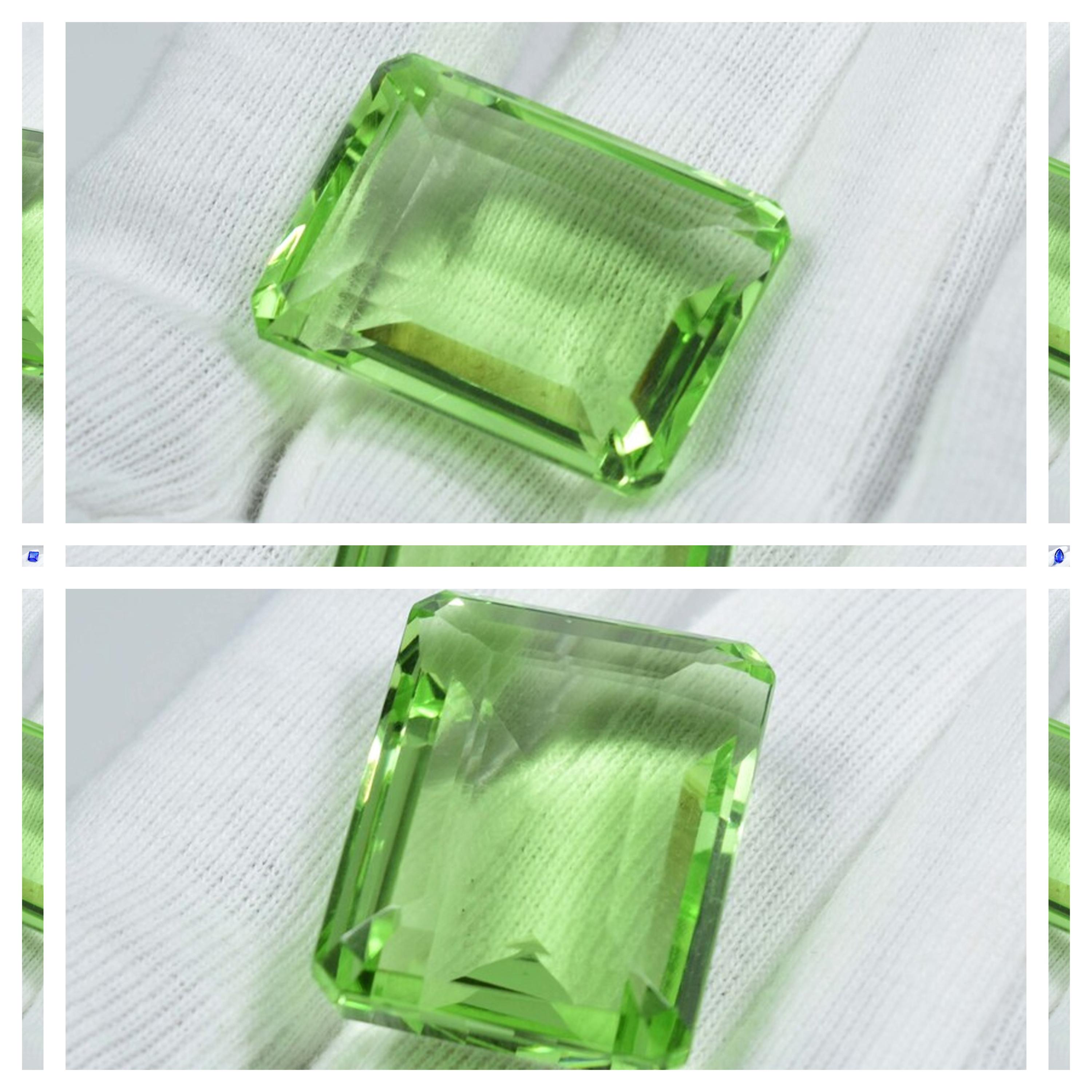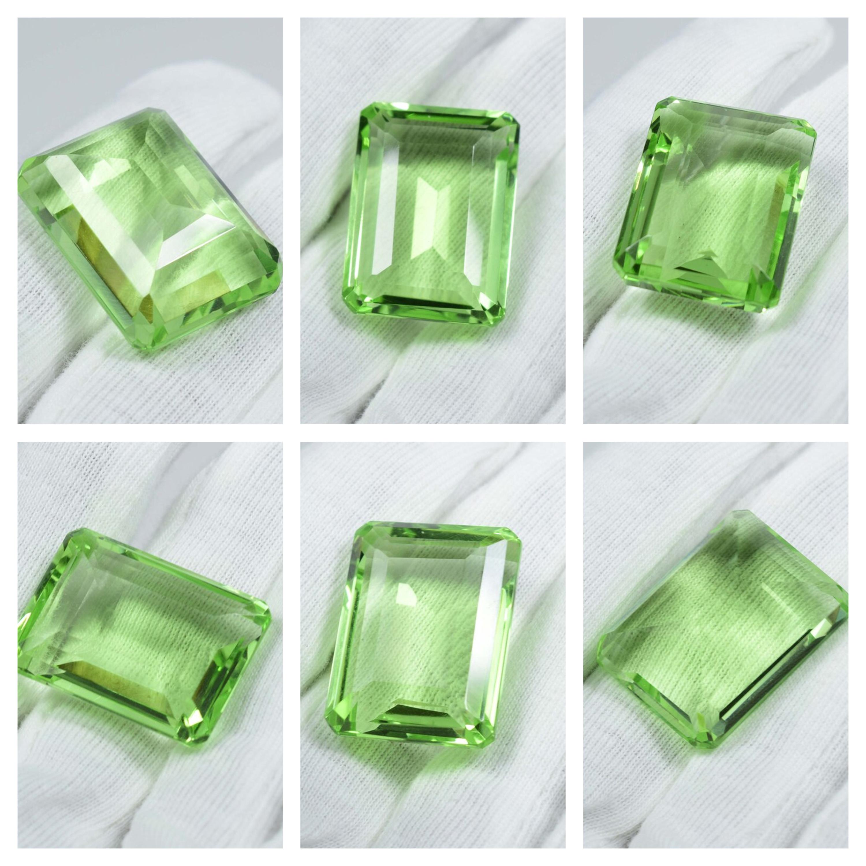 70 Cts Green Amethyst Emerald Shape Faceted Stone, Green Amethyst Gemstone Certified Green Amethyst Stone 29x21x12 MM
