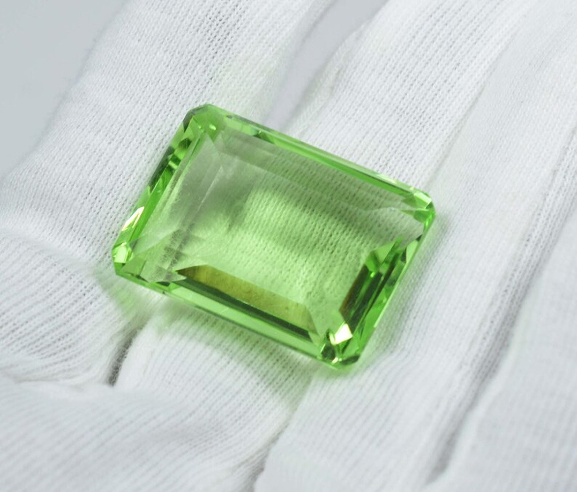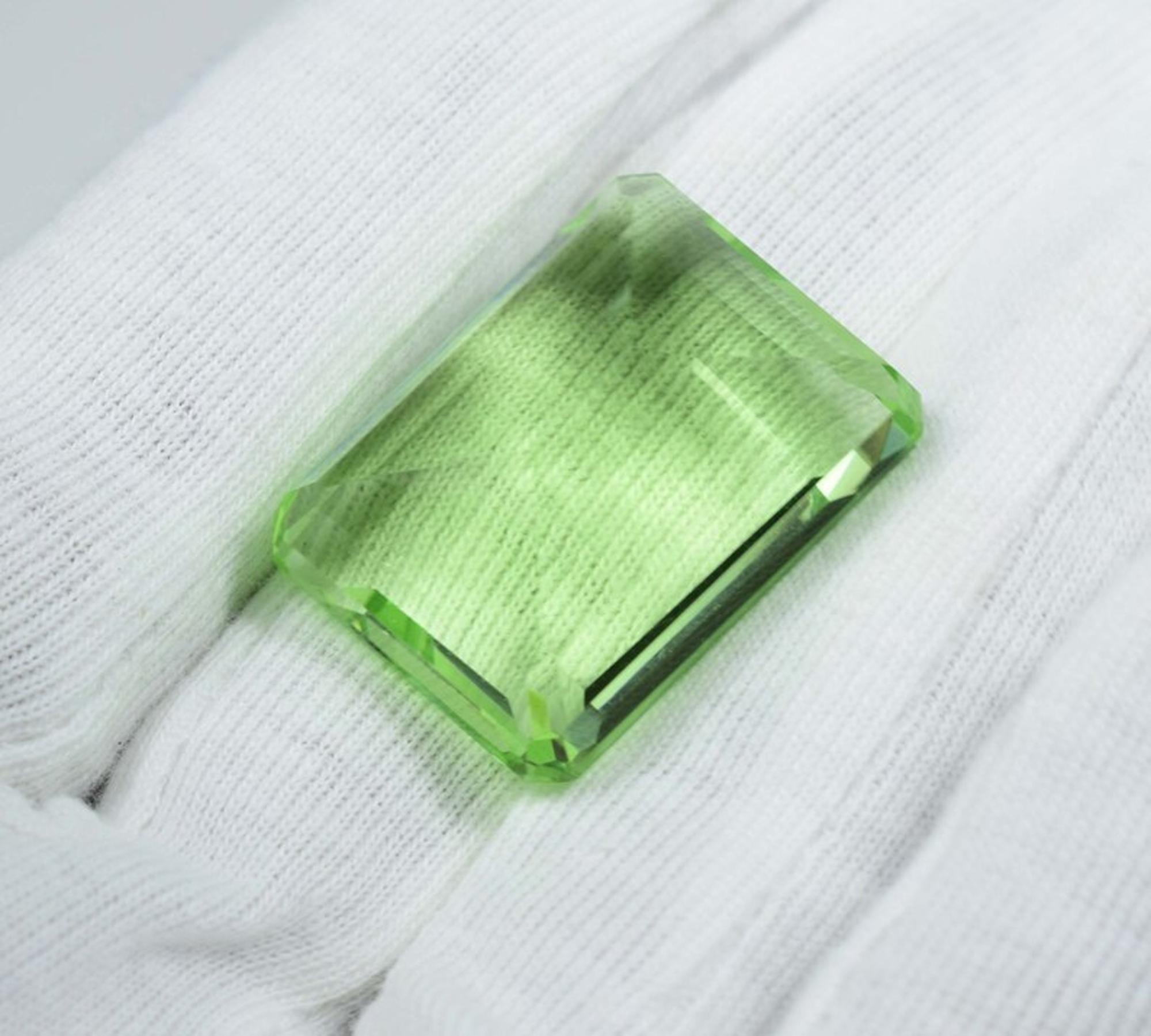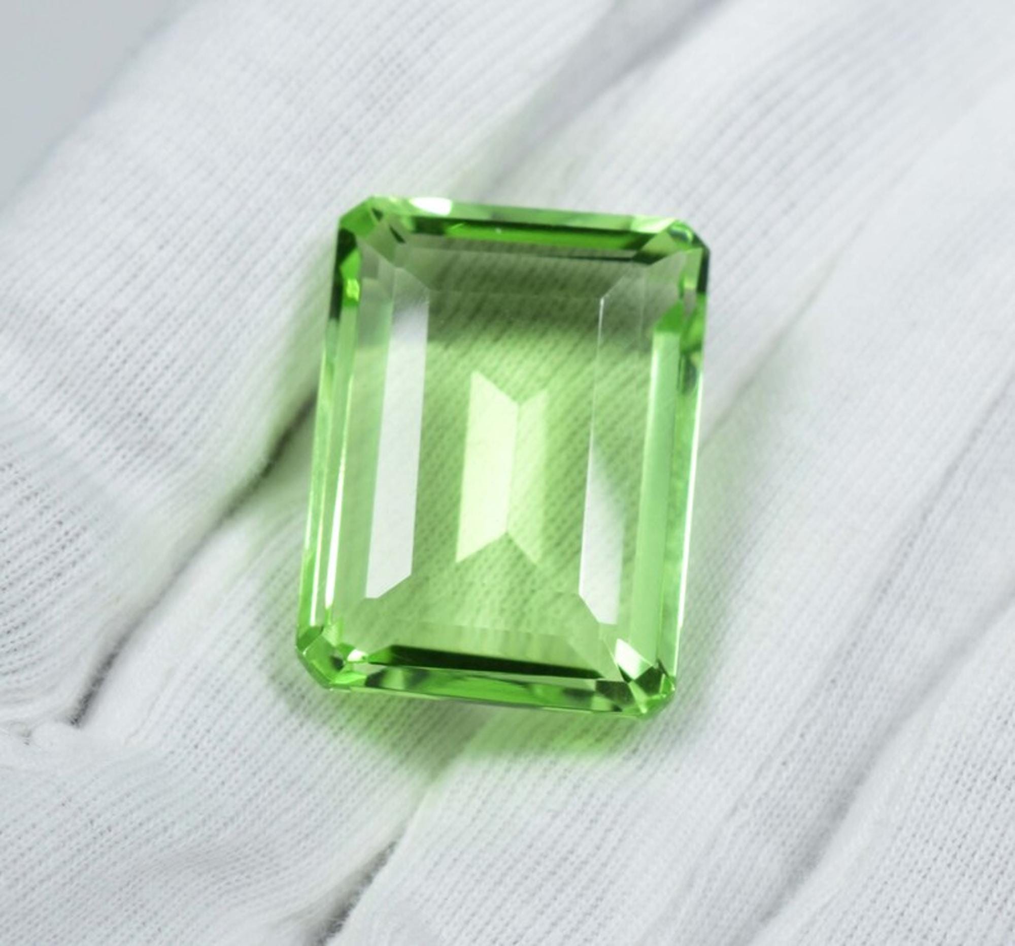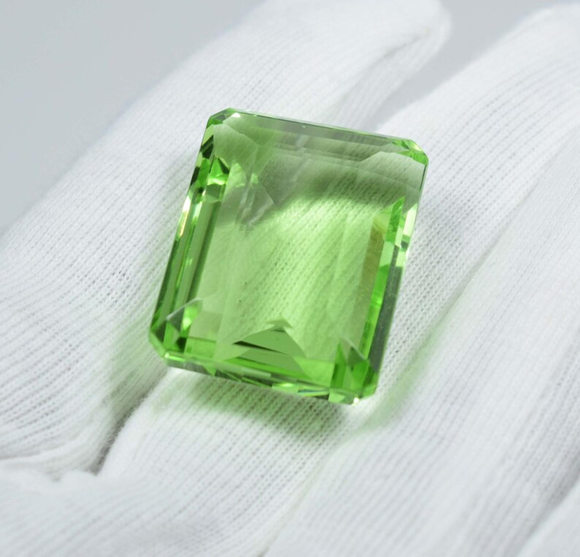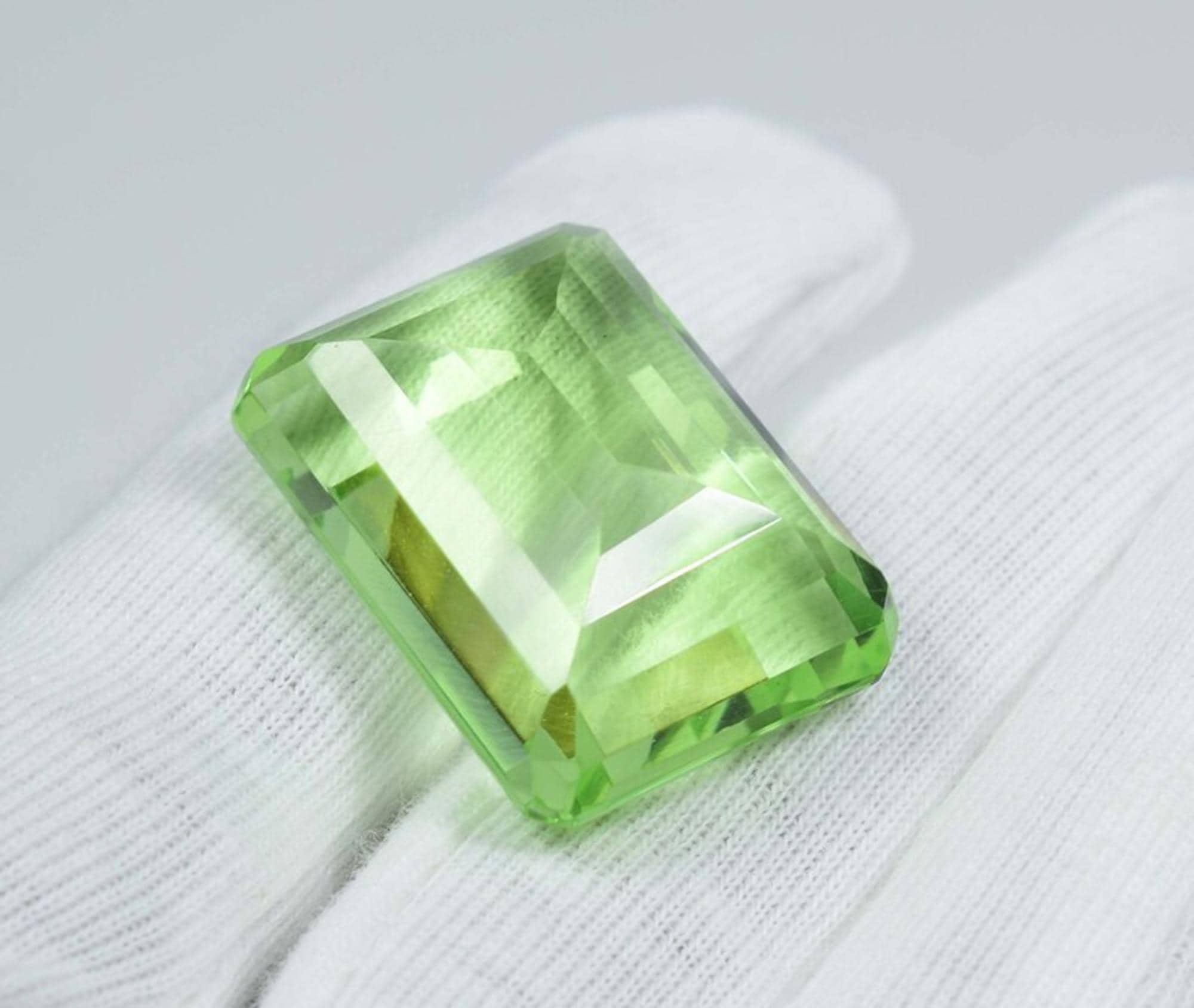 Faceted Emerald Cut Green Amethyst Gemstone: 70 Carat Loose Stone