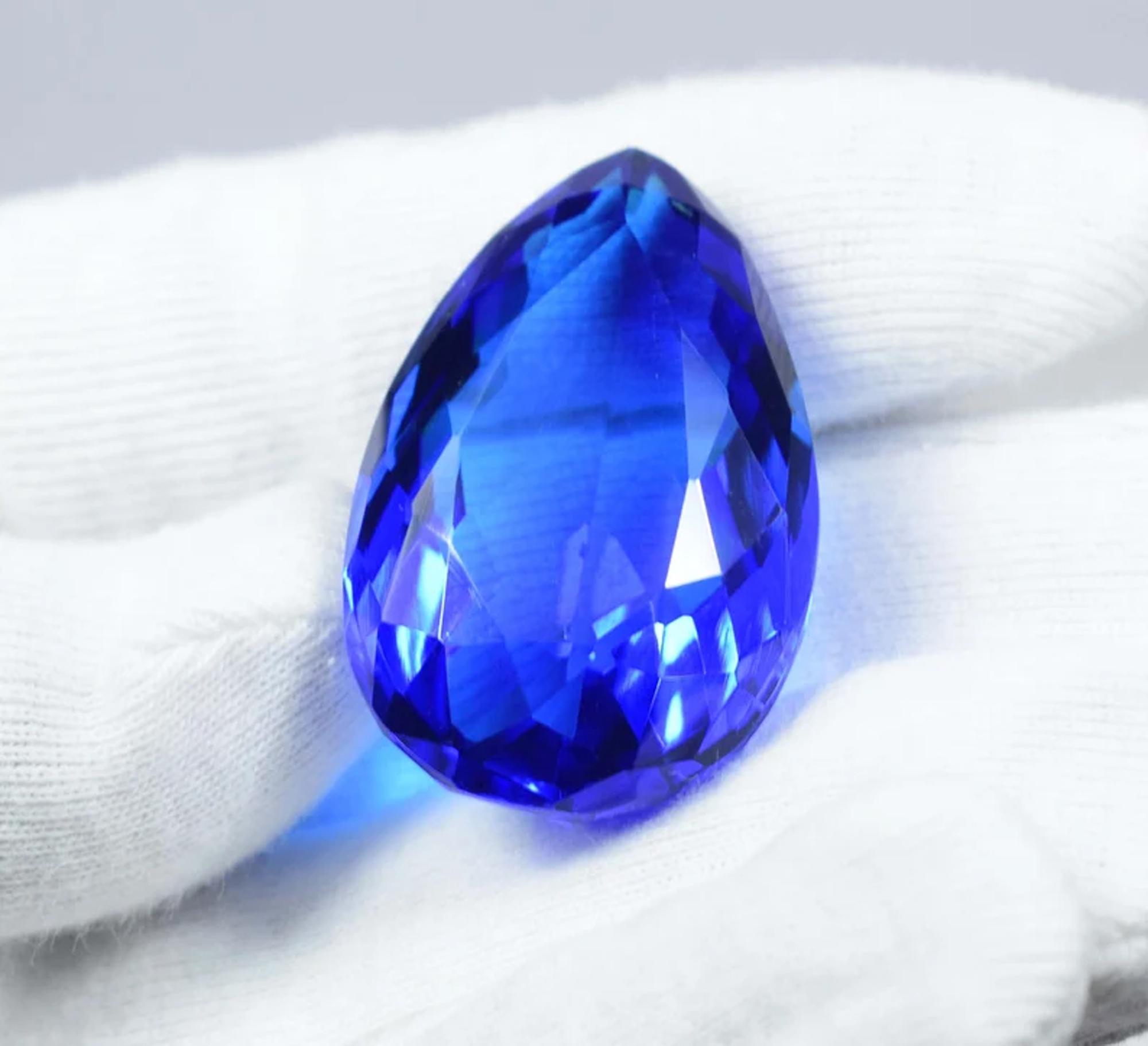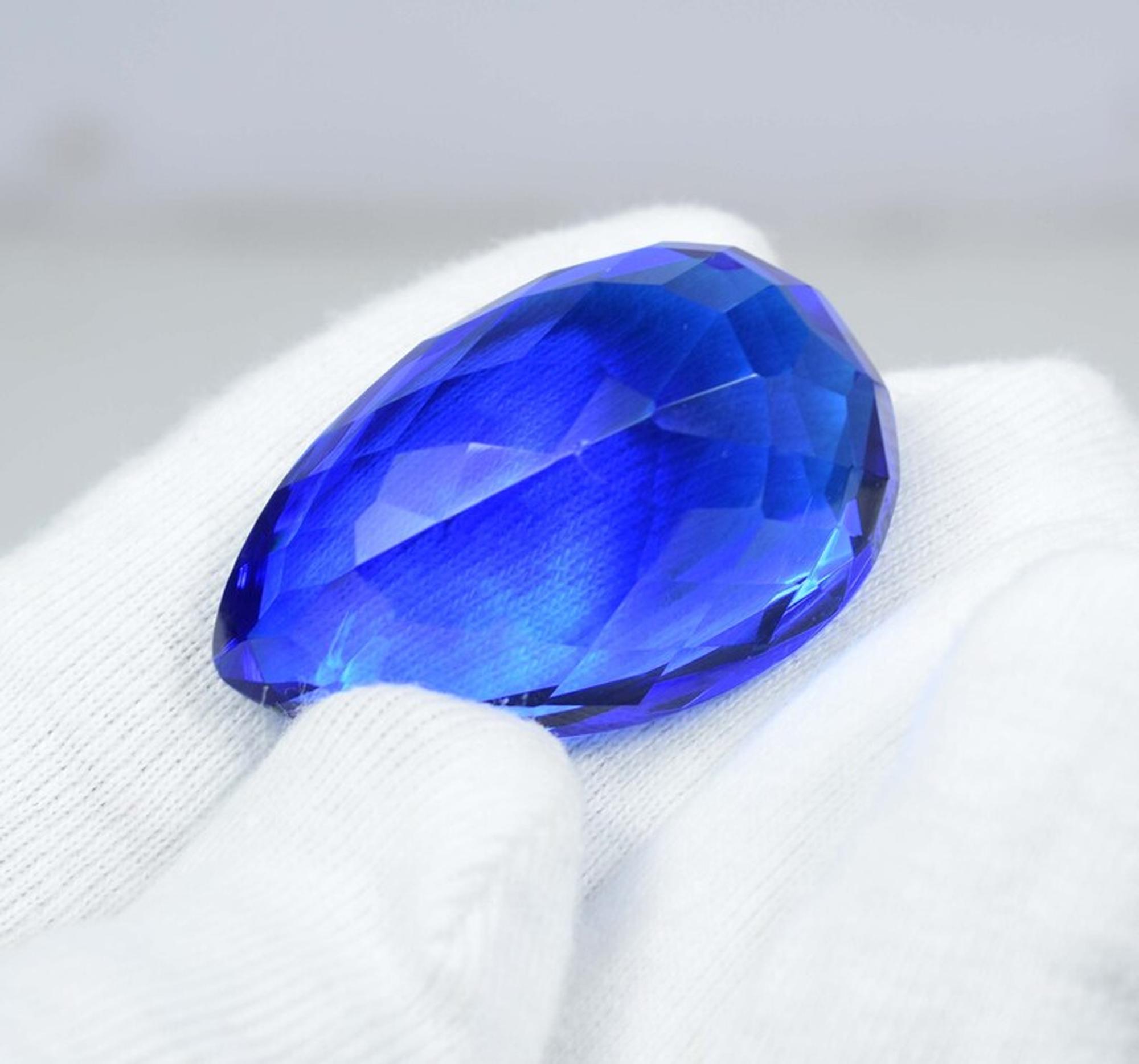 Pear Shape Blue Topaz Gemstone: Faceted Loose Stone, 86 Cts