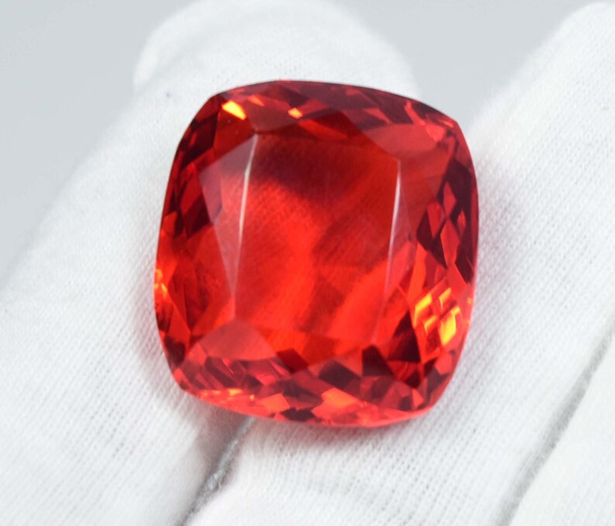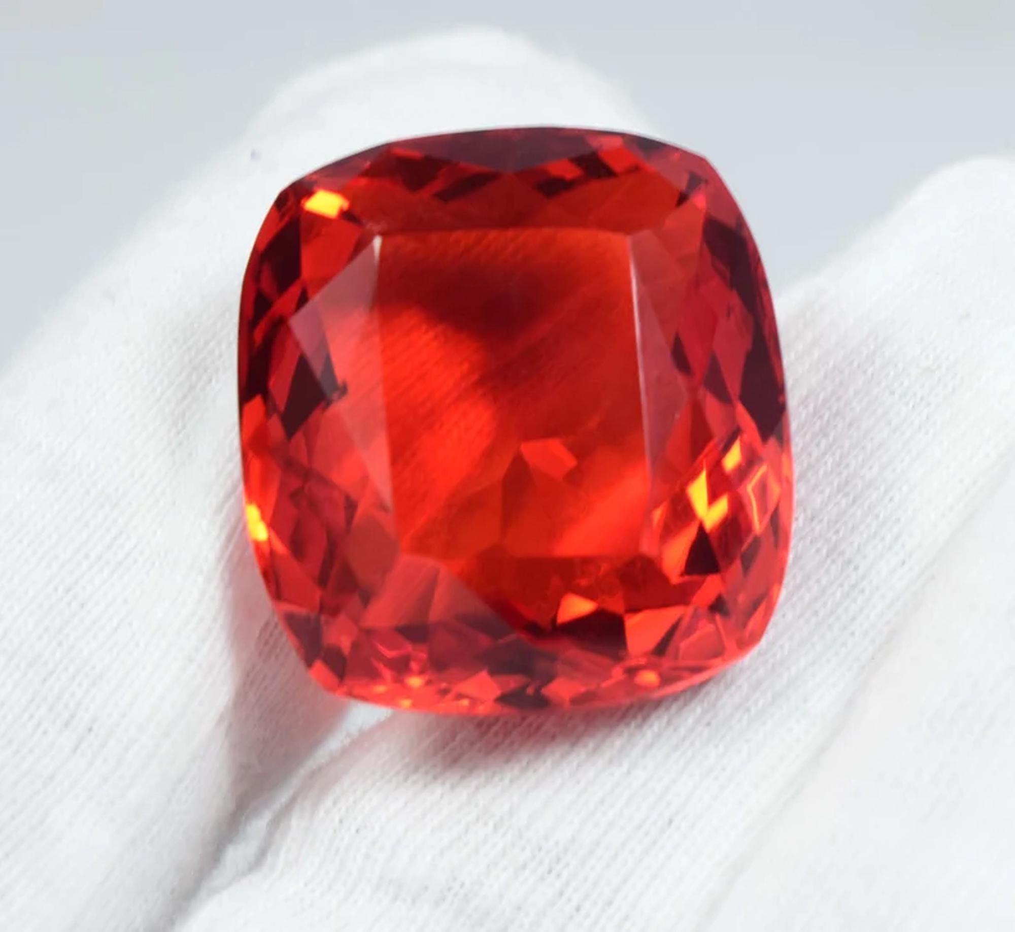 Faceted Orange Topaz Cushion Cut Loose Stone: 60 Carat Gemstone