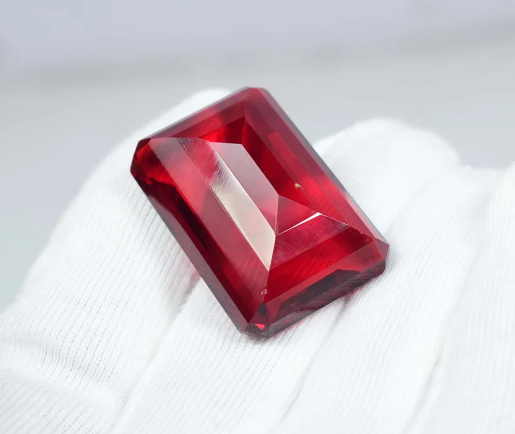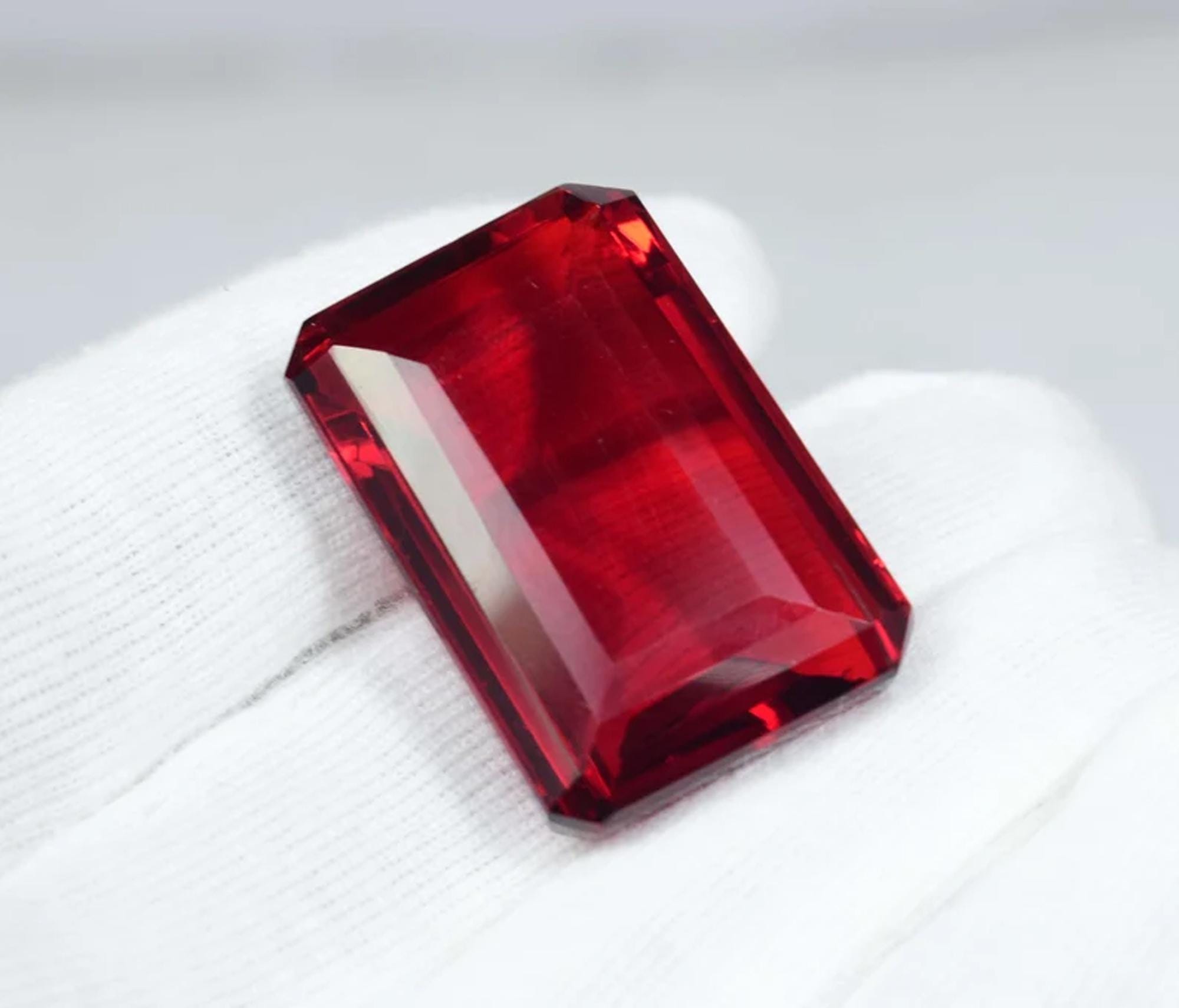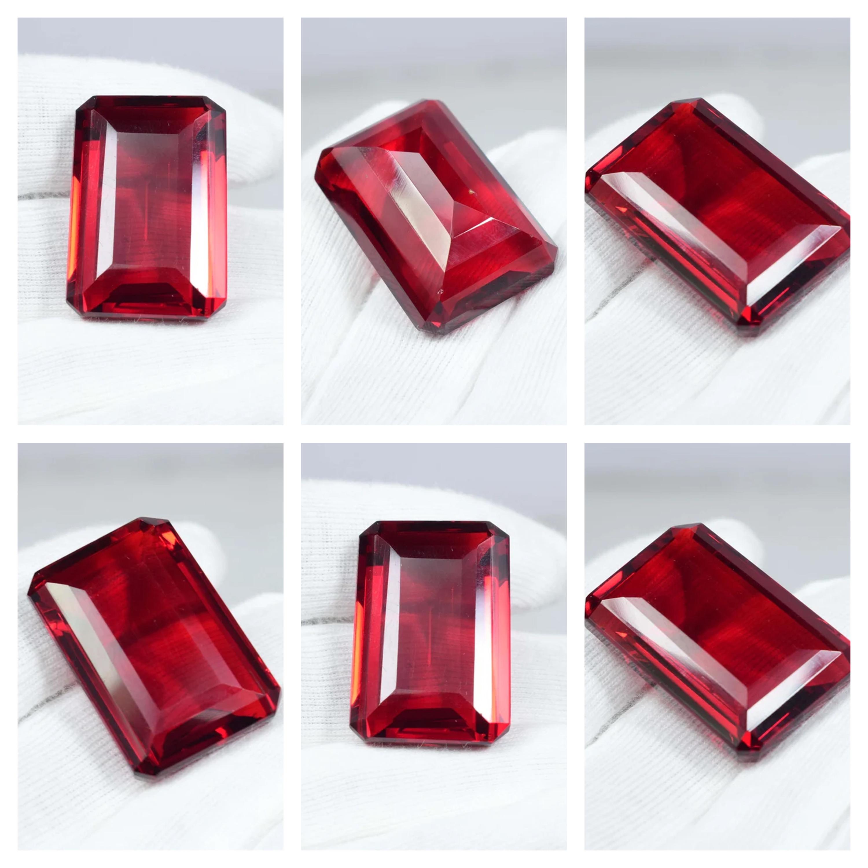Emerald Cut Red Topaz Gemstone: Faceted Loose Stone, 68 Carat