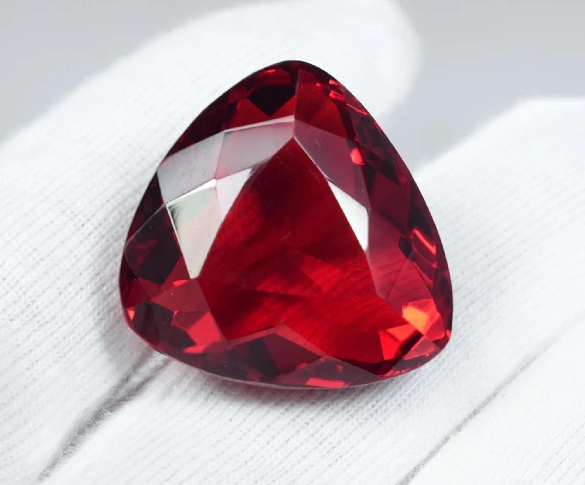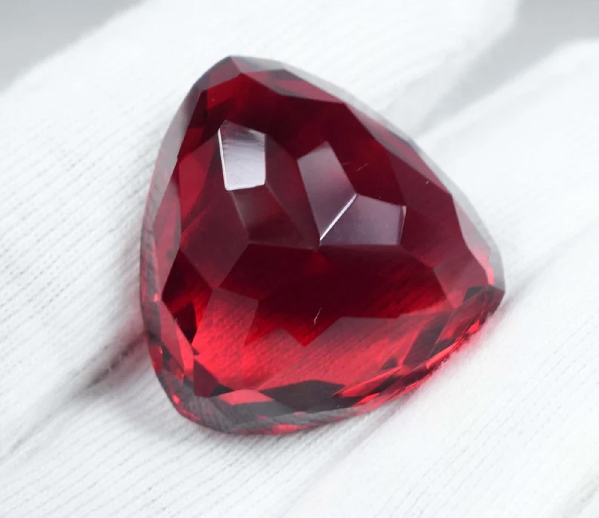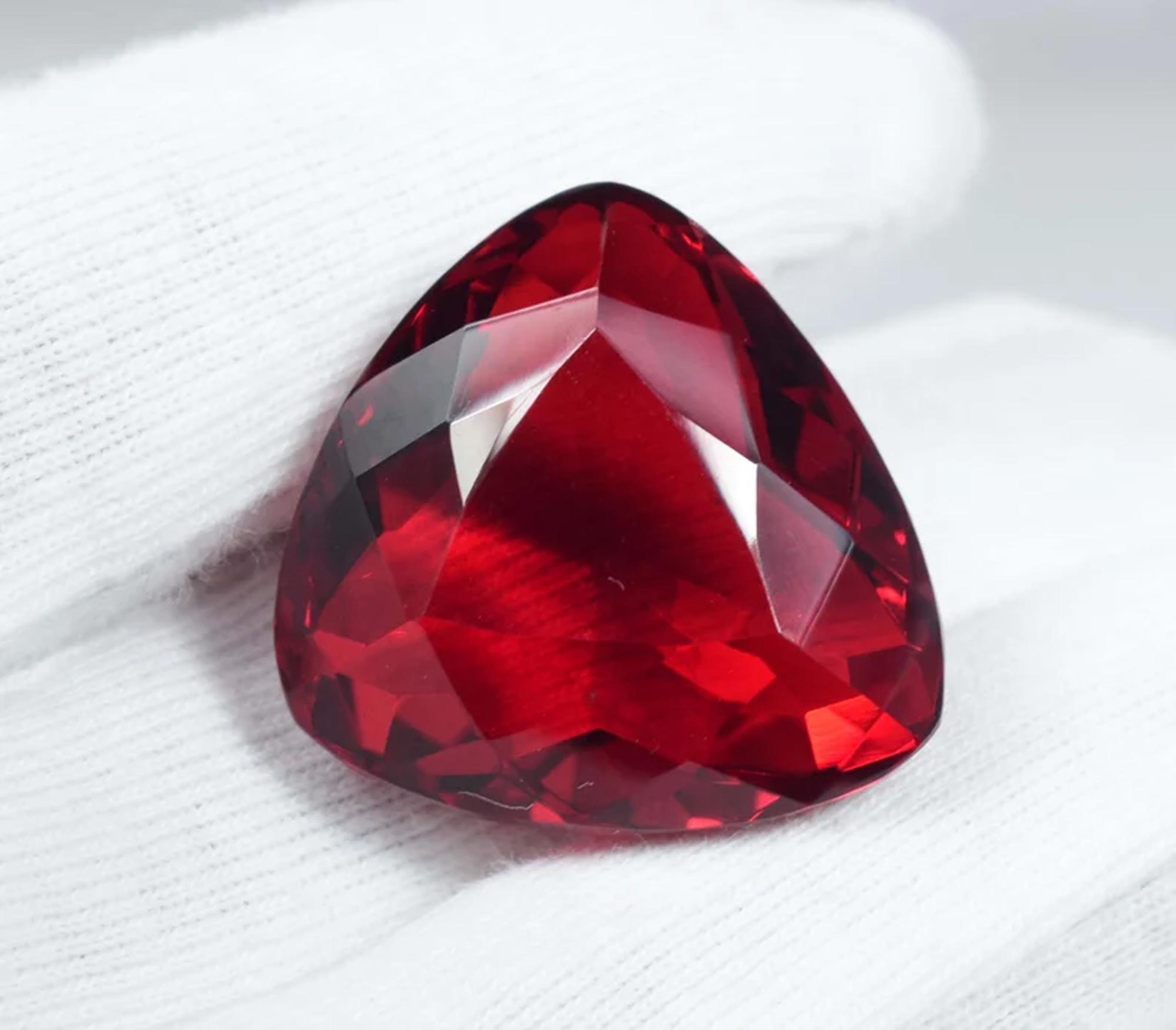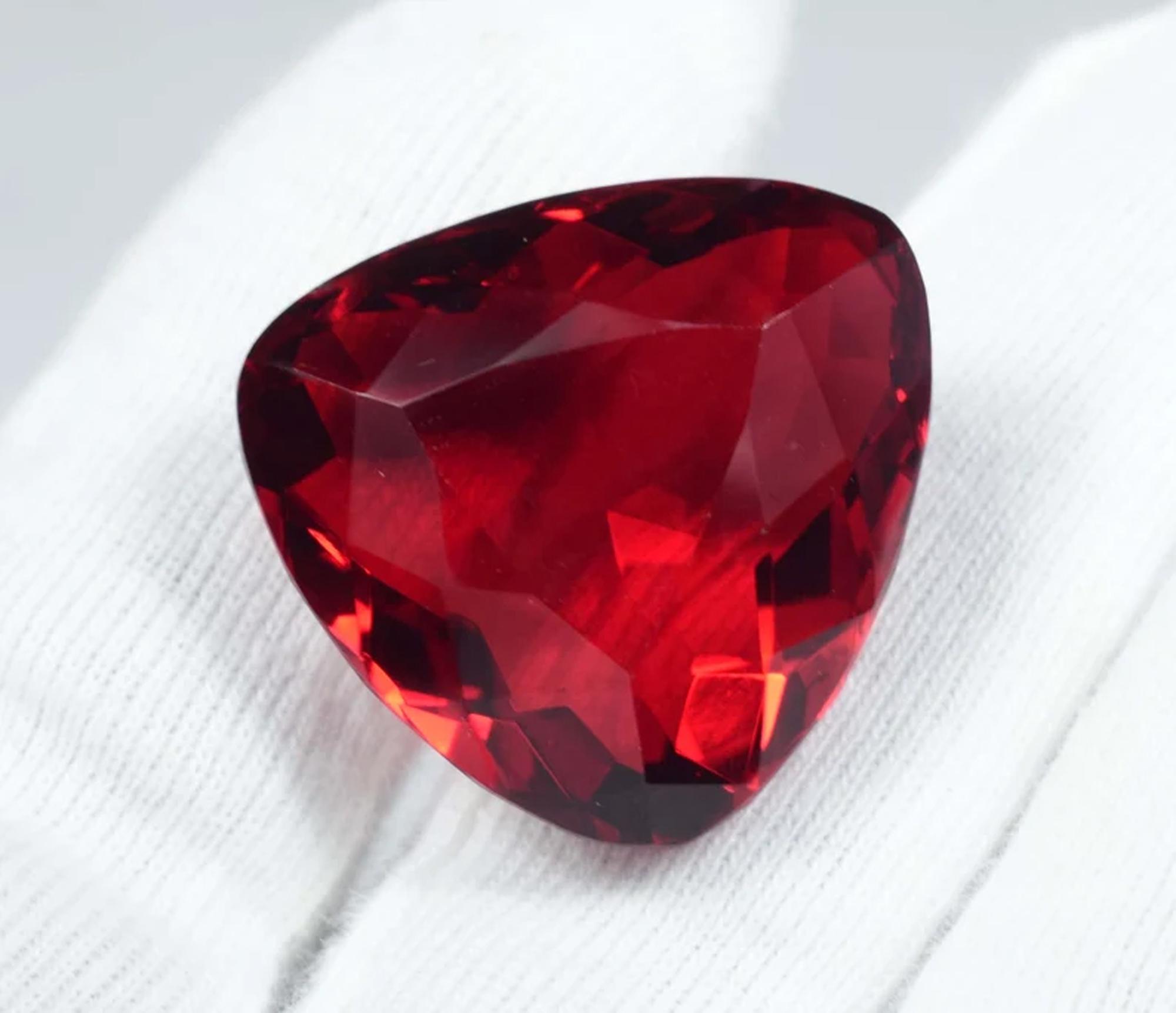 Faceted Trillion Red Topaz Stone: 58 Carat Lab-Created Gemstone