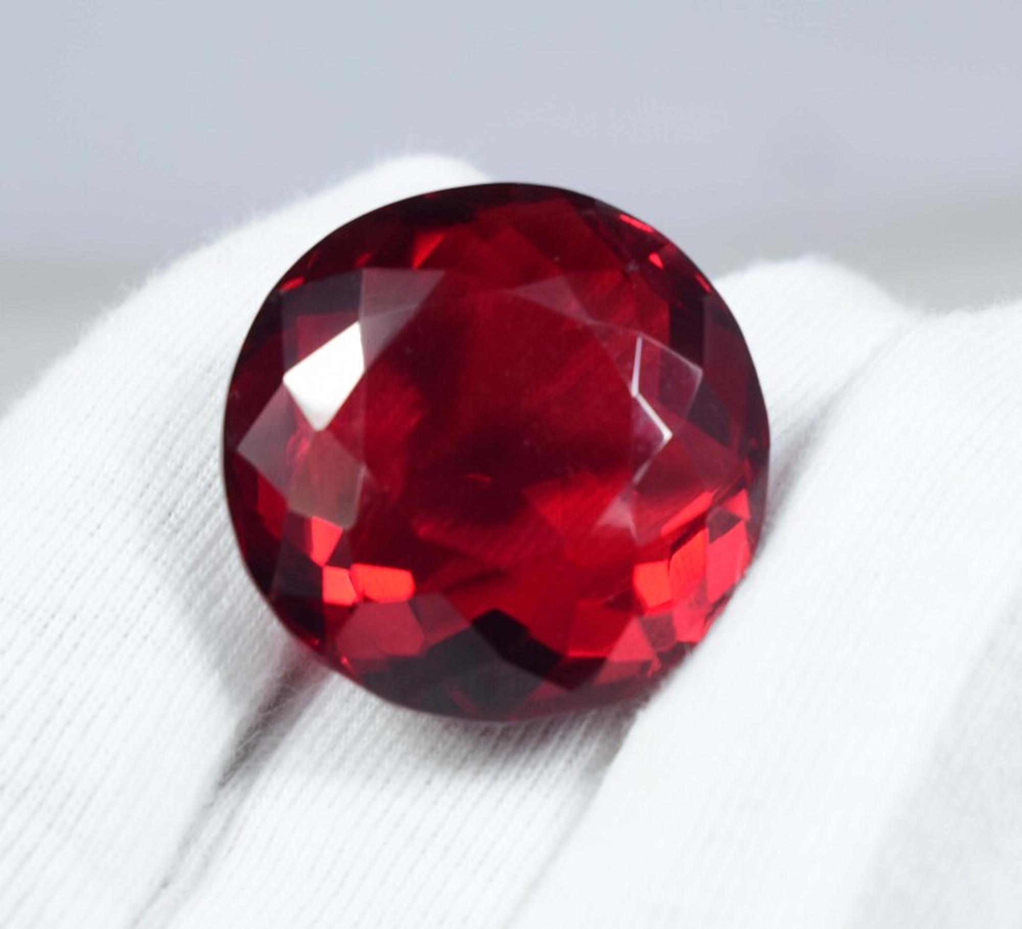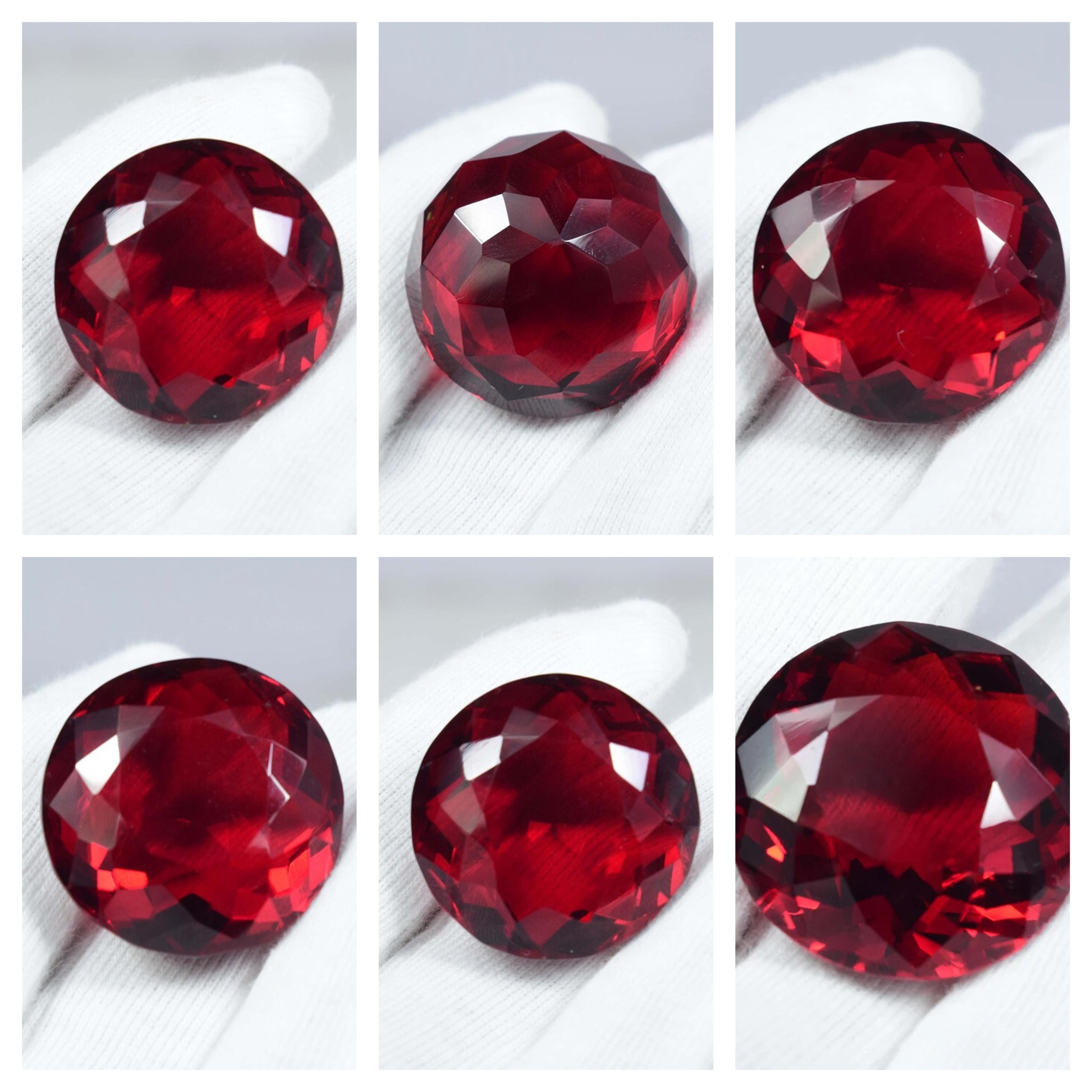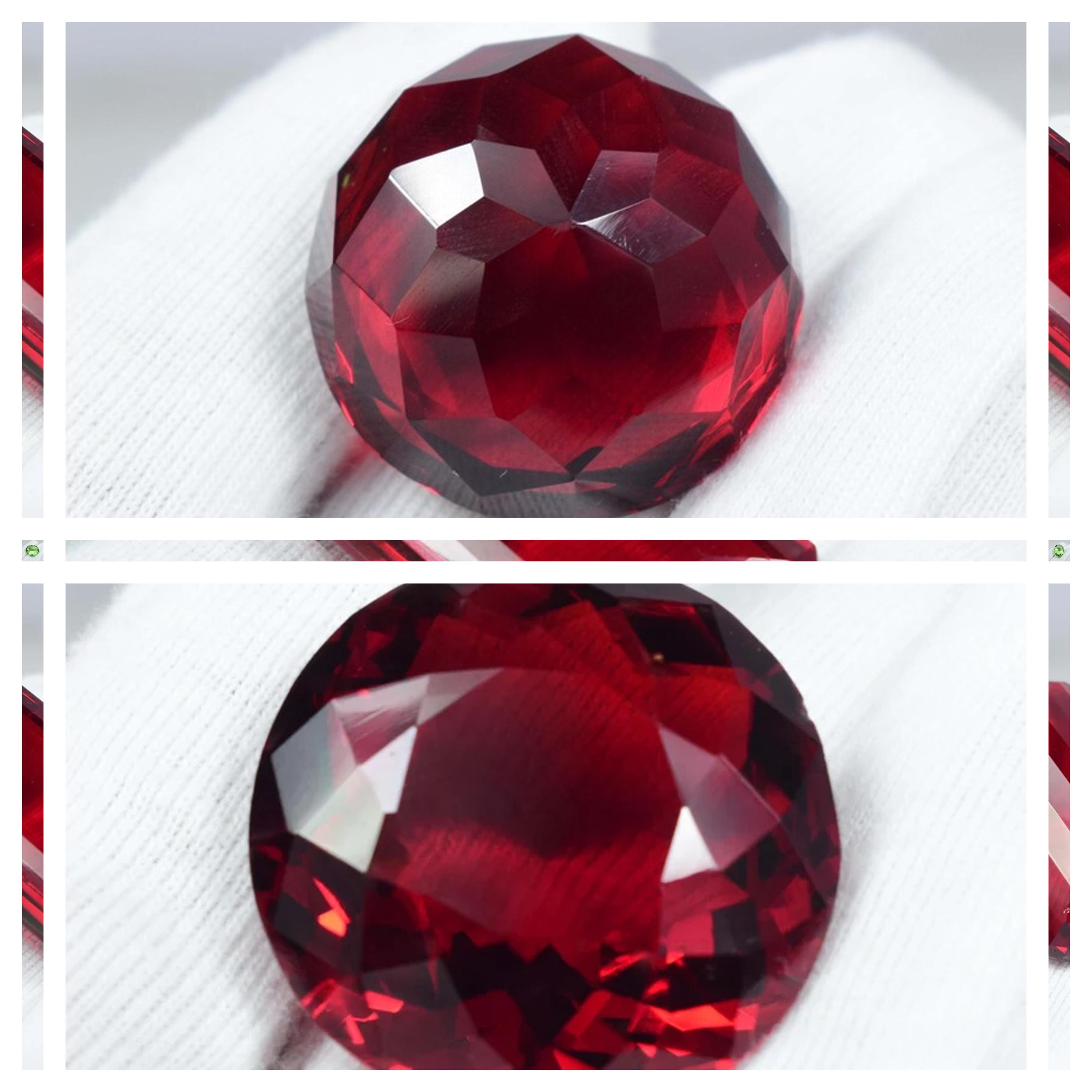 Faceted Round Red Topaz Stone: 25mm Pendant Size, Lab-Created