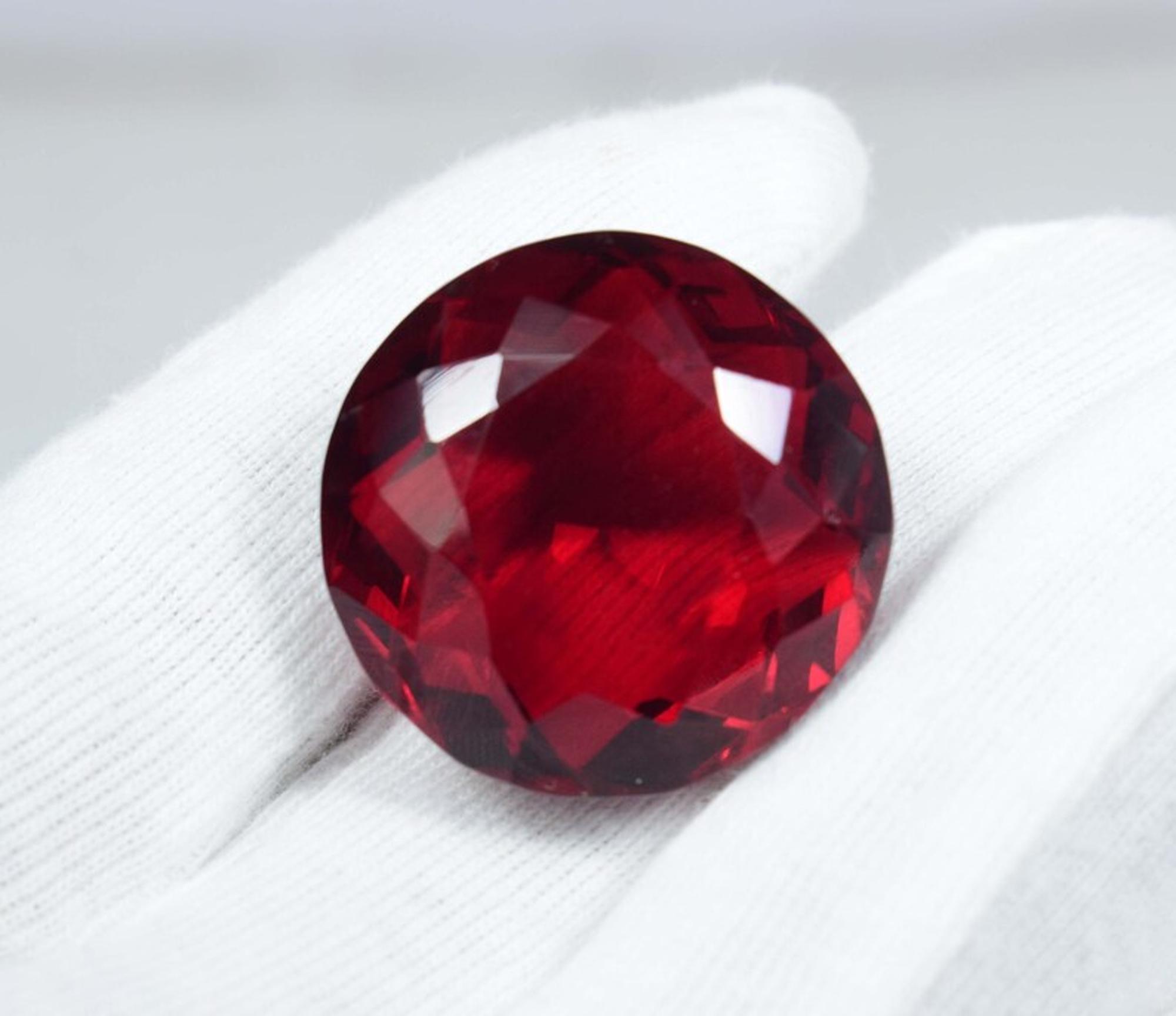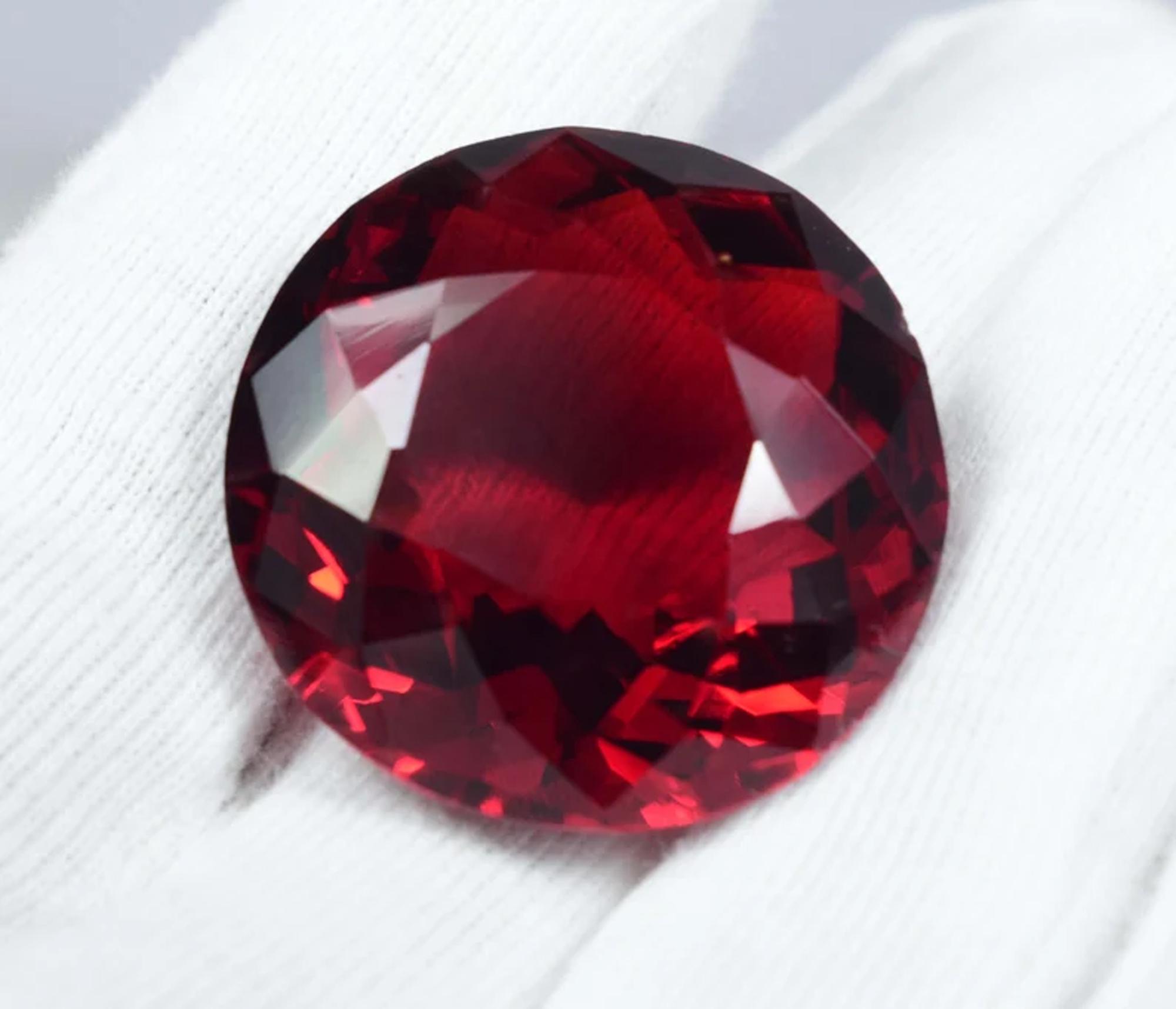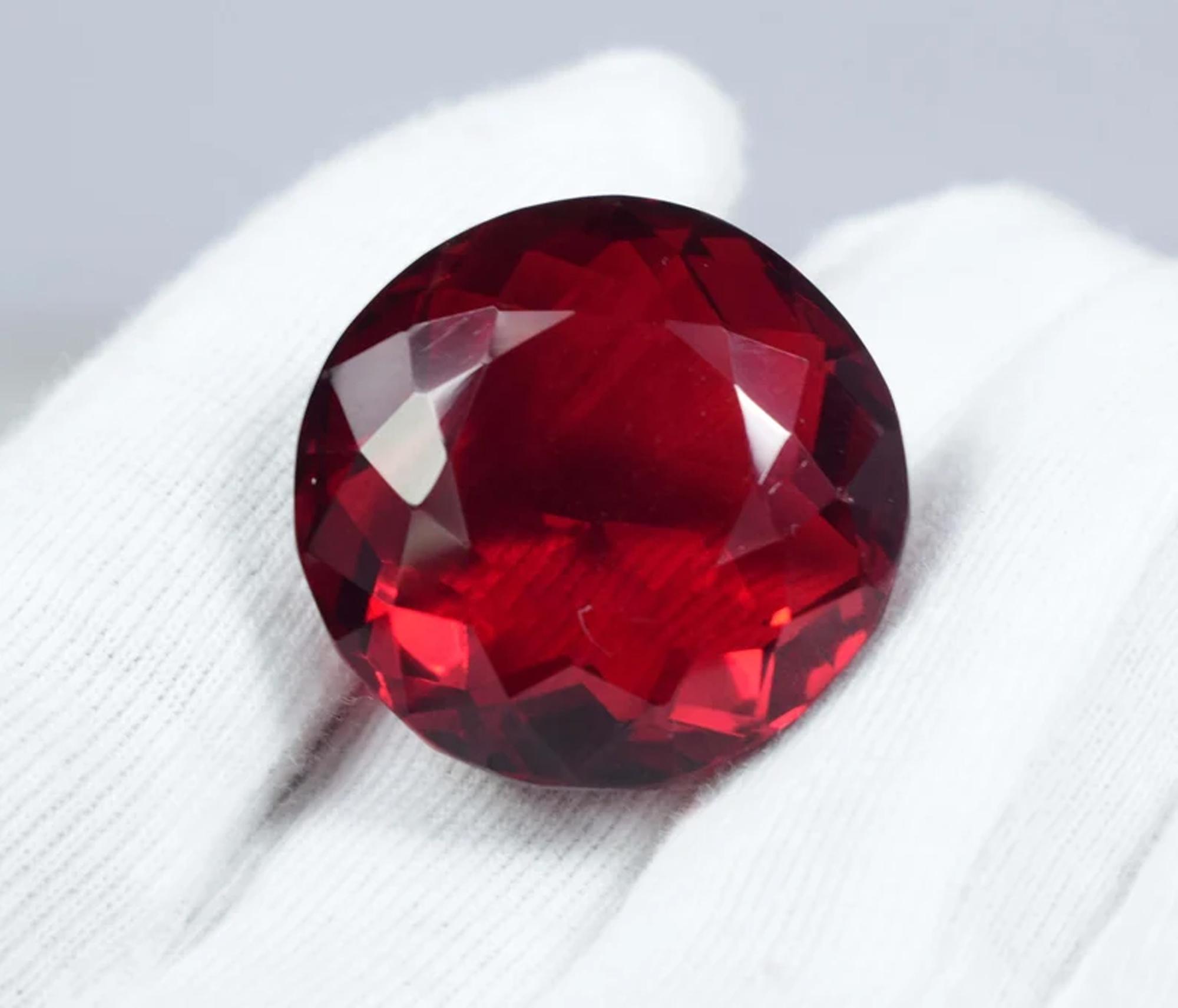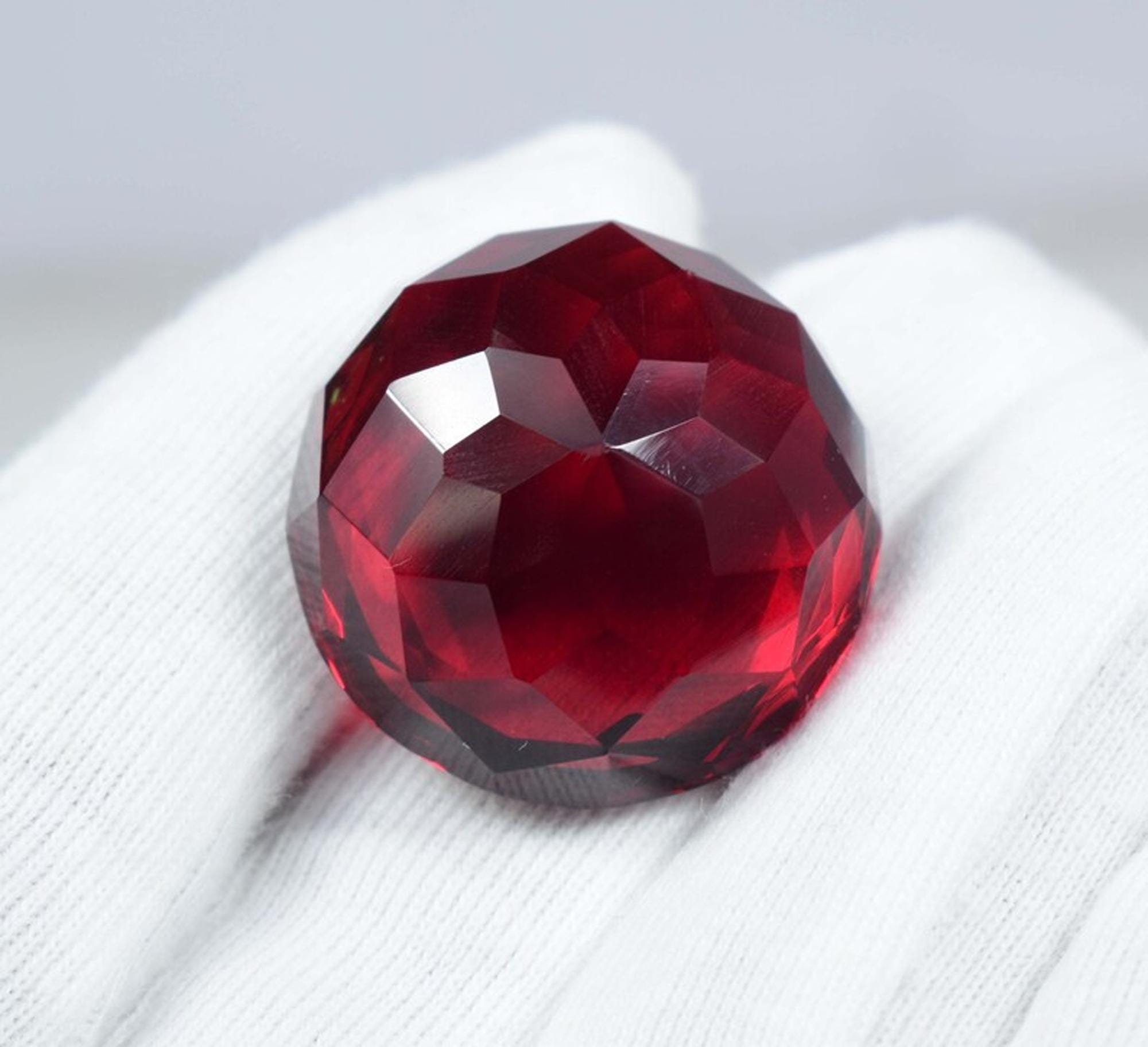 Faceted Round Red Topaz Stone: 25mm Pendant Size, Lab-Created