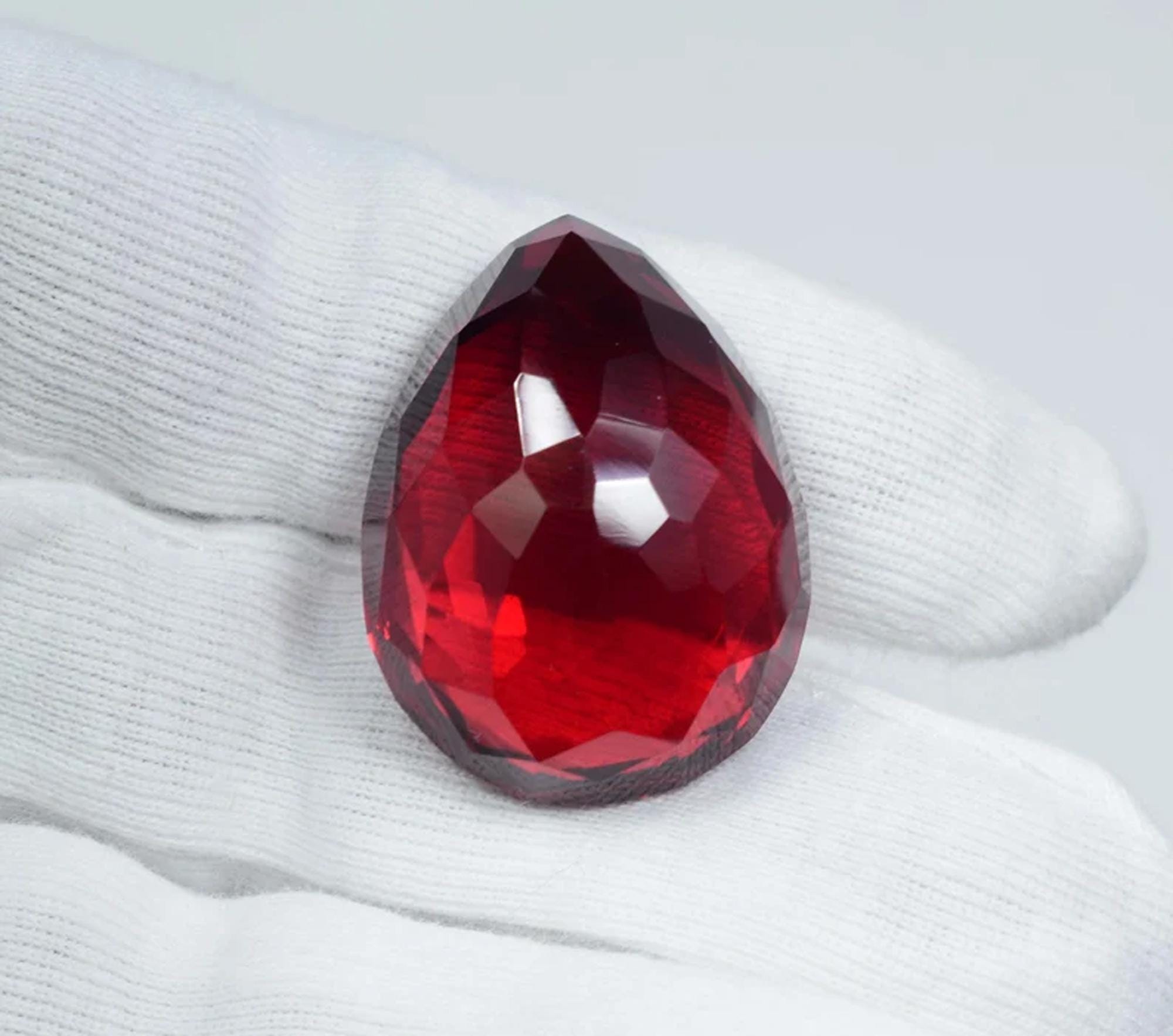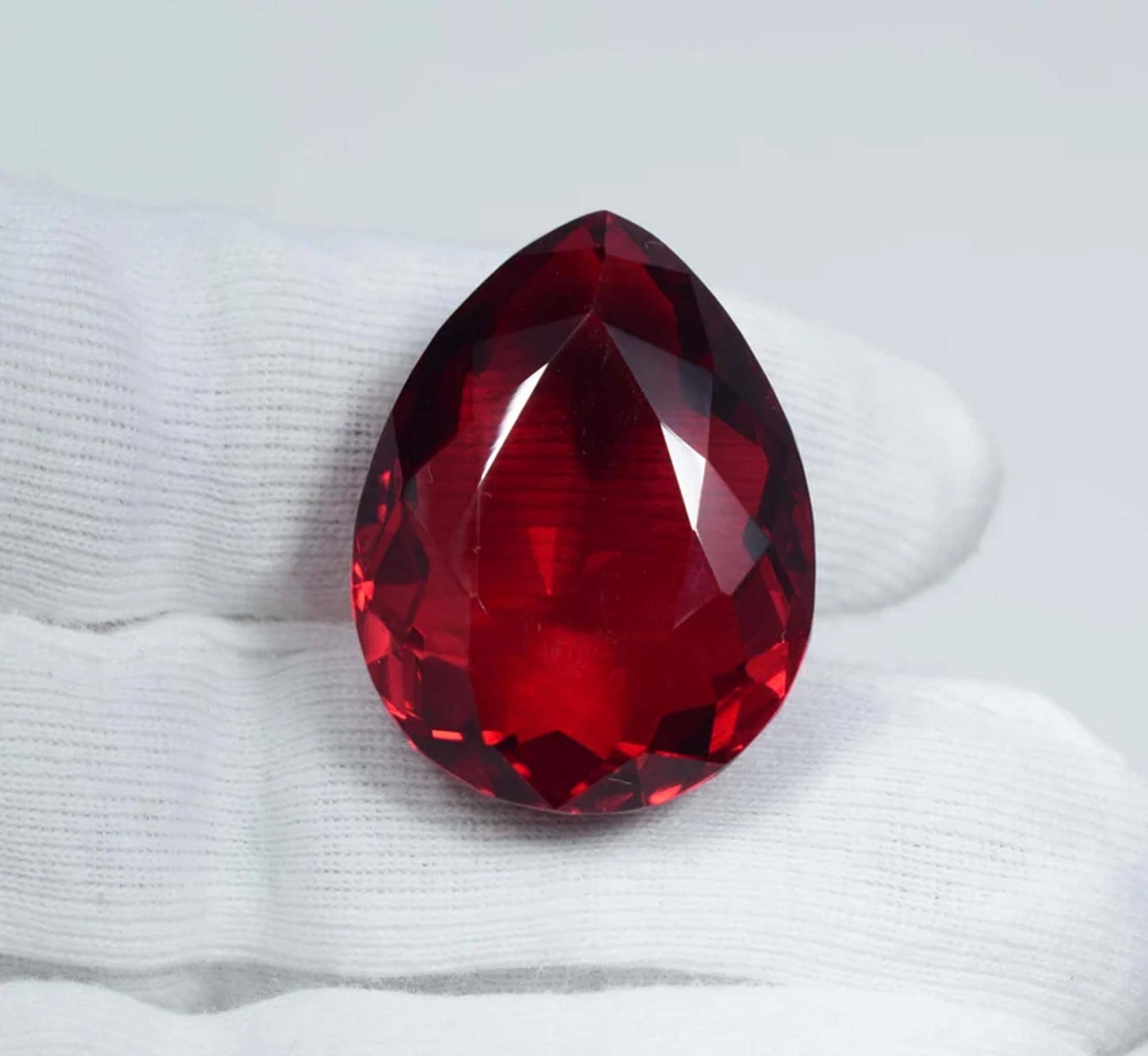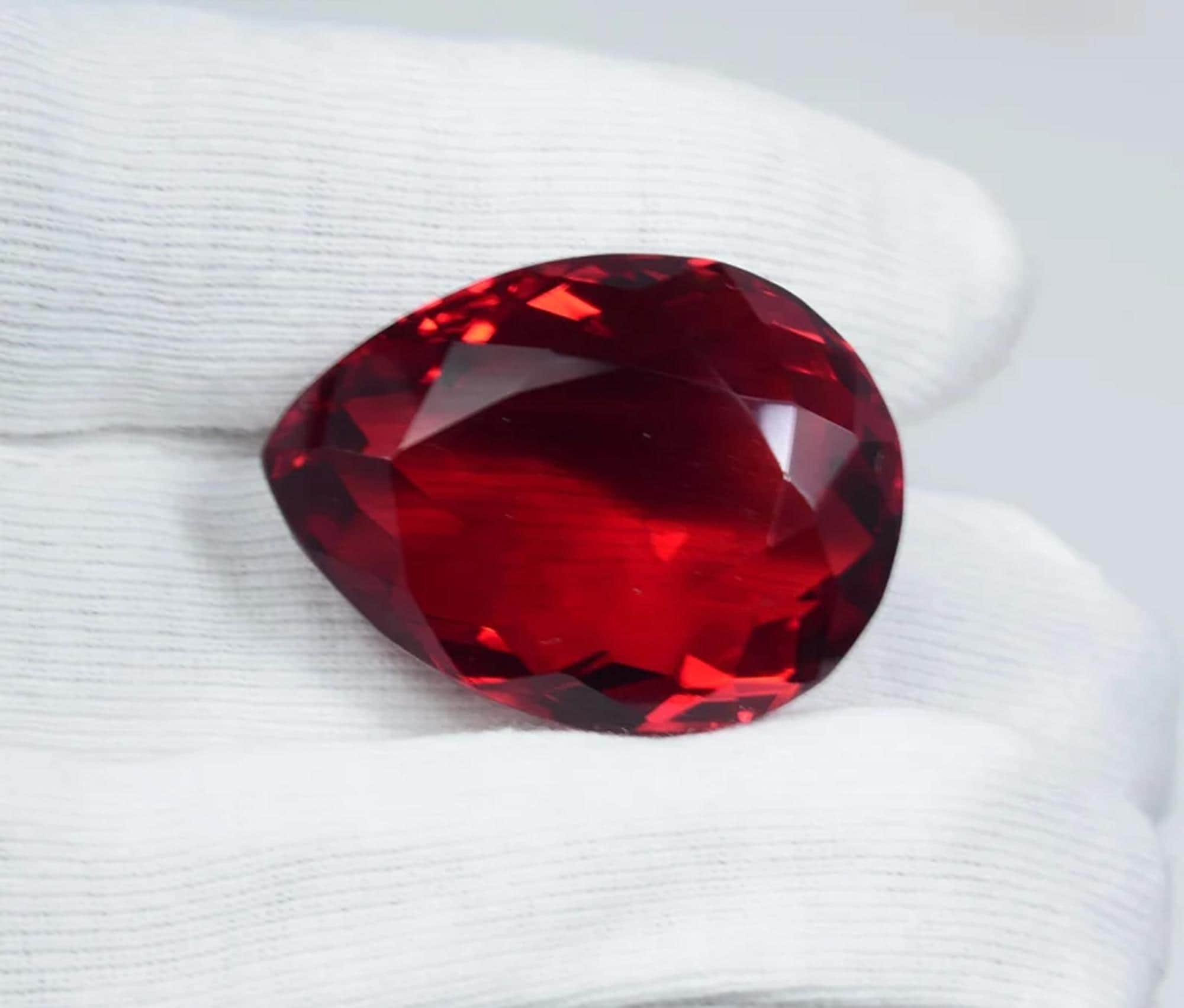 Red Topaz Pear Faceted Stone: AAA+ Grade Loose Gemstone (32x25mm, 75 Carat)