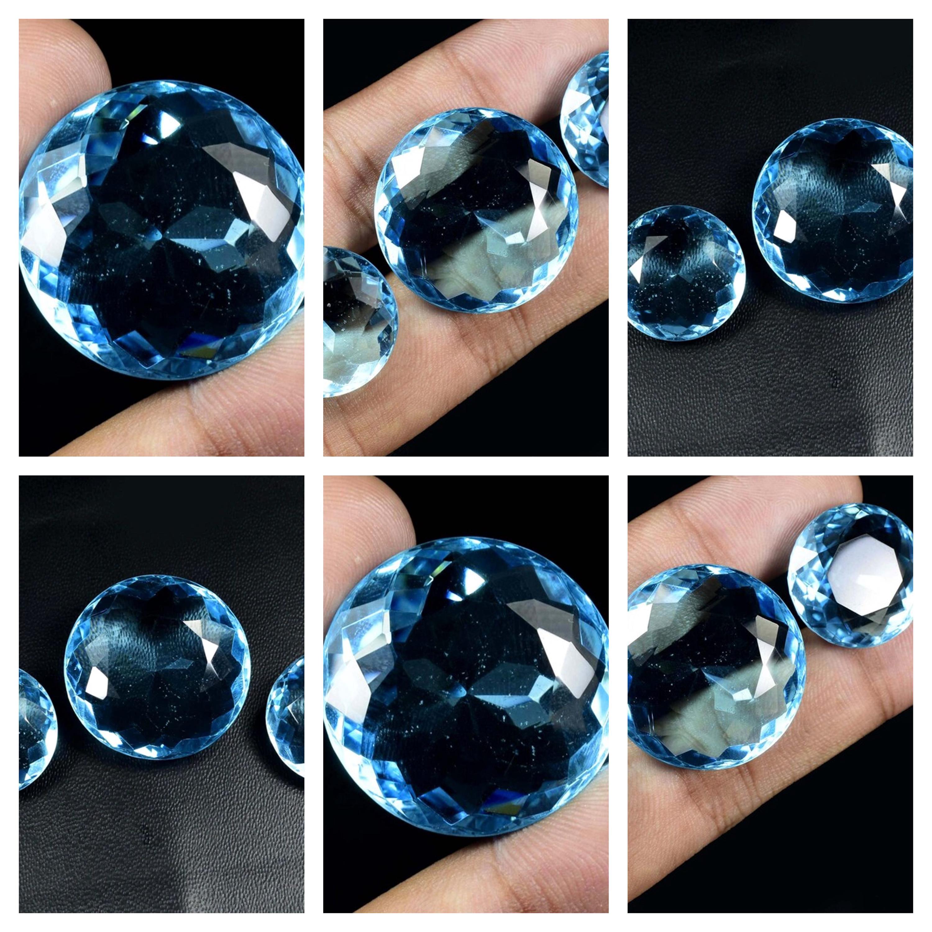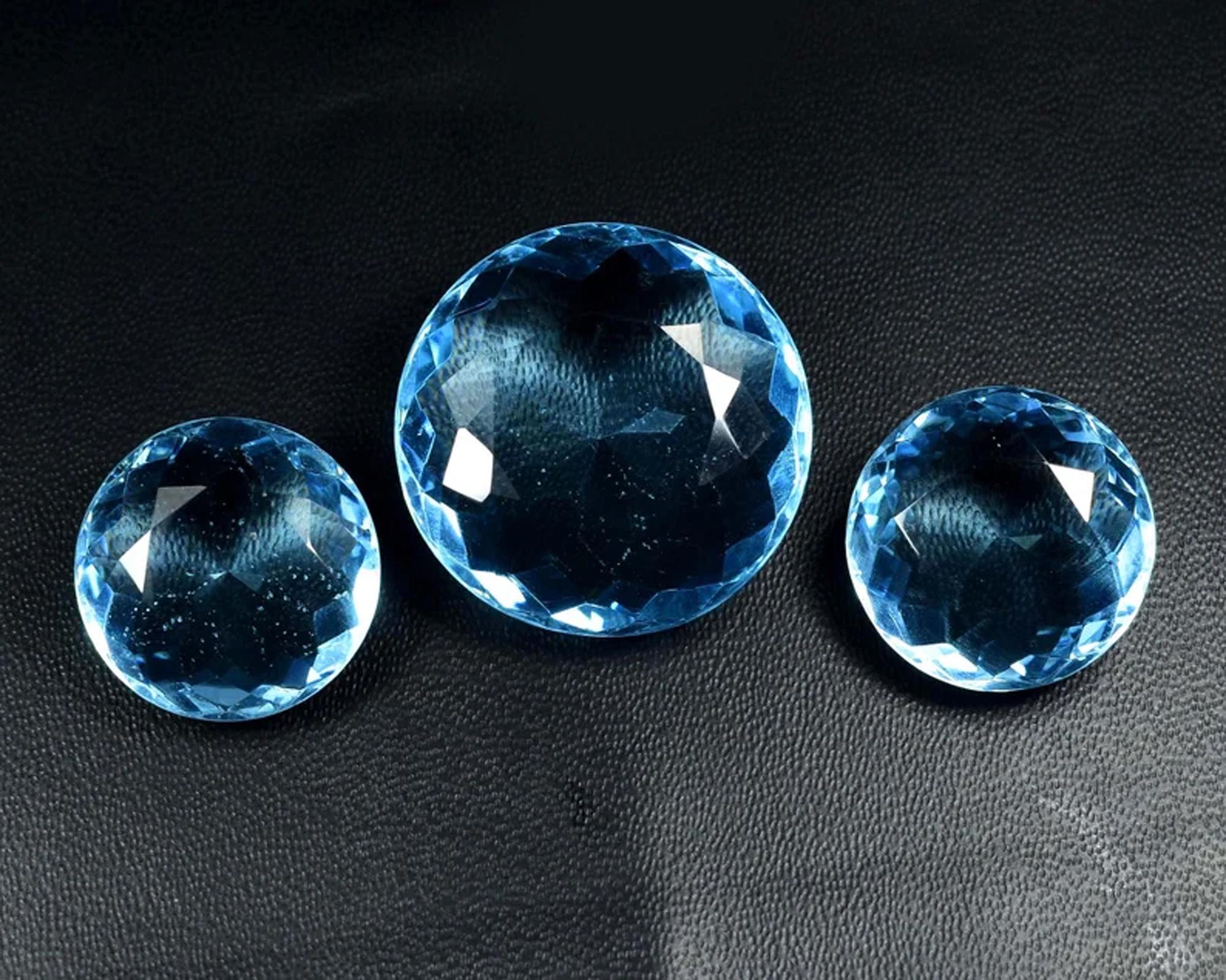 Swiss Blue Topaz Round Shape Faceted Stone, Blue Topaz Gemstone, Topaz Stone, swiss blue topaz gemstone