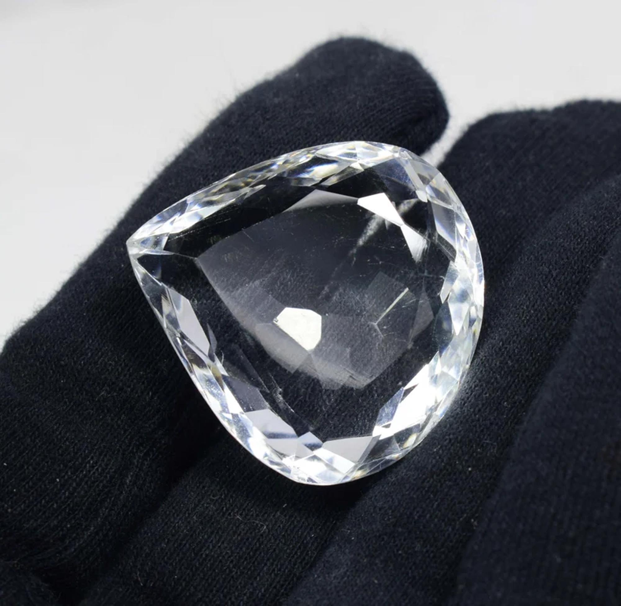 Faceted White Topaz Heart Stone, Pendant Size, AAA+ Grade