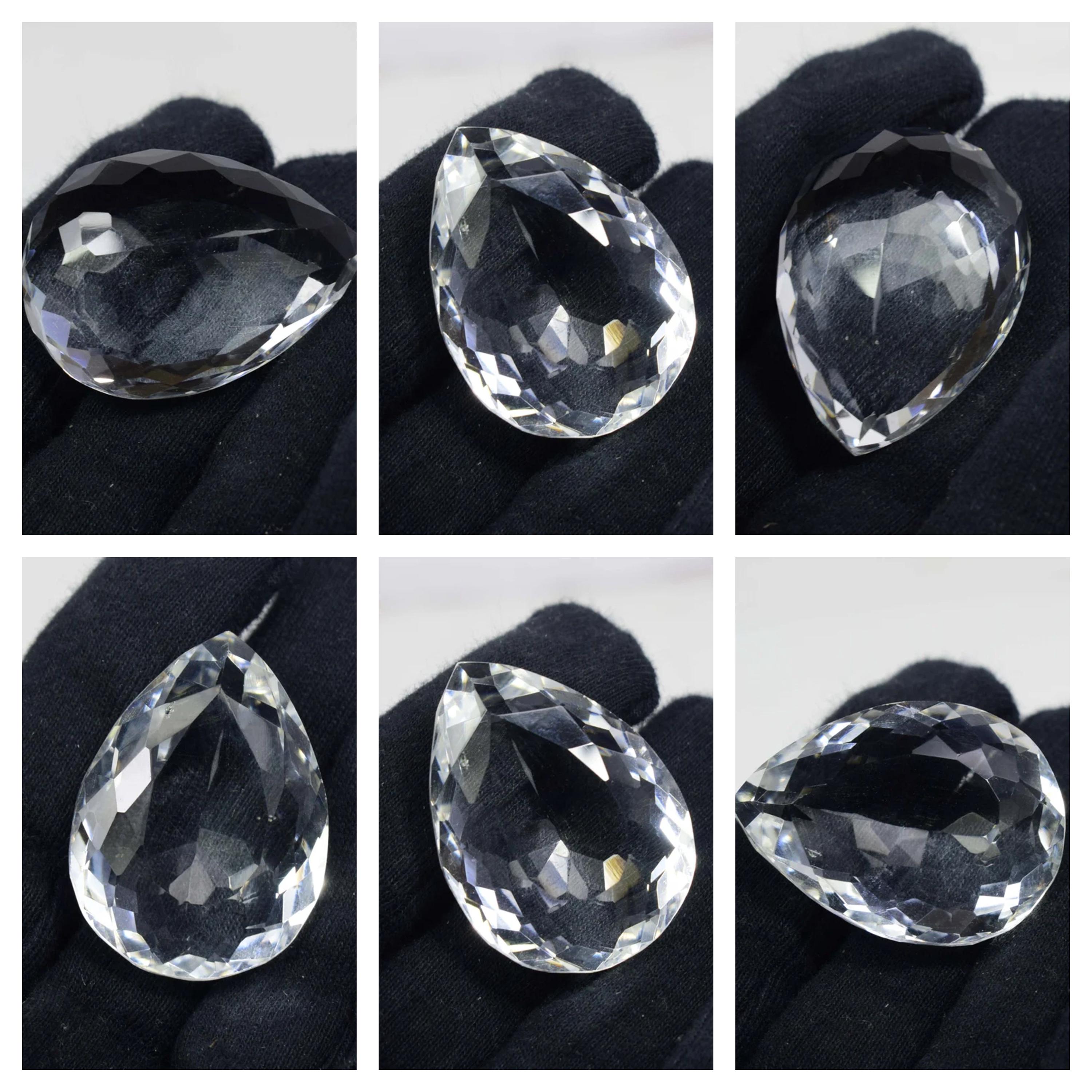 Faceted Pear Shape White Topaz Gemstone, Pendant Size, AAA+ Grade