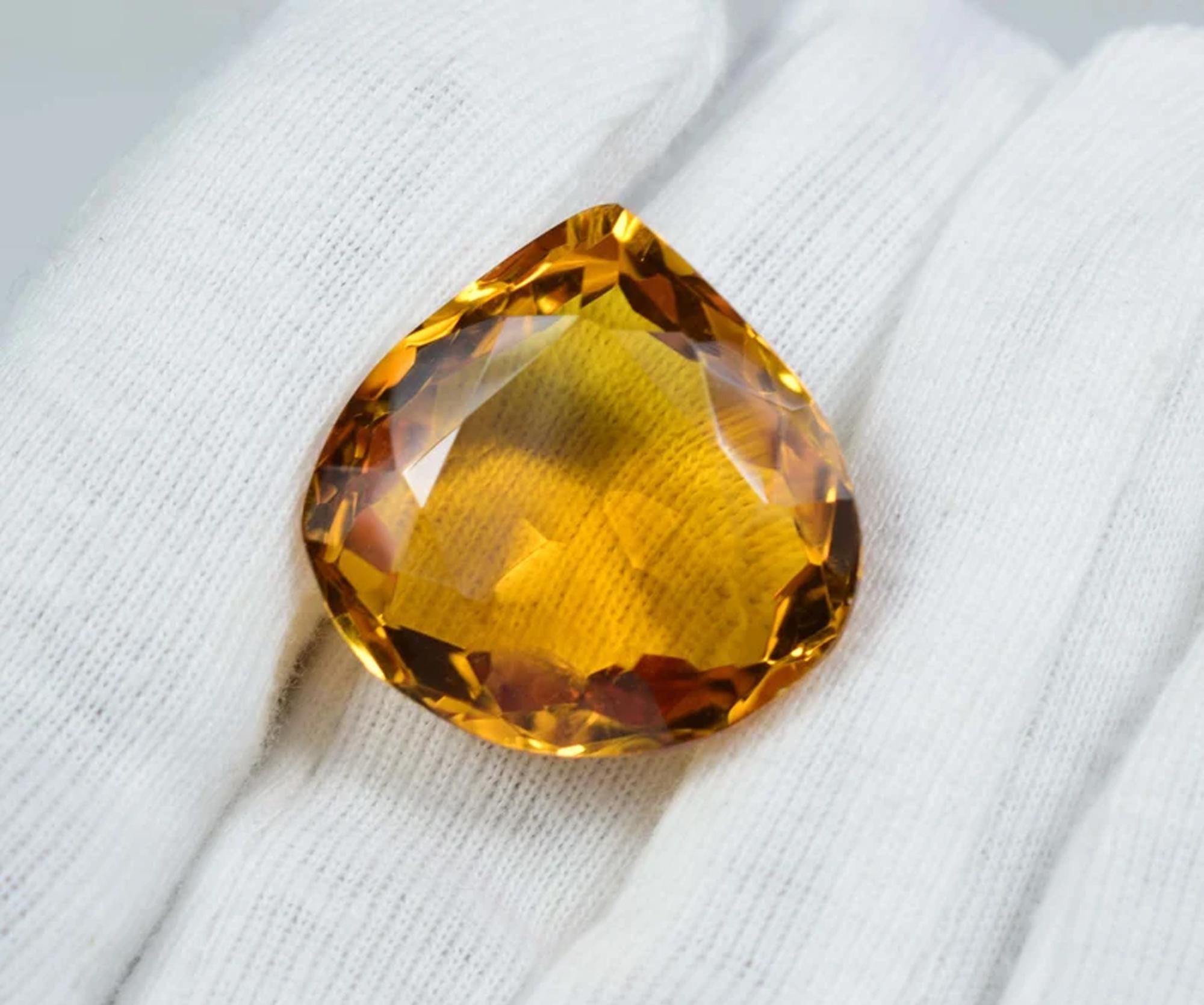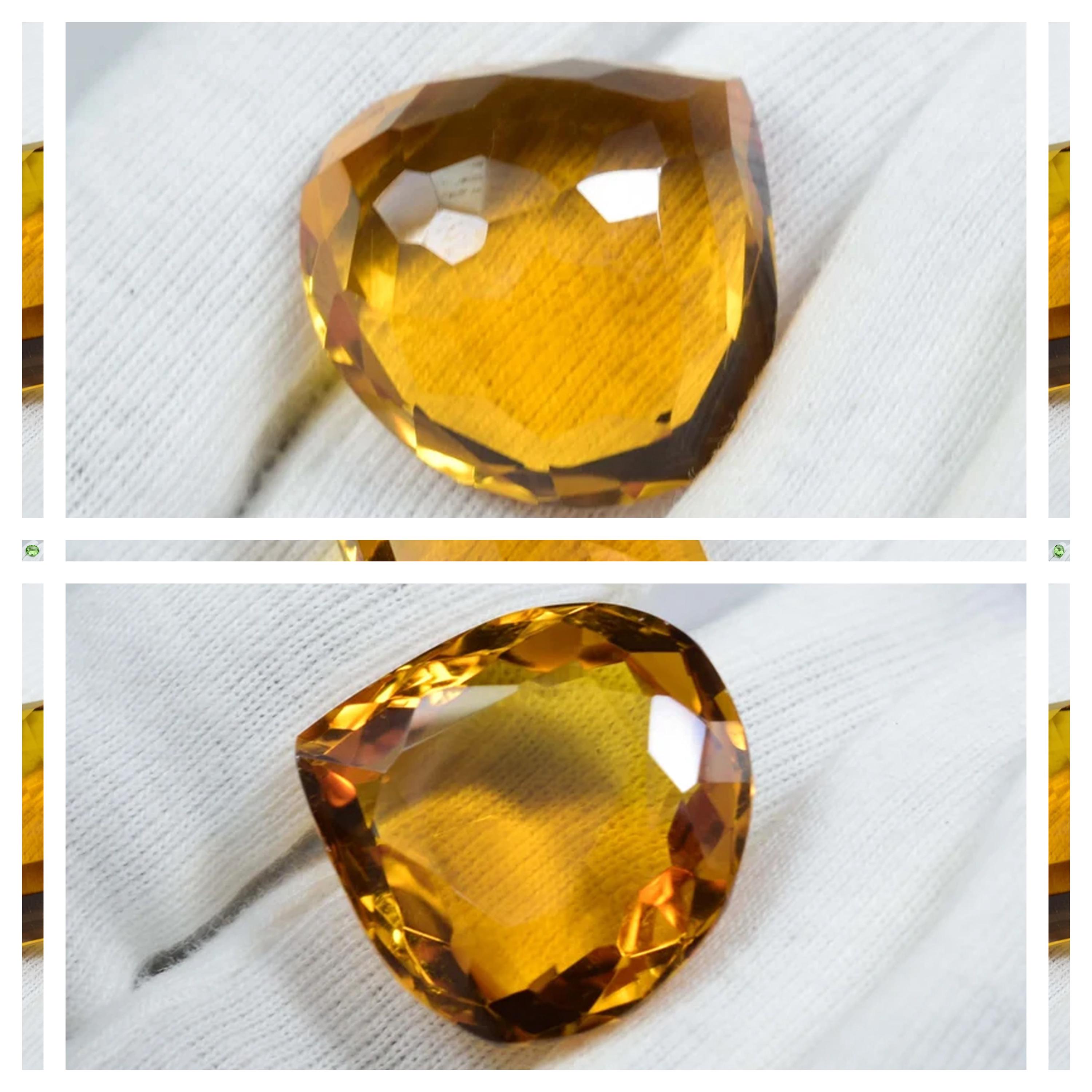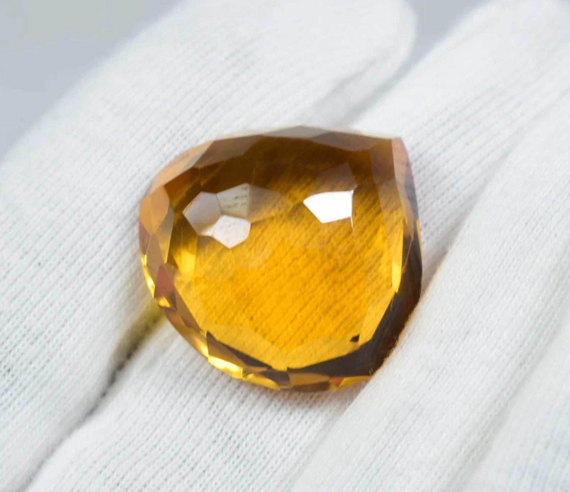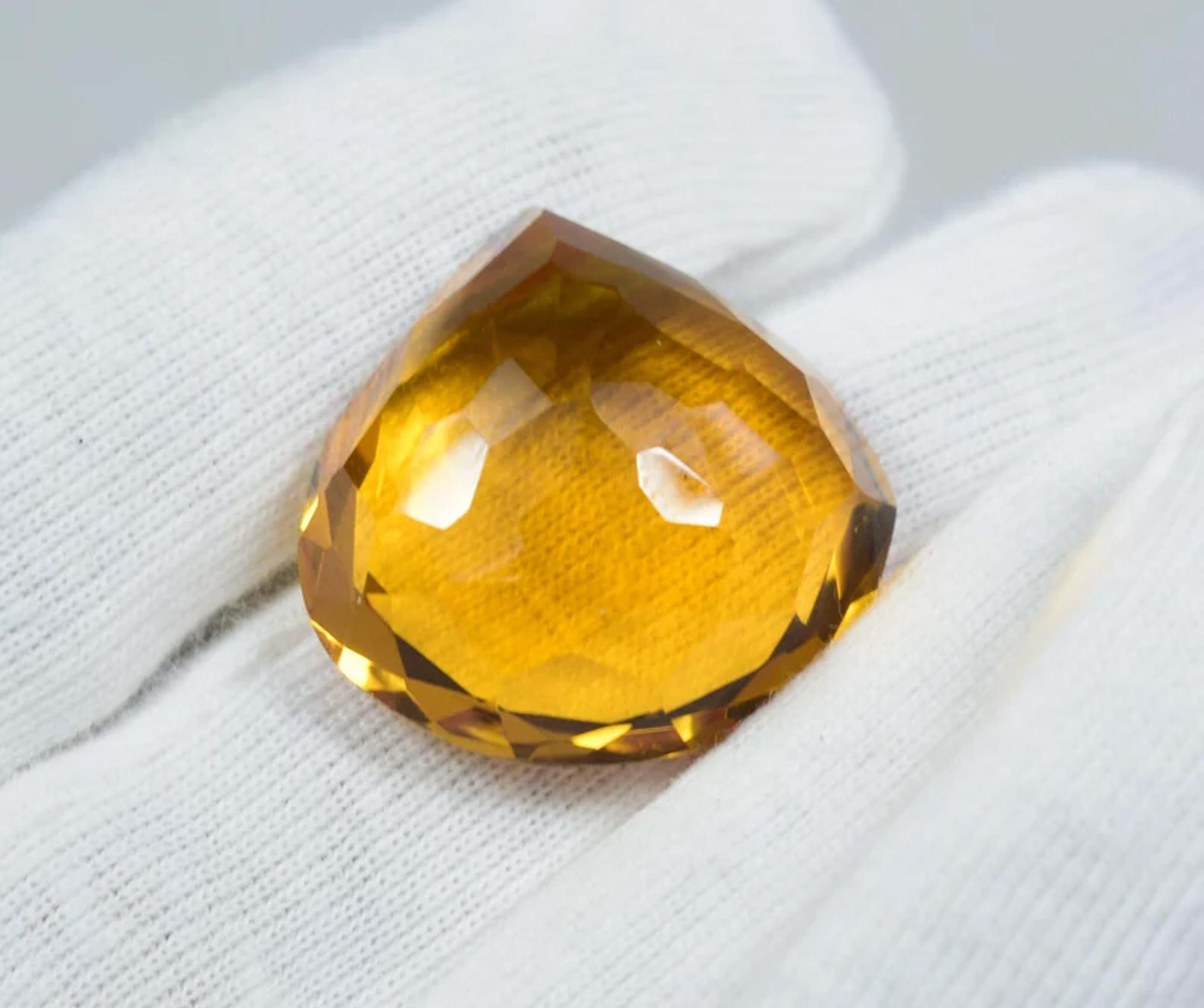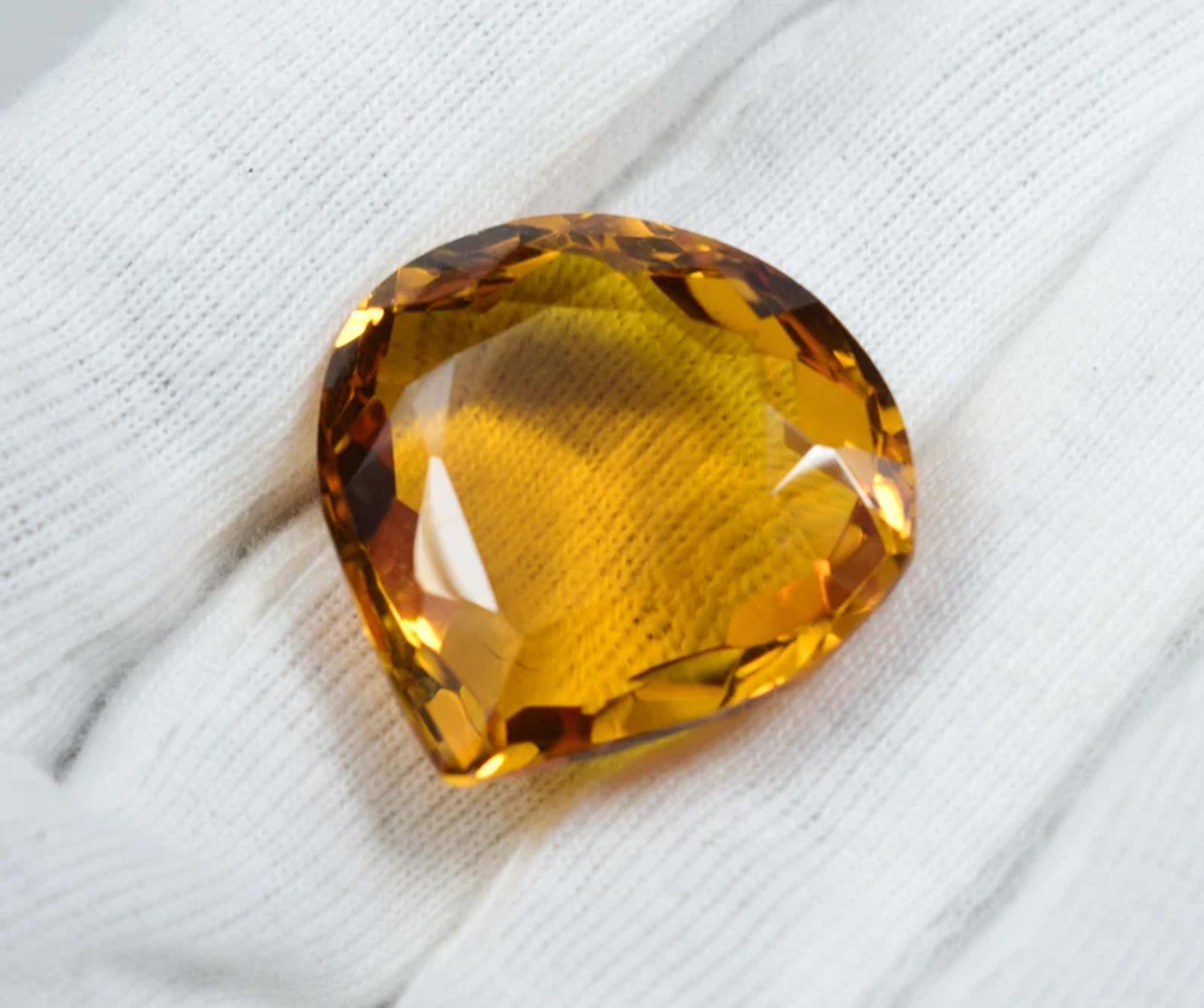Faceted Yellow Citrine Heart Stone: 50 Carat Pendant Gemstone