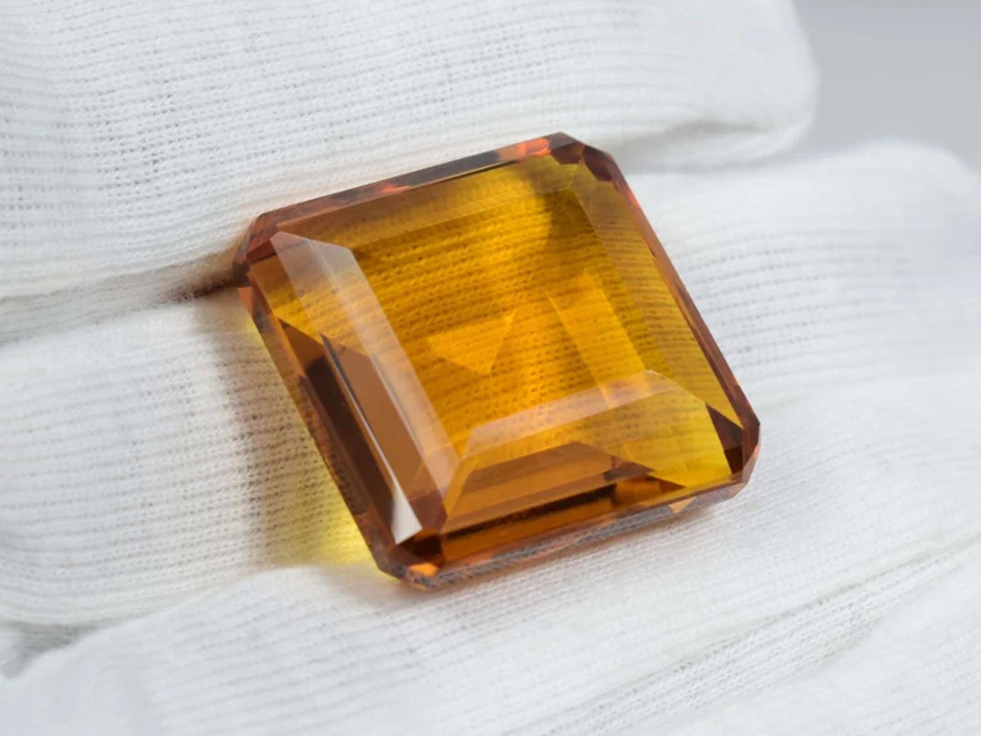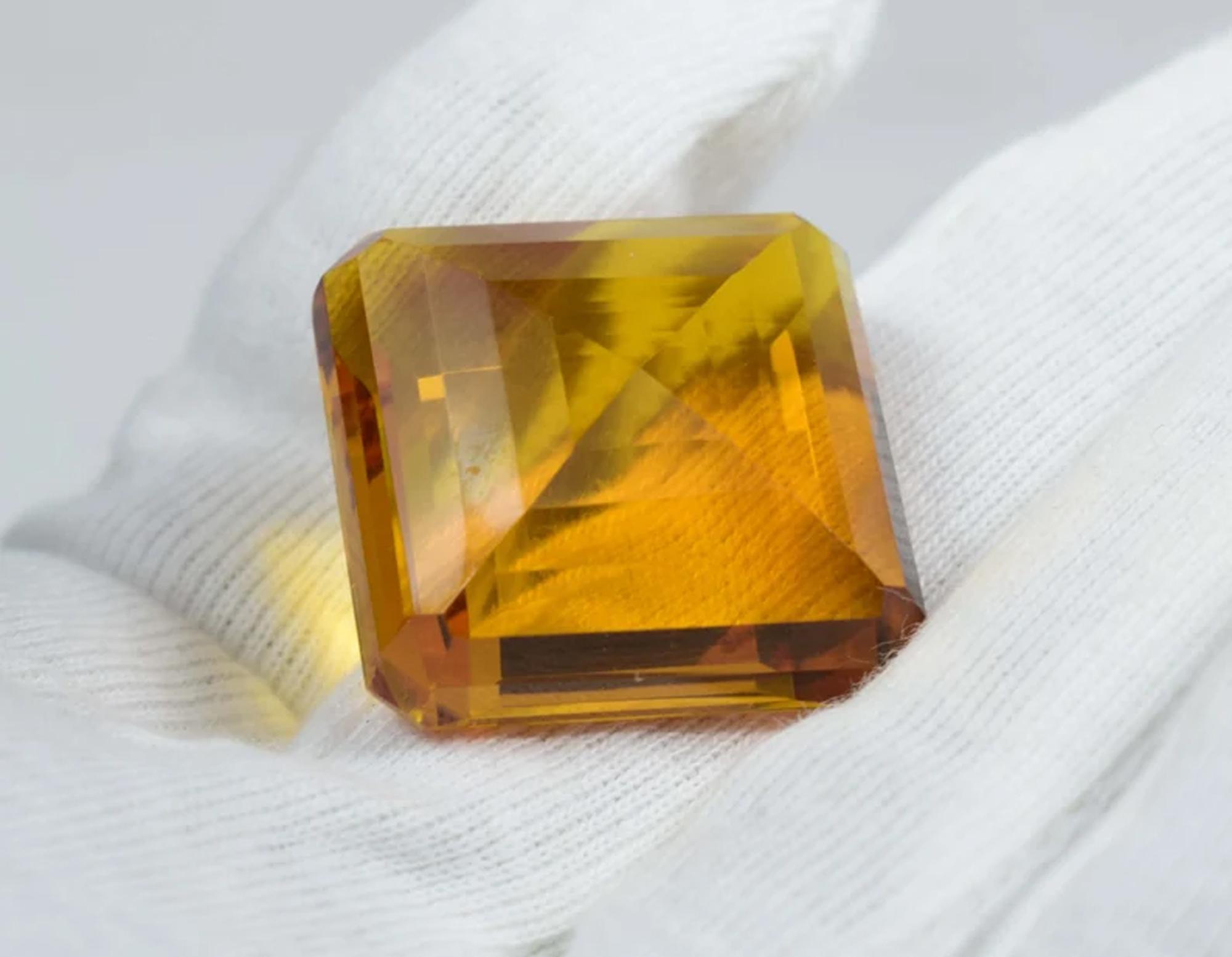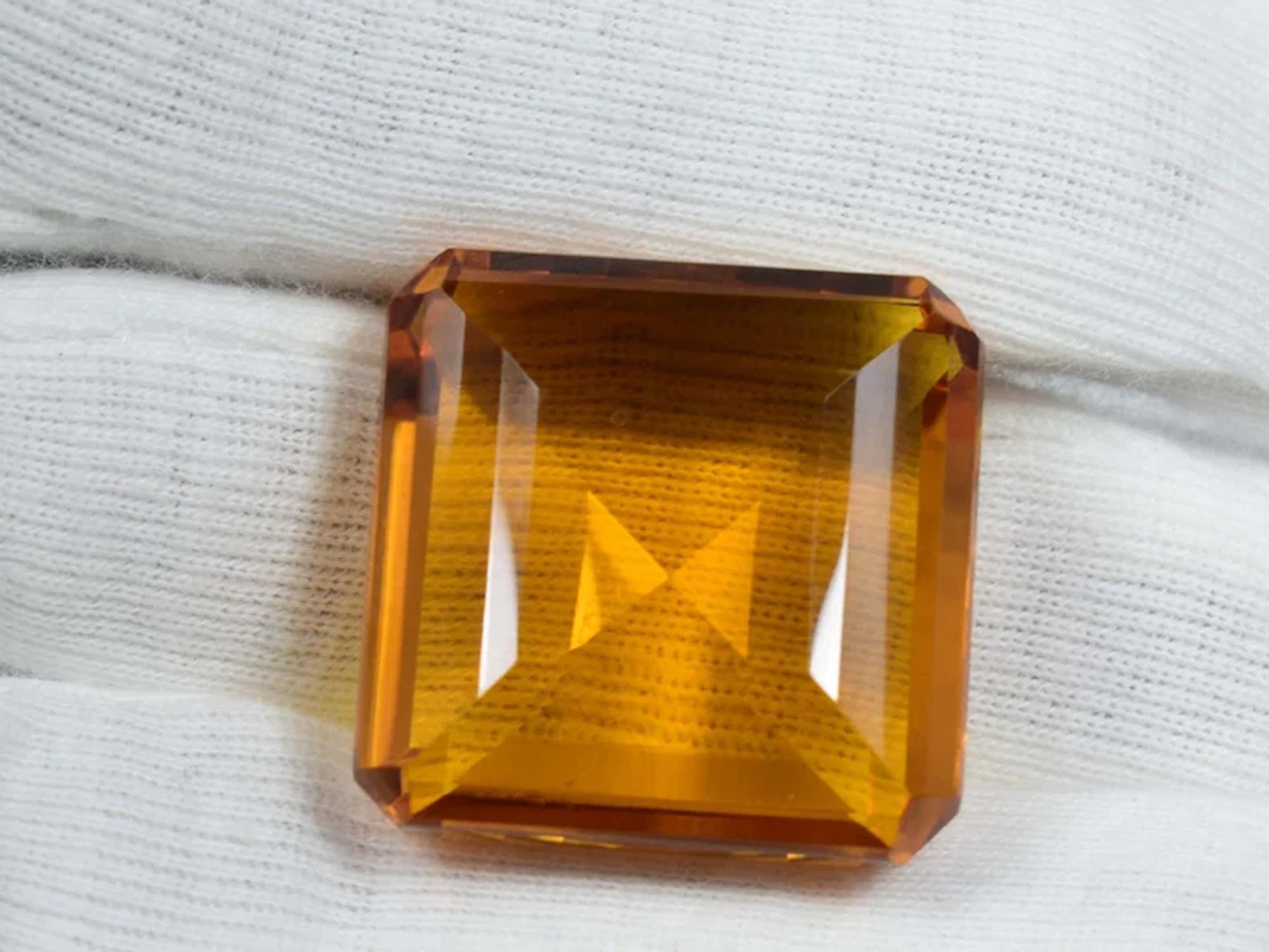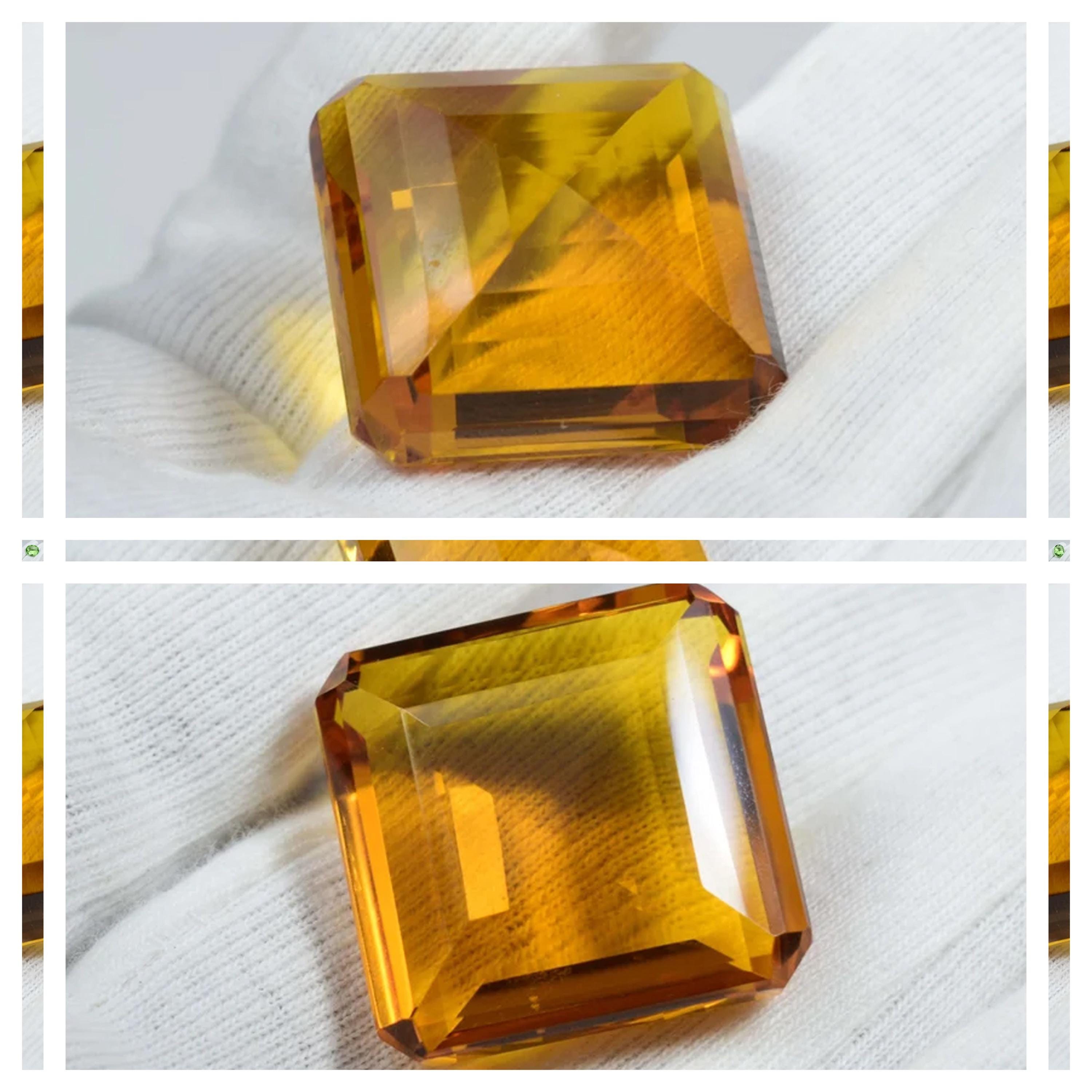 Faceted Yellow Citrine Gemstone: 22mm Square Cushion Cut, 50 Carat