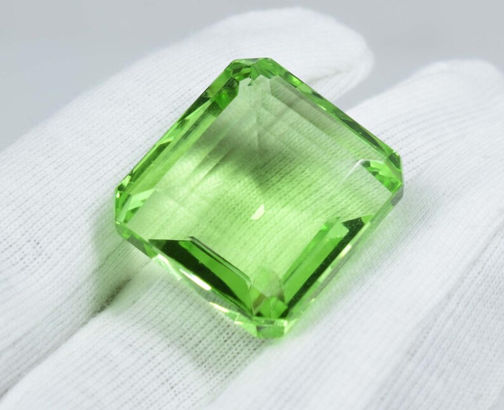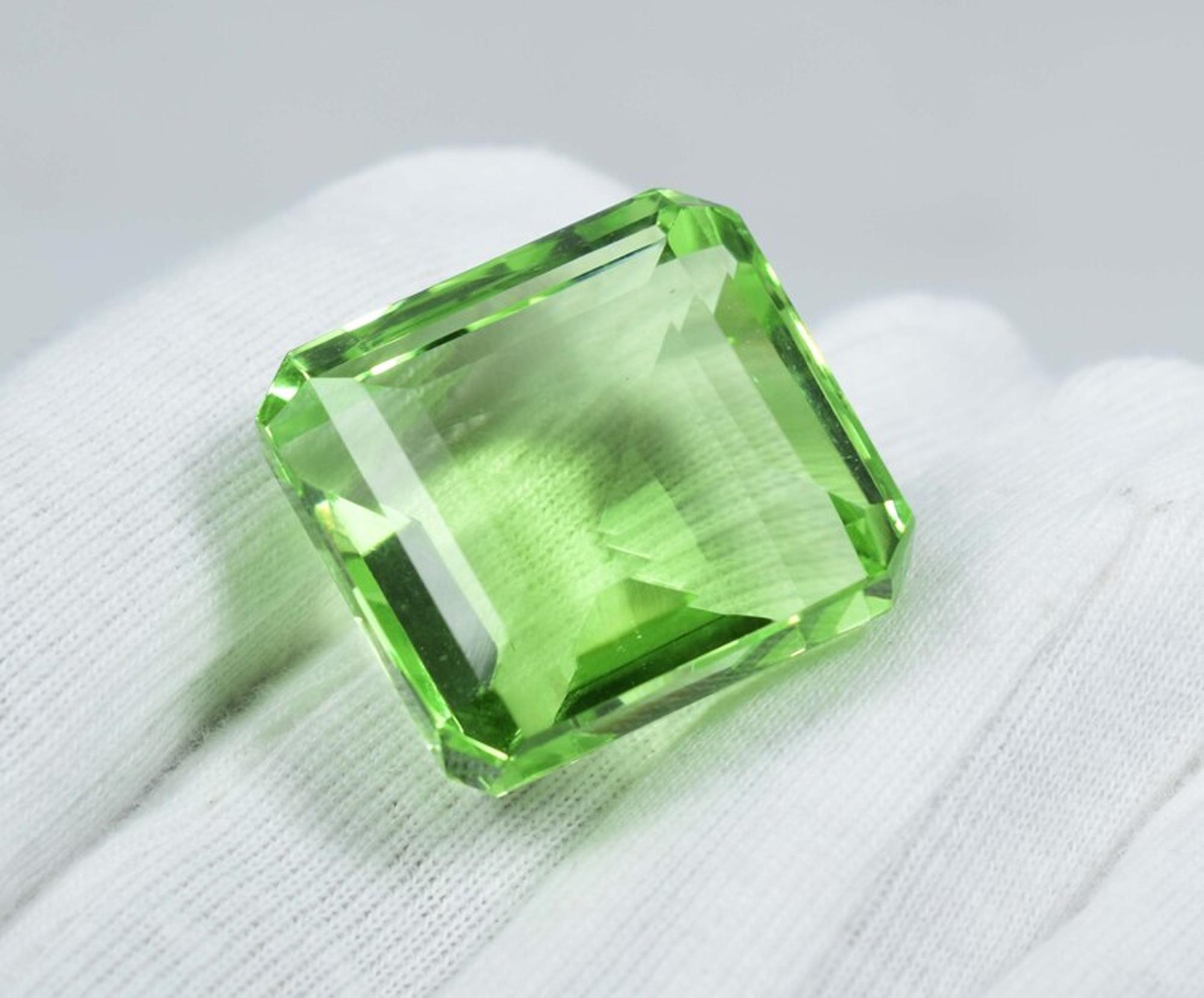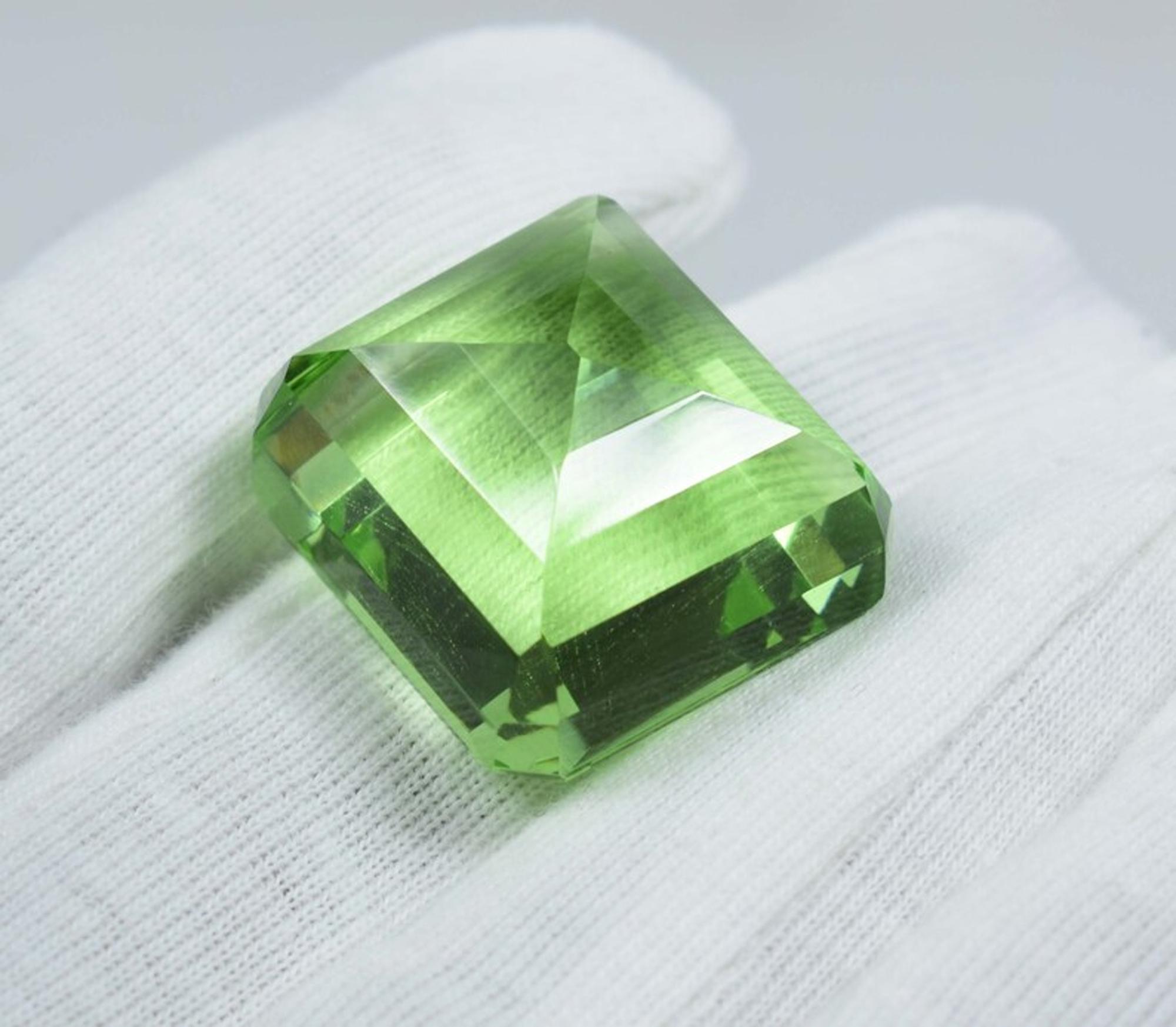Faceted Green Amethyst Loose Stone - 86 Carat Square Gemstone