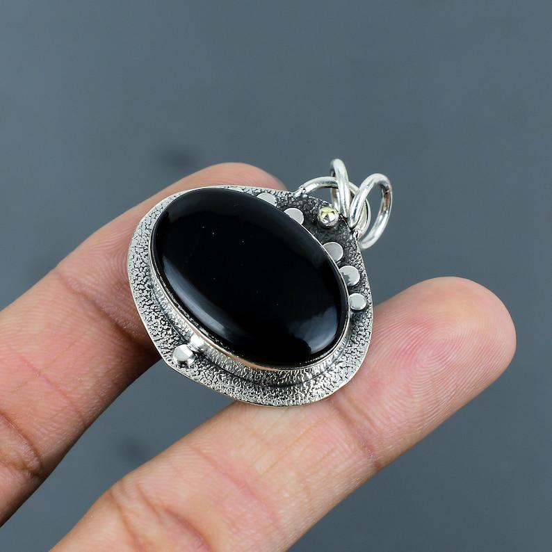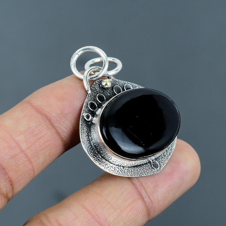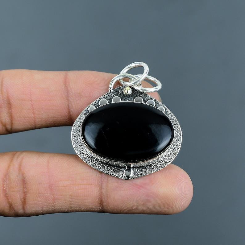 Natural Black Onyx Pendant | Handmade Sterling Silver Oval Gemstone Pendant | Protection Crystal Jewelry Gift for Him & Her Christmas Gifts