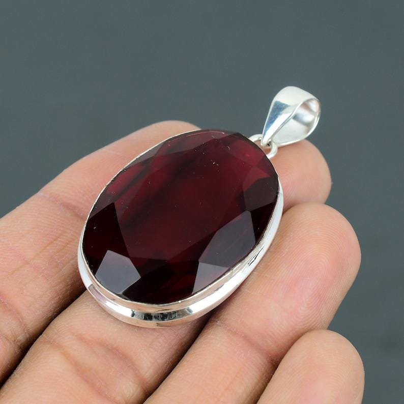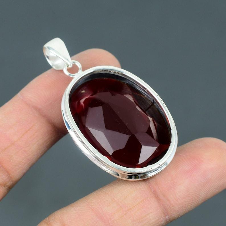 Mozambique Garnet Gemstone Pendant, Solid 925 Sterling Silver Handmade Jewelry, Garnet Pendant, Antique Pendant, Birthday Gift For Wedding