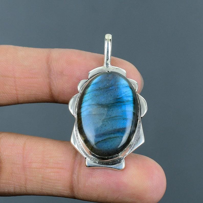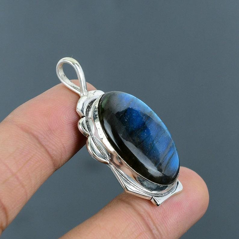 Natural Fire Labradorite, Gemstone Handmade 925 Sterling Silver Jewelry Pendant,Gifts Pendant,Double Labradorite Stone Pendant Gift For Love