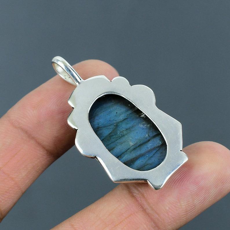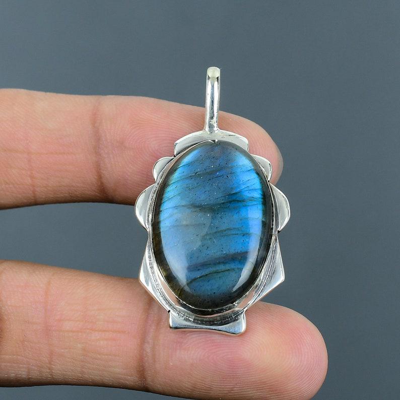 Natural Labradorite Sterling Silver Pendant: Handmade Boho Jewelry