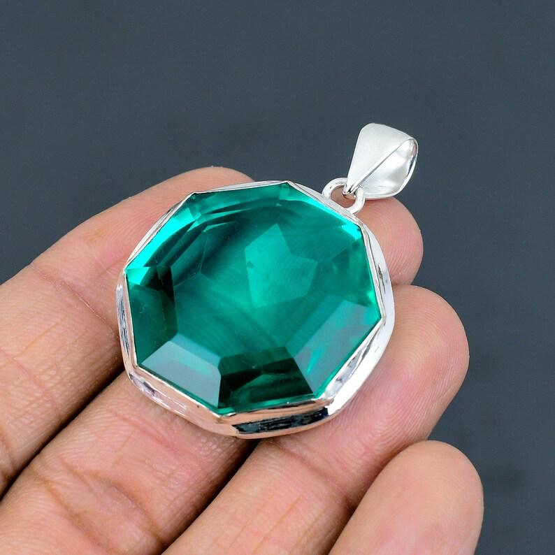 Chrome Diopside Octagon Pendant, 925 Sterling Silver Pendant, Handmade Pendant, Silver Pendant, Gemstone, Boho Jewelry, Gift For Women's