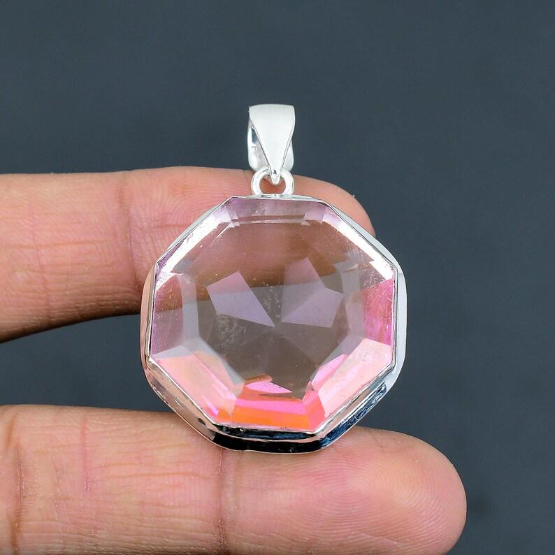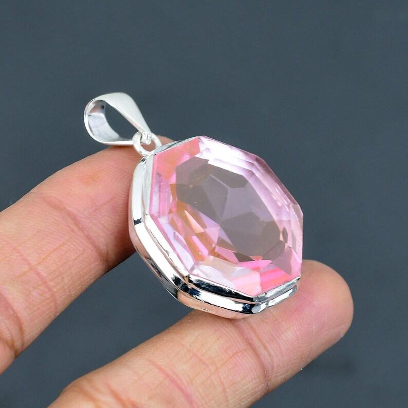 Pink Kunzite Octagon Pendant, Handmade 925 Sterling Silver Gemstone Jewelry Antique Pendant, Gemstone, Boho Jewelry, Gift For Girl's