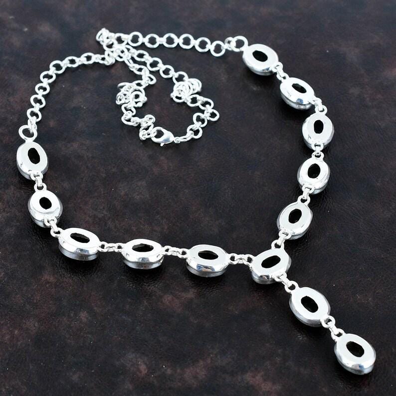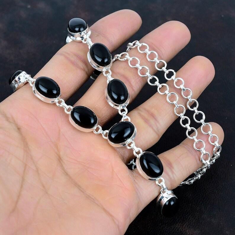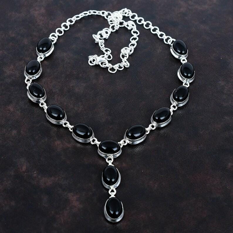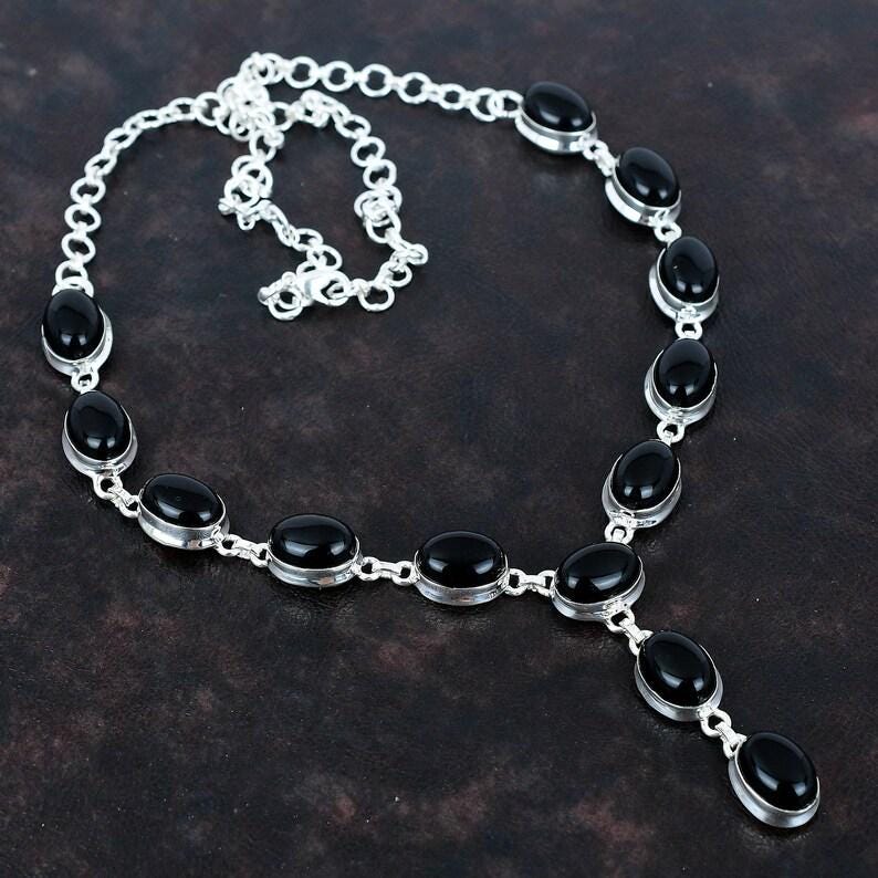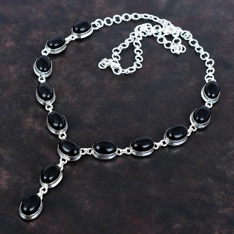 Black Onyx Sterling Silver Necklace, Handmade Gemstone Jewelry Adjustable Chain Handmade Necklace Wedding Gifts