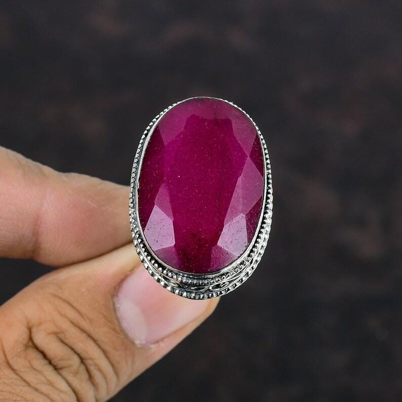 Faceted Kashmir Ruby Ring Natural Gemstone Ring Handmade Jewelry 925 Sterling Silver Ring Adjustable Ring Antique Vintage Ring Gifts For Her
