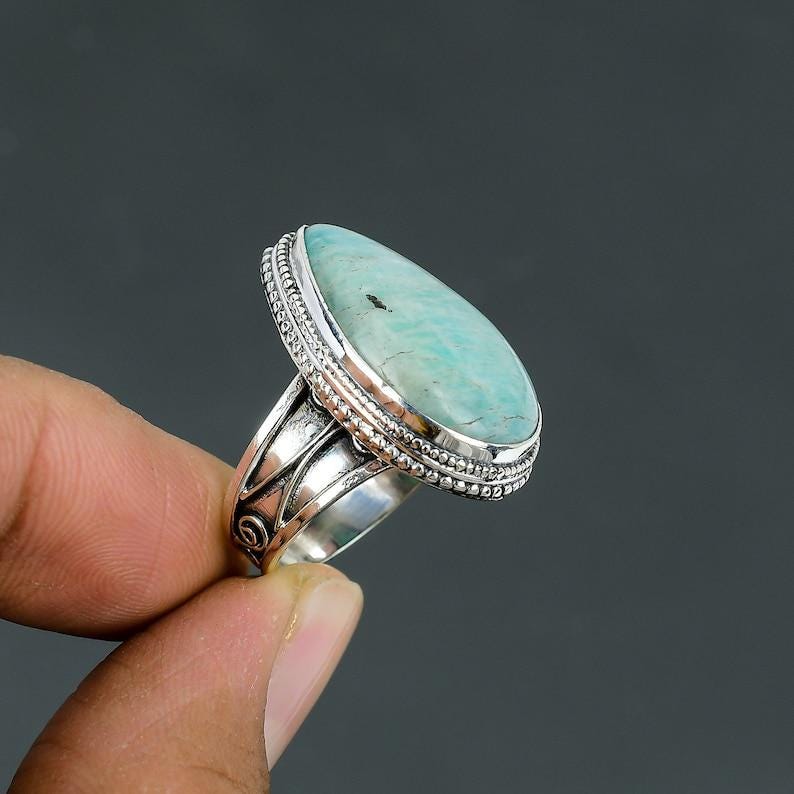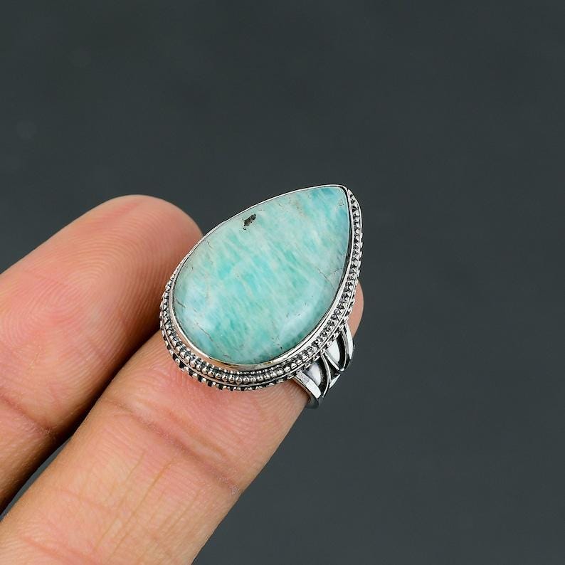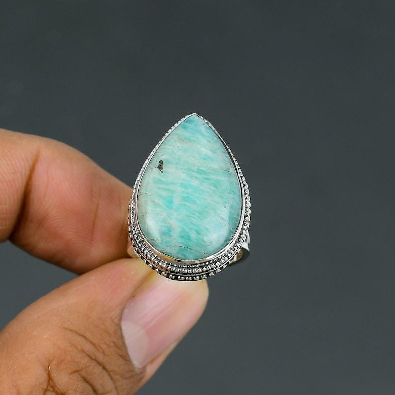 Amazonite Pear Ring: Handmade 925 Sterling Silver, Amazonite Natural Gemstone Ring Handmade Silver Ring Antique Vintage Ring Size 6.25