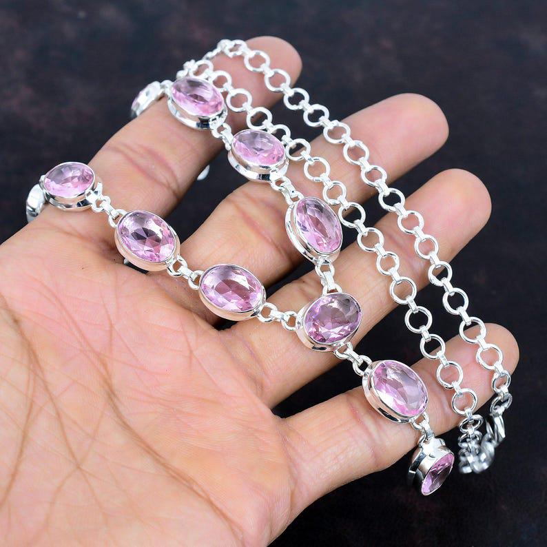 Pink kunzite faceted necklace 925 sterling silver necklace adjustable chain handmade necklace top quality gemstone jewelry anniversary gifts