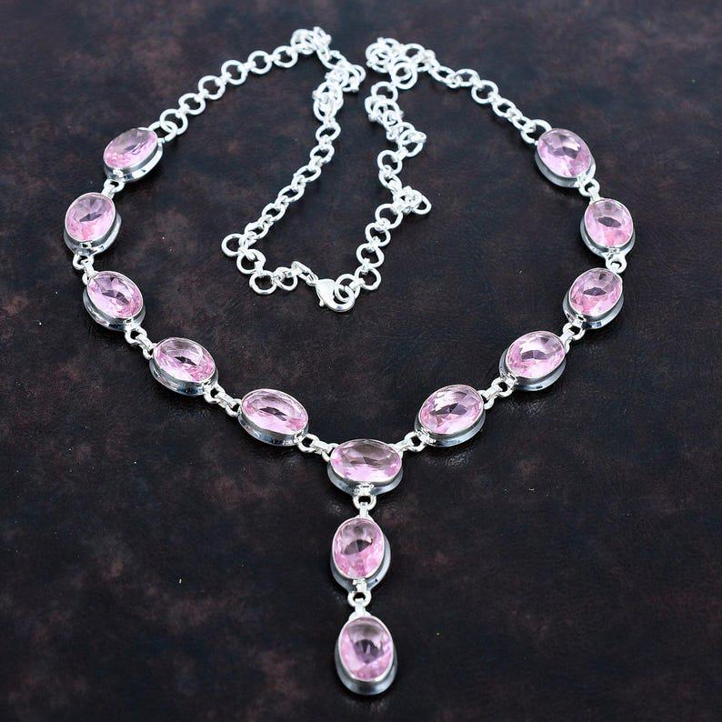 Faceted Pink Kunzite Necklace: 925 Sterling Silver, Adjustable Chain