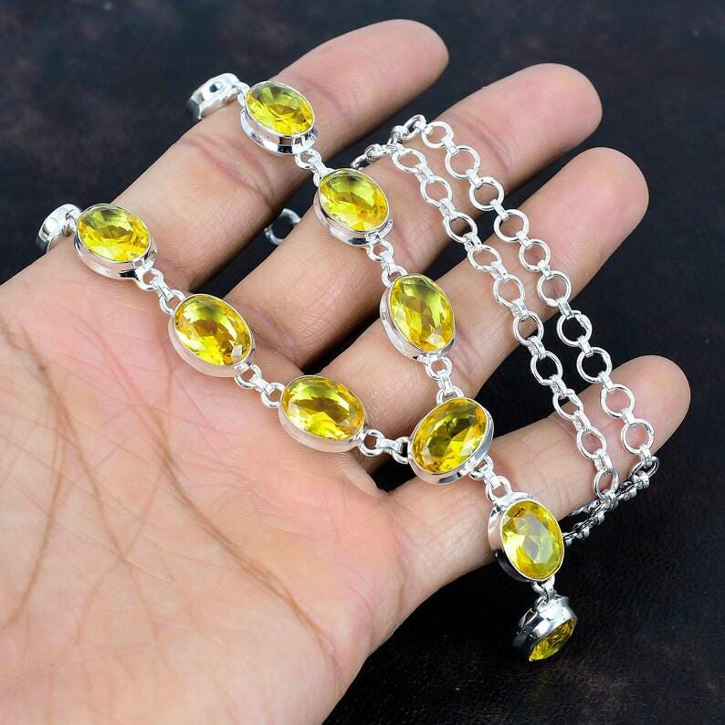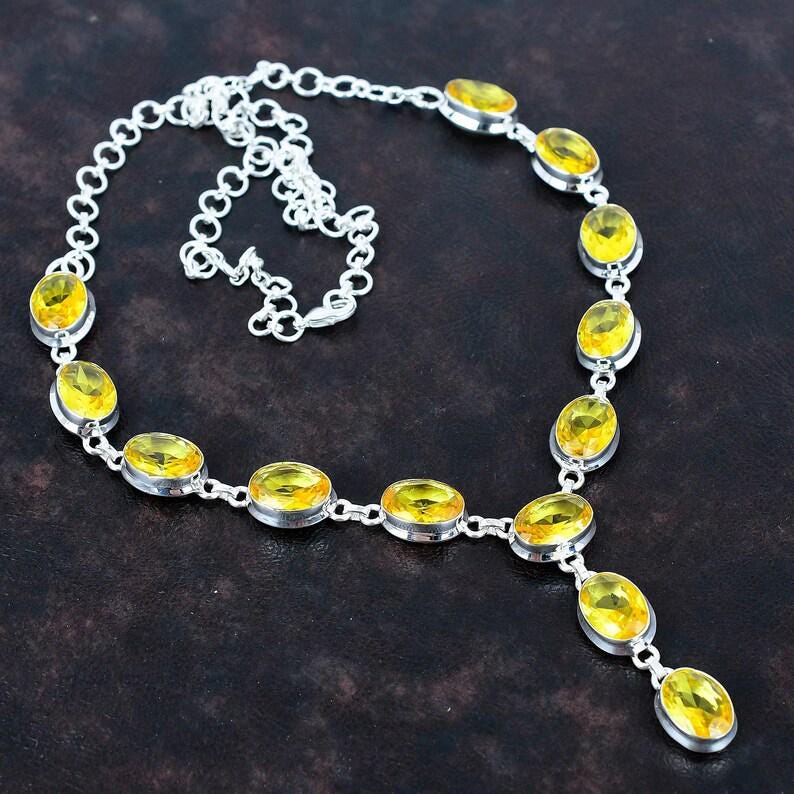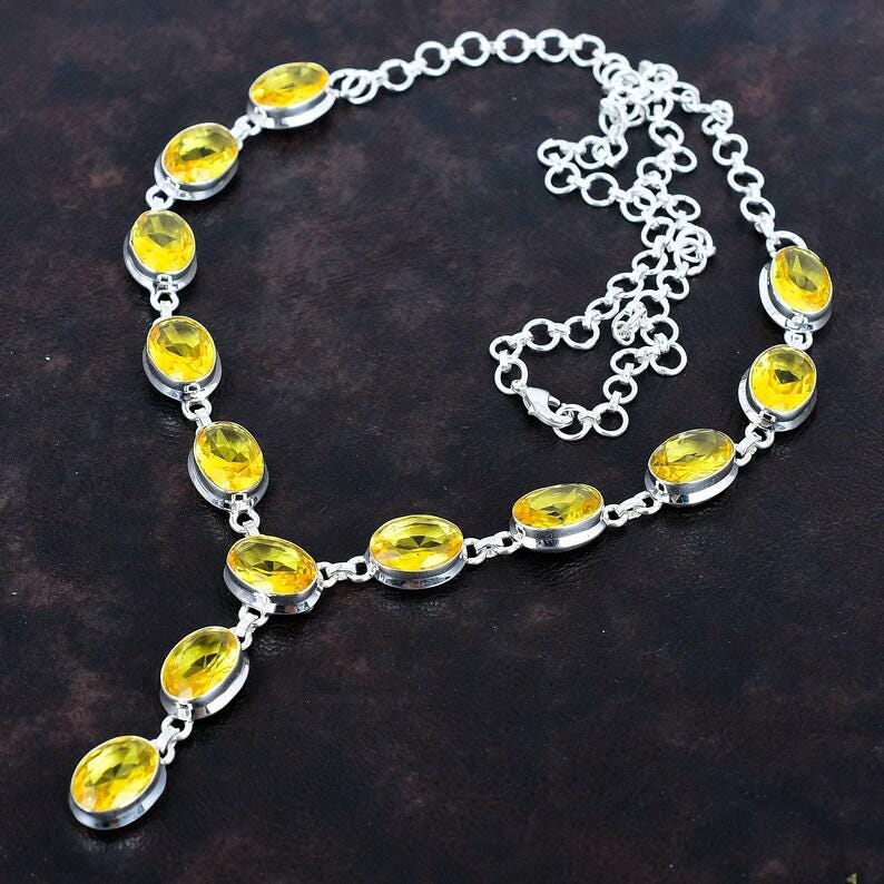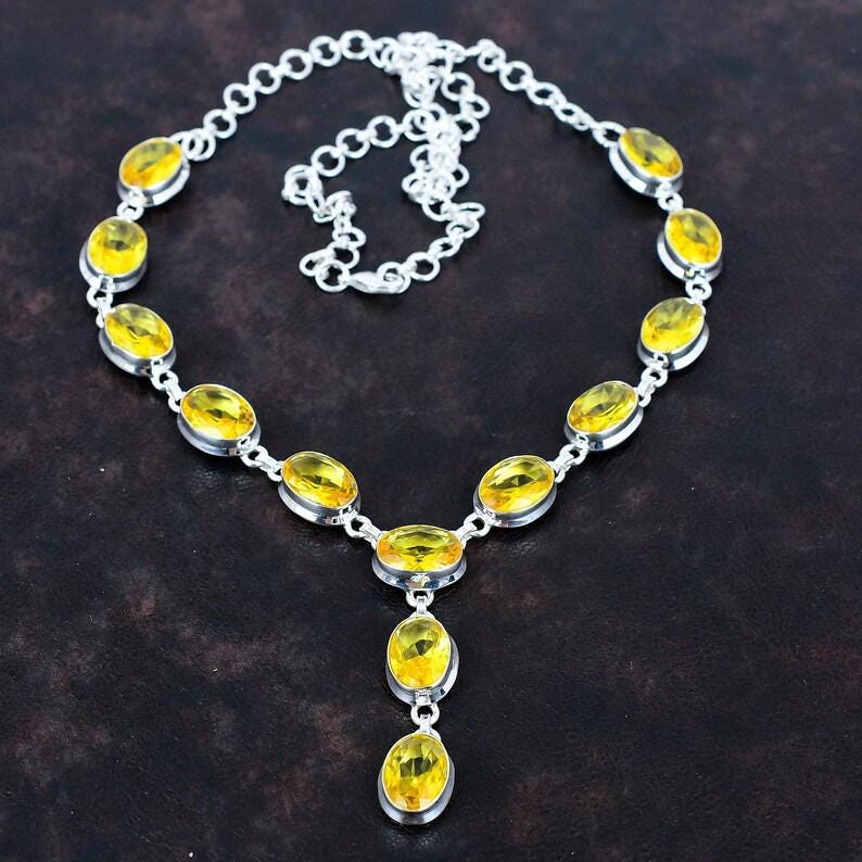 Citrine faceted necklace gemstone necklace Yellow stone jewelry 925 sterling silver adjustable chain necklace handmade jewelry for gifts