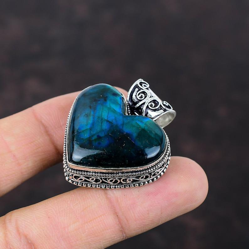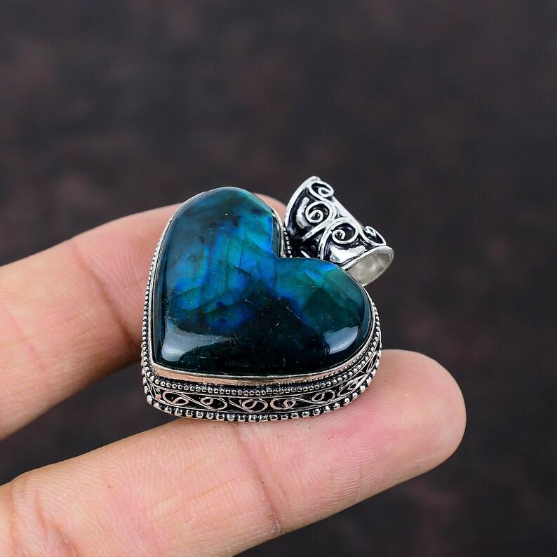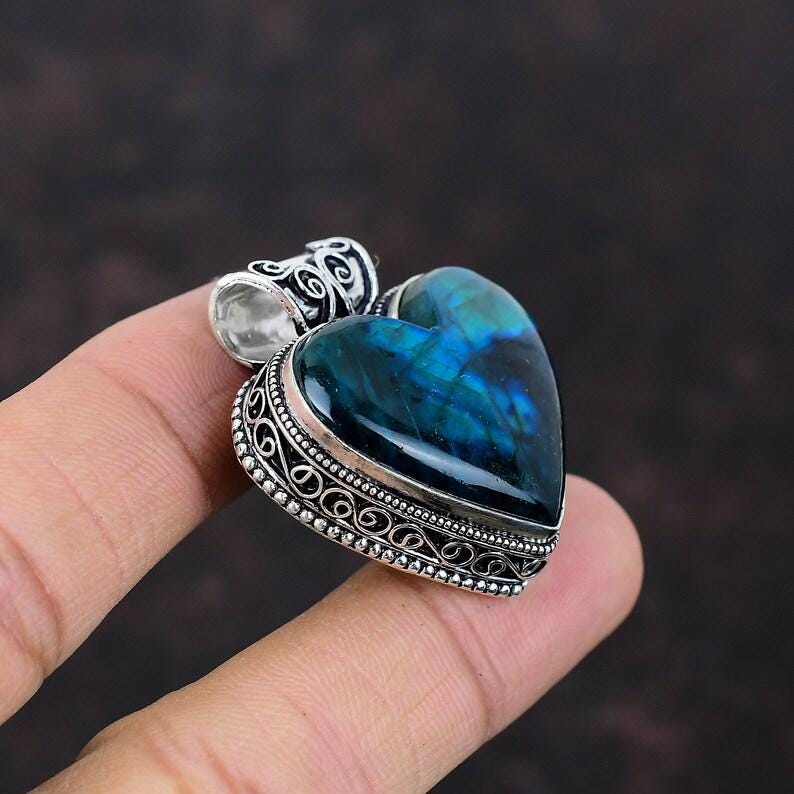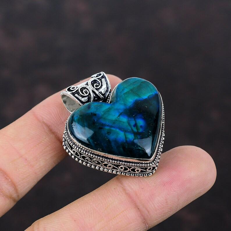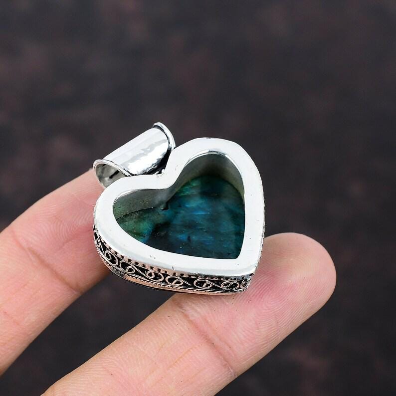 Neon Flash Labradorite Heart Pendant: Sterling Silver Boho Jewelry