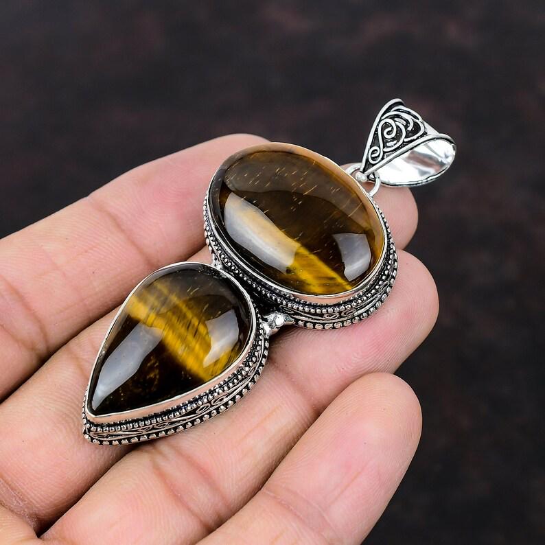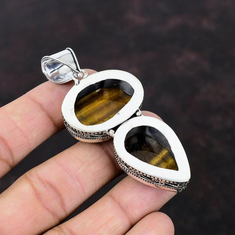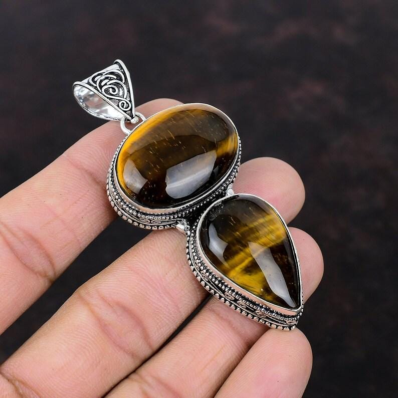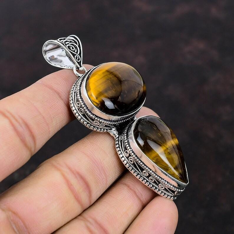 Tiger's Eye Pendant Handmade Vintage Pendant Real Gemstone Pendant 925 Sterling Silver Pendant Tiger's Eye Jewelry Anniversary Gift For Mom