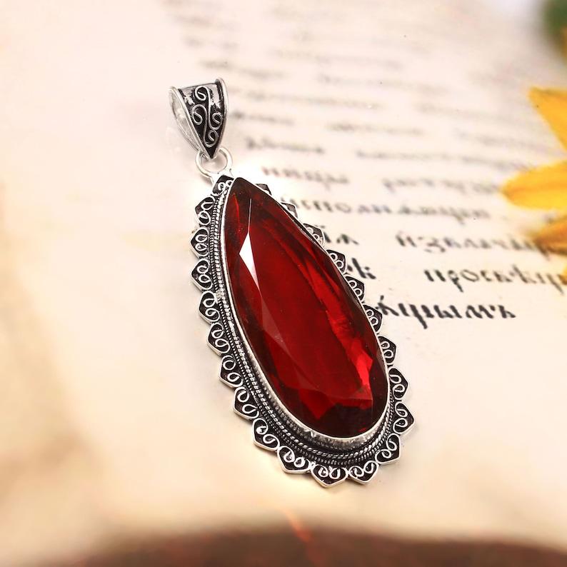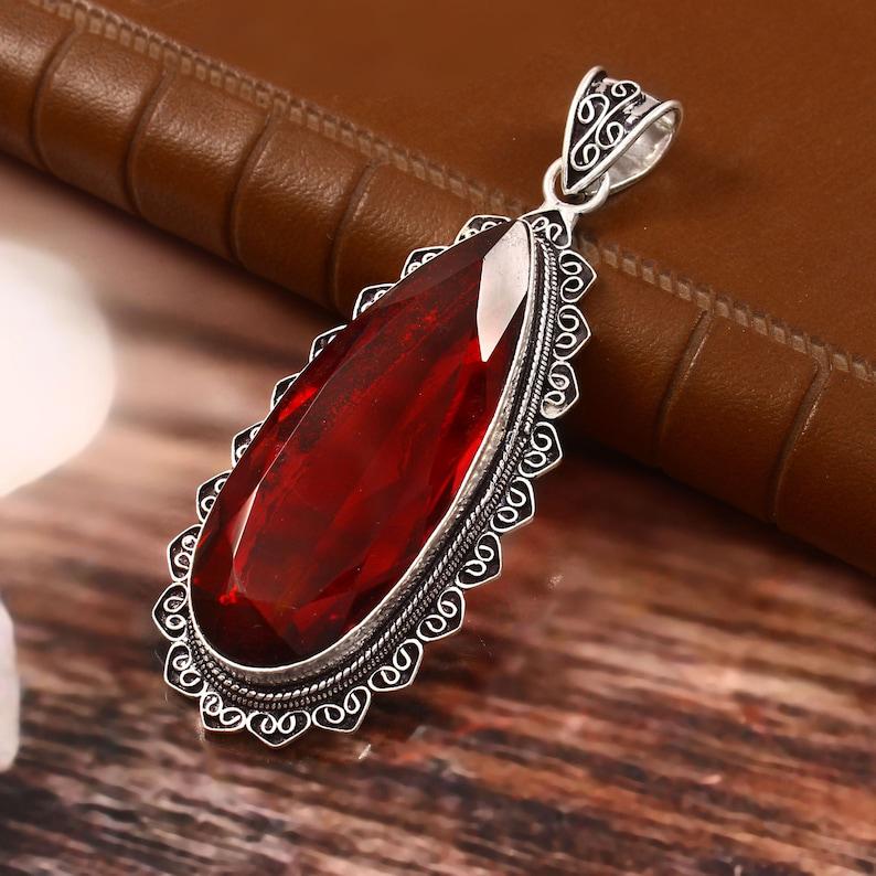 Handmade Pear Garnet 925 Sterling Silver Pendant - Boho Healing Jewelry