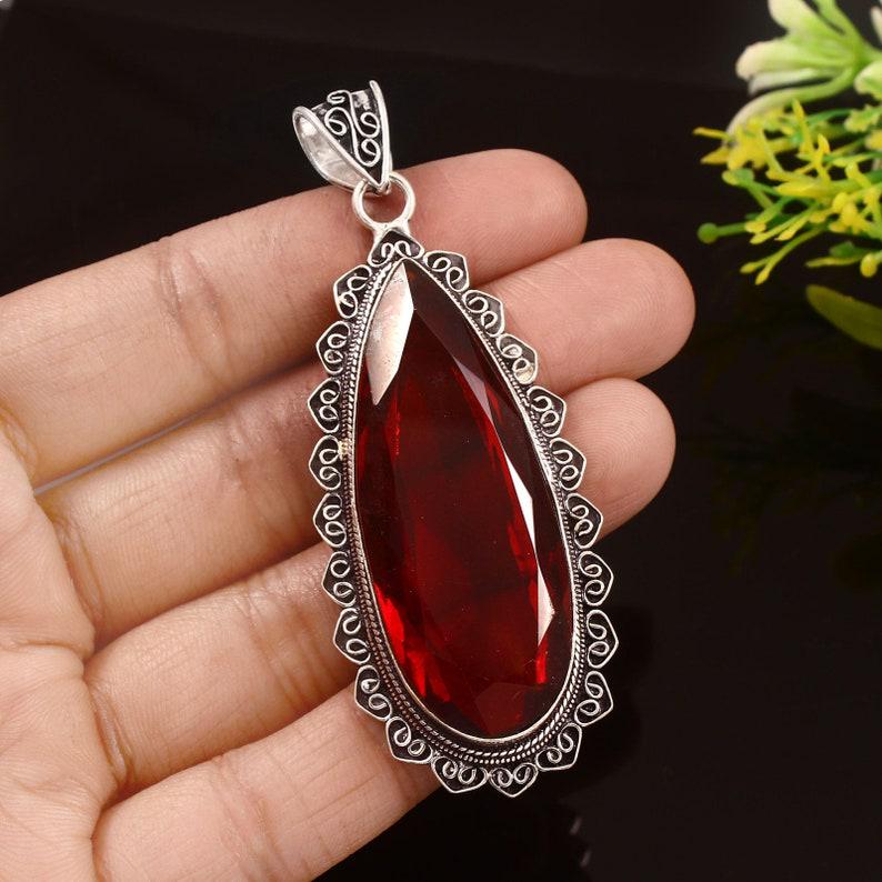 Garnet pendant,red garnet gemstone pendant,925 sterling silver pendant,handmade pendant,gift for her,anniversary gift,pendant for necklace