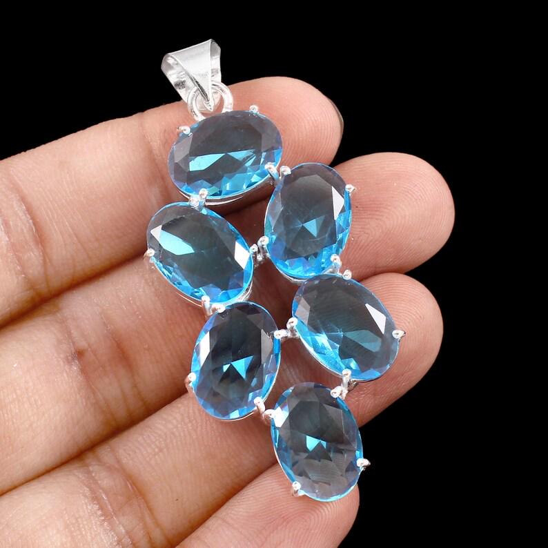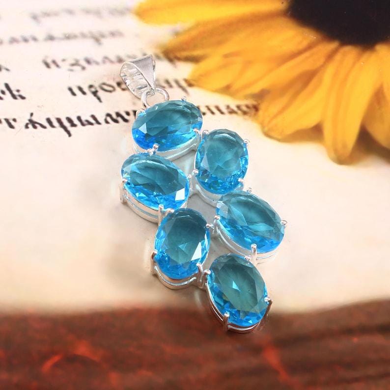 Swiss Blue Topaz Pendant, 925 Sterling Silver Pendant, Vintage Style Pendant, Handmade Pendant, Gift For Her Anniversary Gift, Stone Pendant