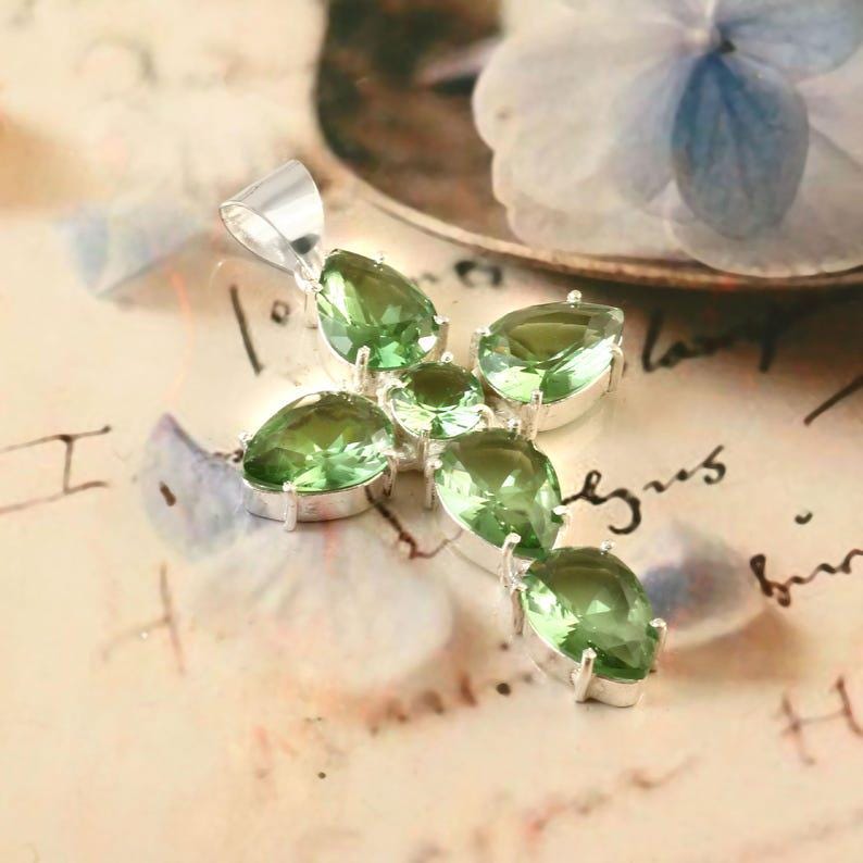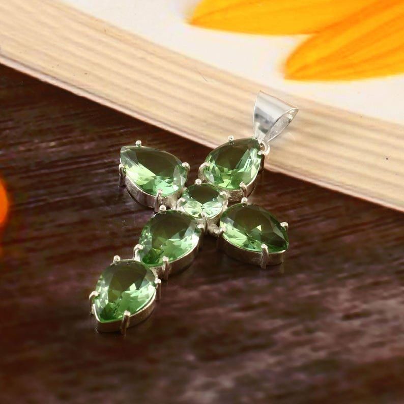 Green amethyst cross pendant,handmade pendant,925 sterling silver pendant,gemstone pendant,gift for her/him, anniversary gift,birthday