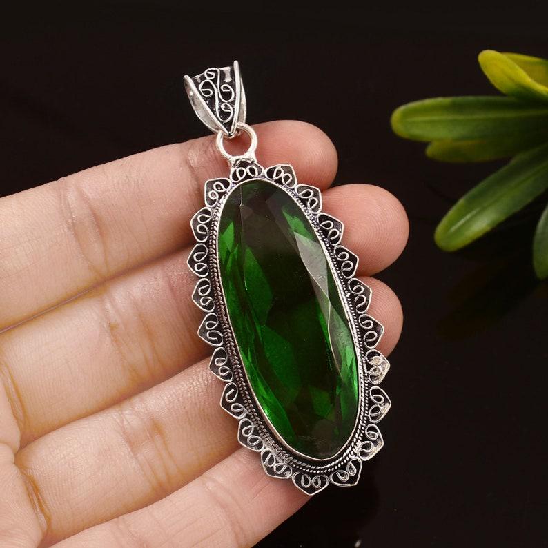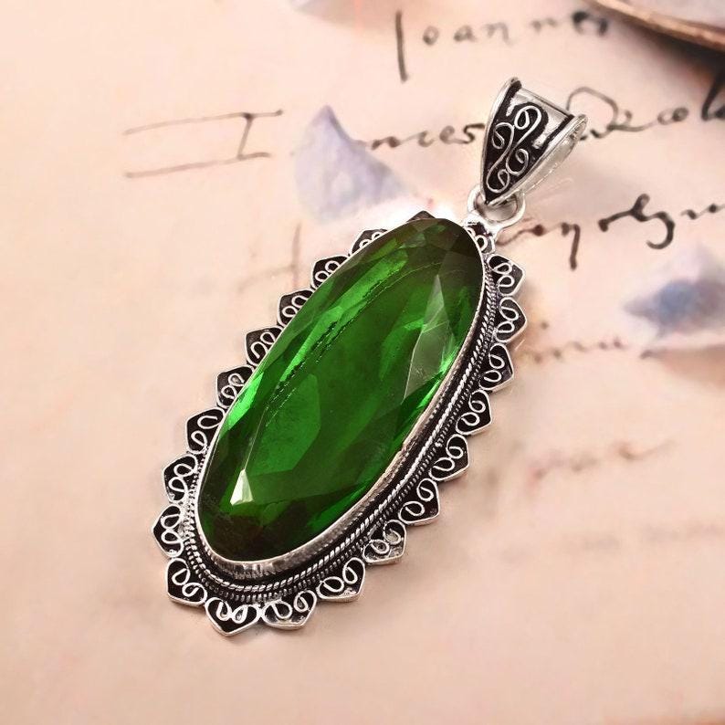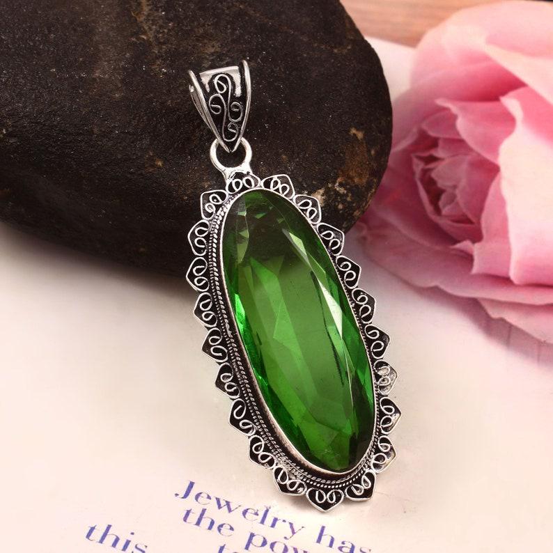 Peridot pendant,green gemstone pendant,925 sterling silver pendant,handmade pendant,gift for her,anniversary gift