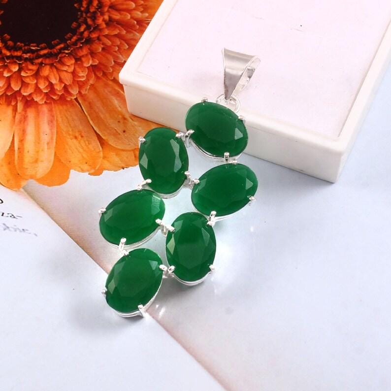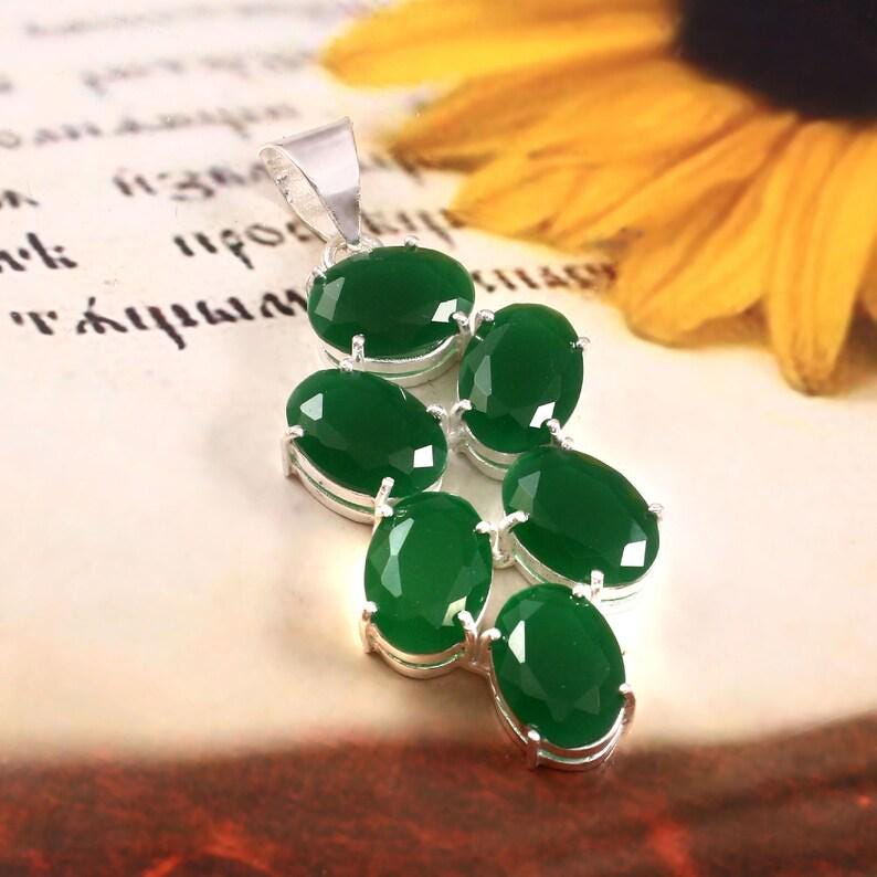 Green onyx pendant, onyx gemstone pendant, 925 sterling silver pendant, handmade pendant, gift for her, anniversary gift, vintage pendant