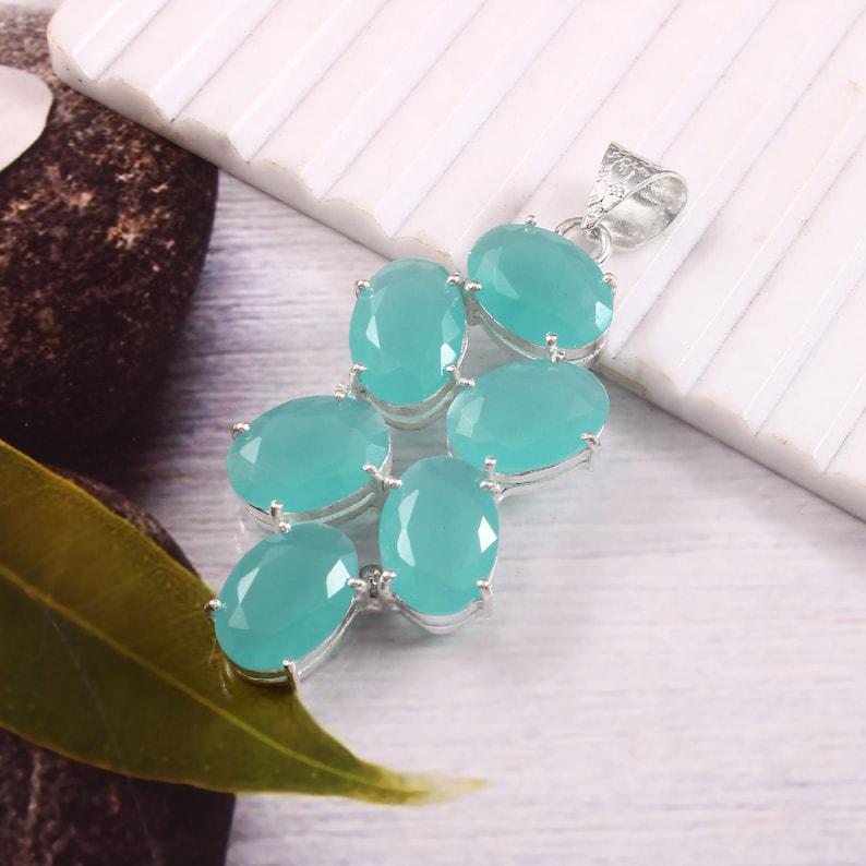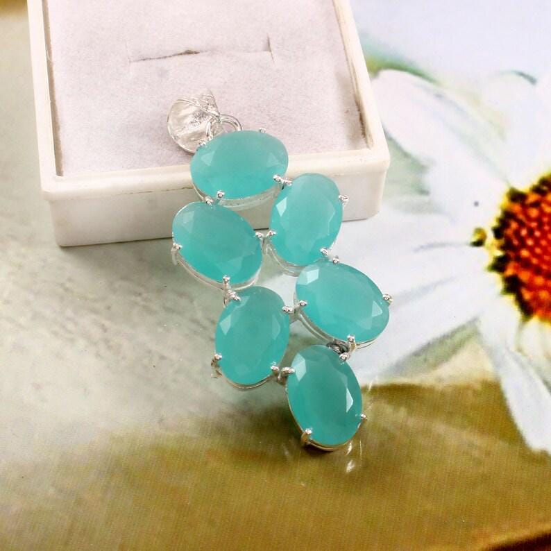 Aqua chalcedony pendant, blue gemstone pendant, 925 sterling silver pendant, handmade pendant, gift for her, birthday gift, vintage pendant