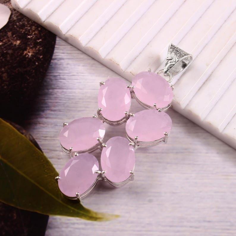 Rose Quartz Pendant, 925 Sterling Silver Pendant, Vintage Style Pendant, Handmade Pendant, Gift For Her, Anniversary Gift, Pendant For Women