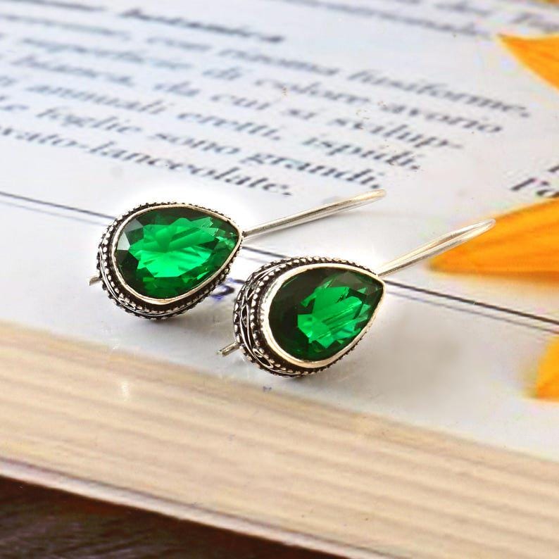Emerald Quartz Dangle Earrings: 925 Sterling Silver, Minimalist Handmade Jewelry