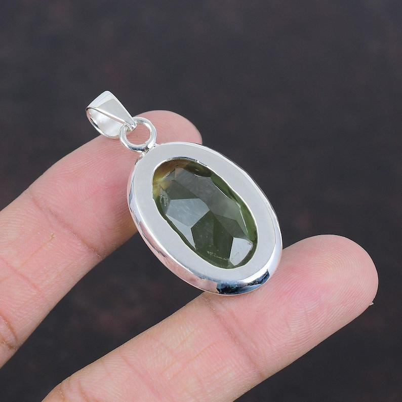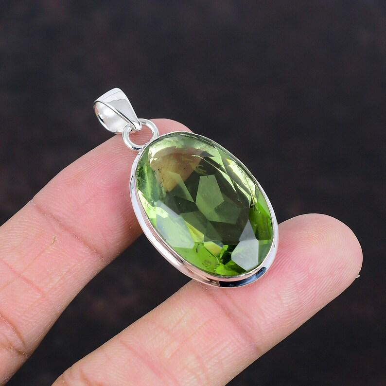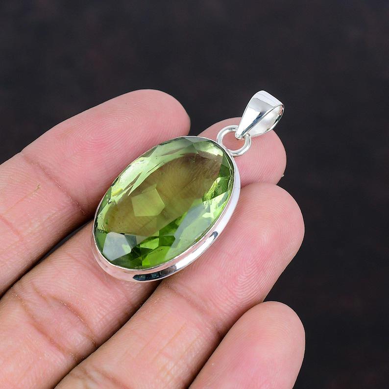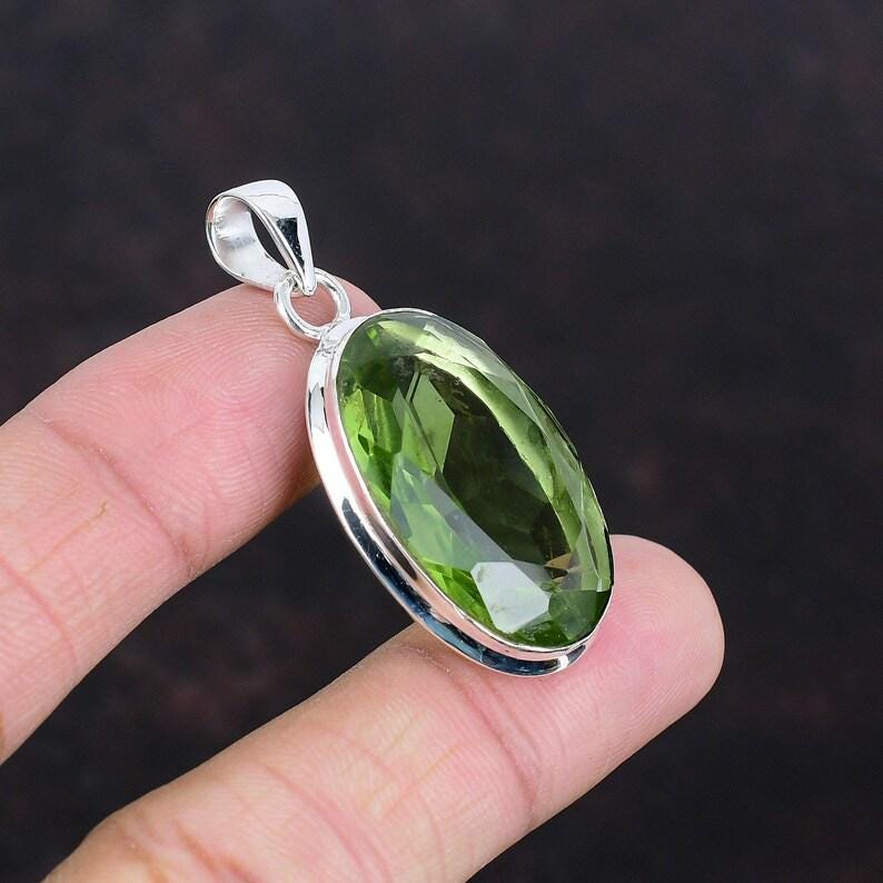 Faceted Green Amethyst Pendant: Handmade 925 Sterling Silver Boho Jewelry