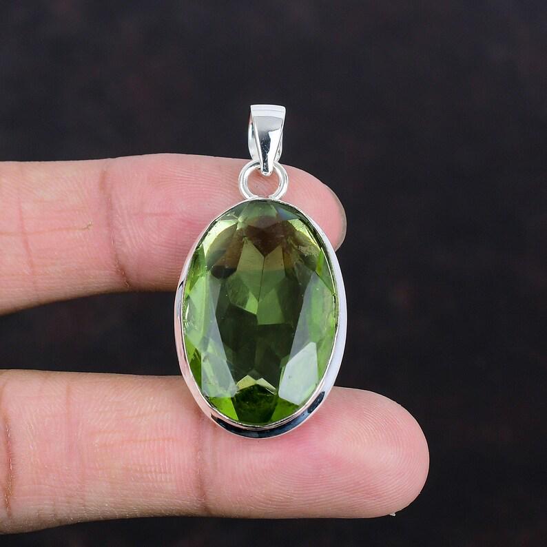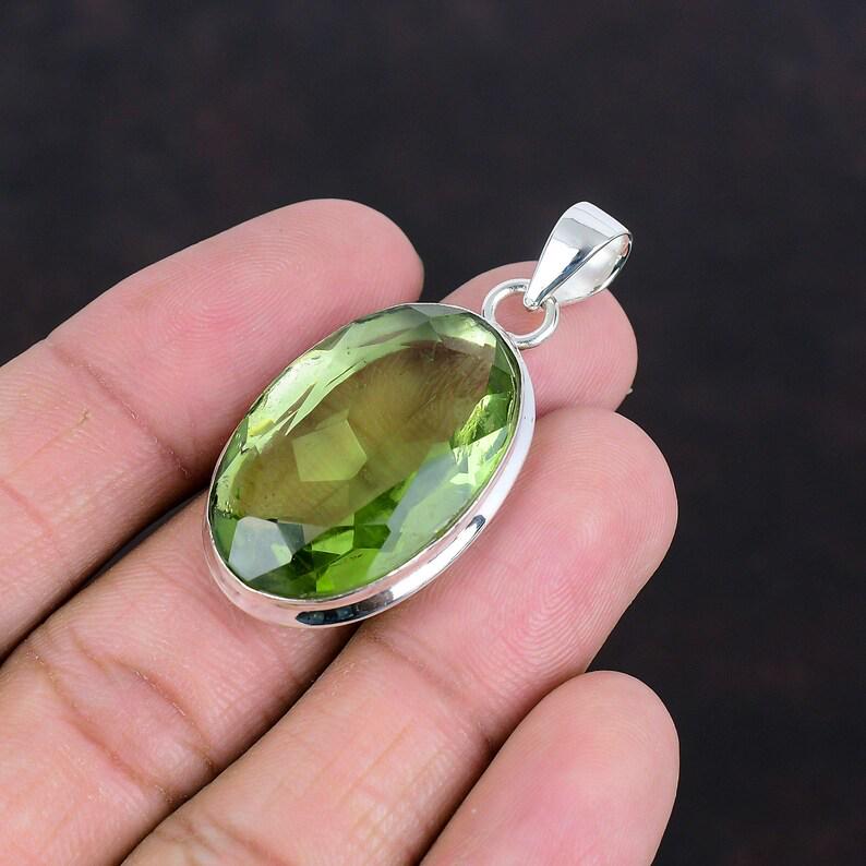 Faceted Green Amethyst Pendant ,Gemstone Handmade Pendant, 925 Sterling Silver Pendant , Stone Jewelry Statement Pendant Gift For Mom