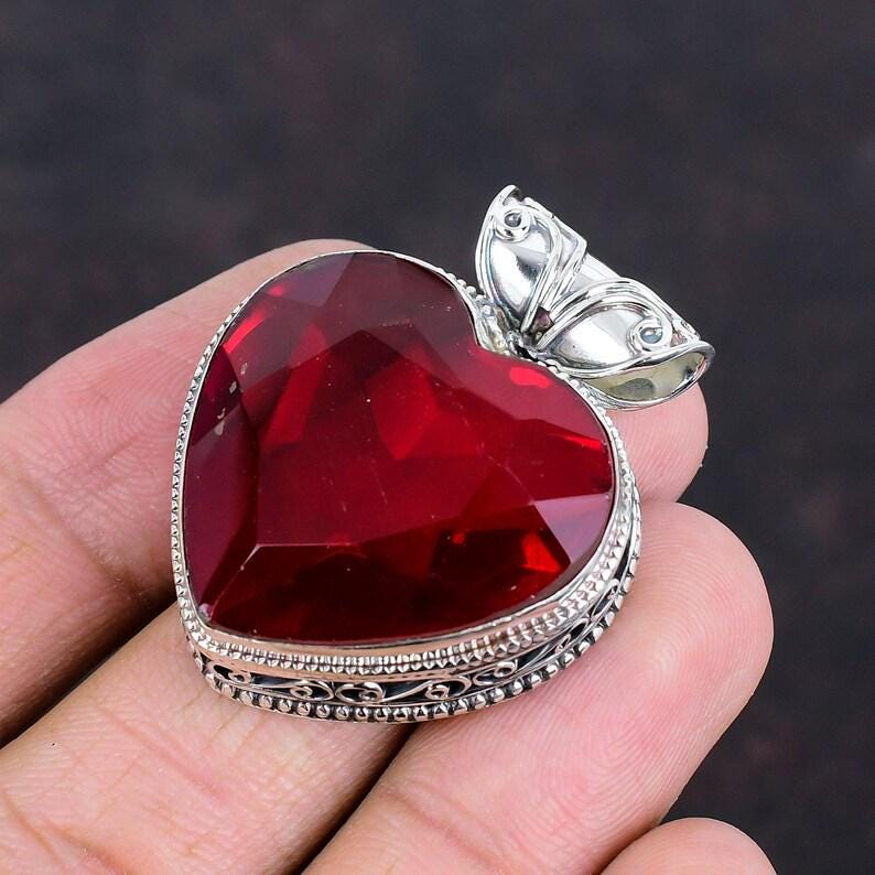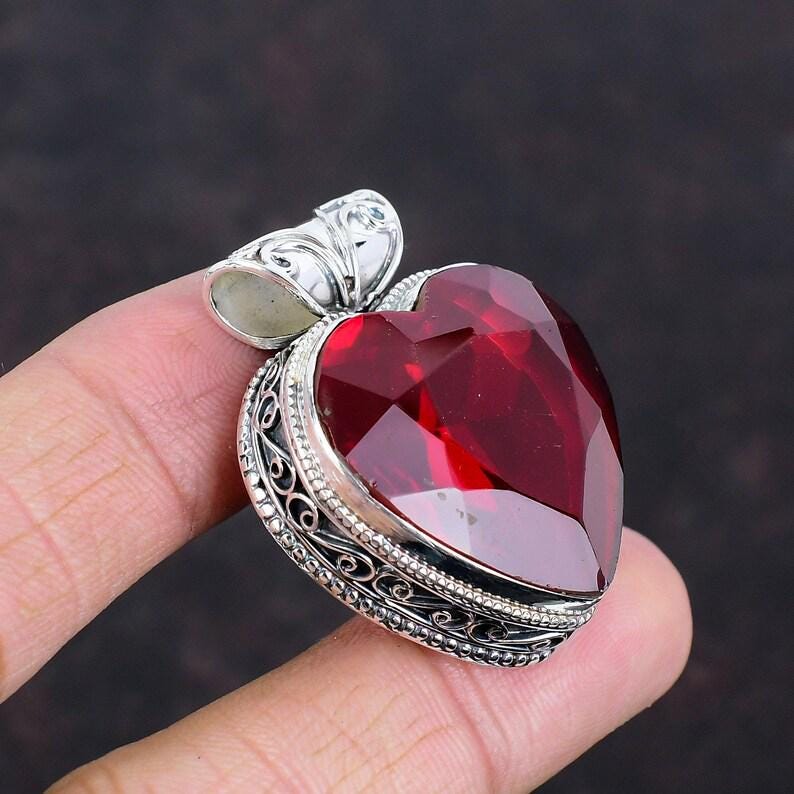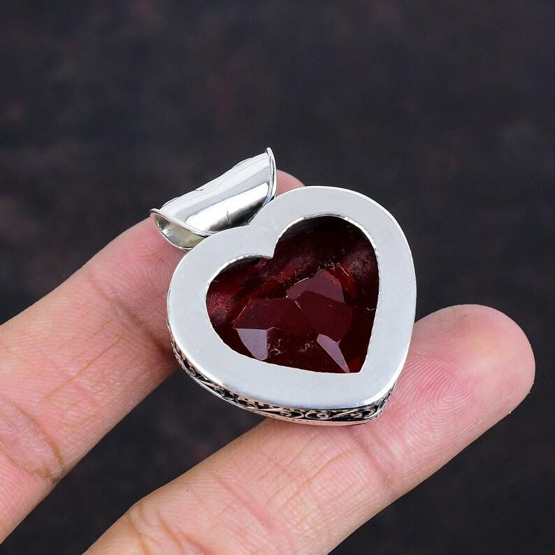 mozambique garnet faceted pendant,beautiful vintage pendant,925 sterling silver pendant,handmade gemstone jewelry boho pendant gifts for him