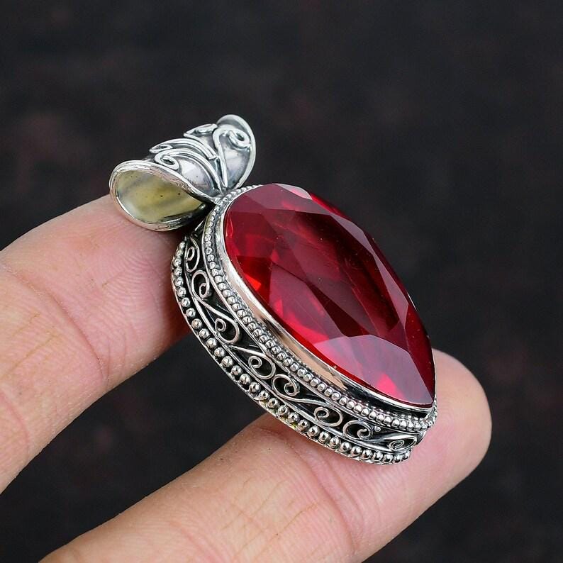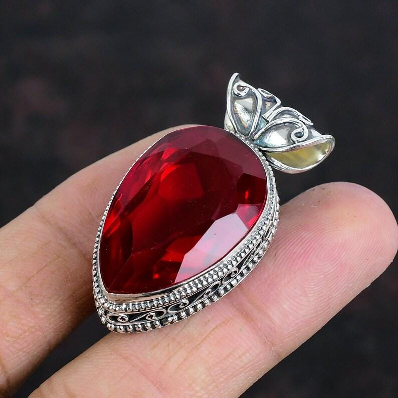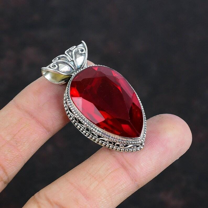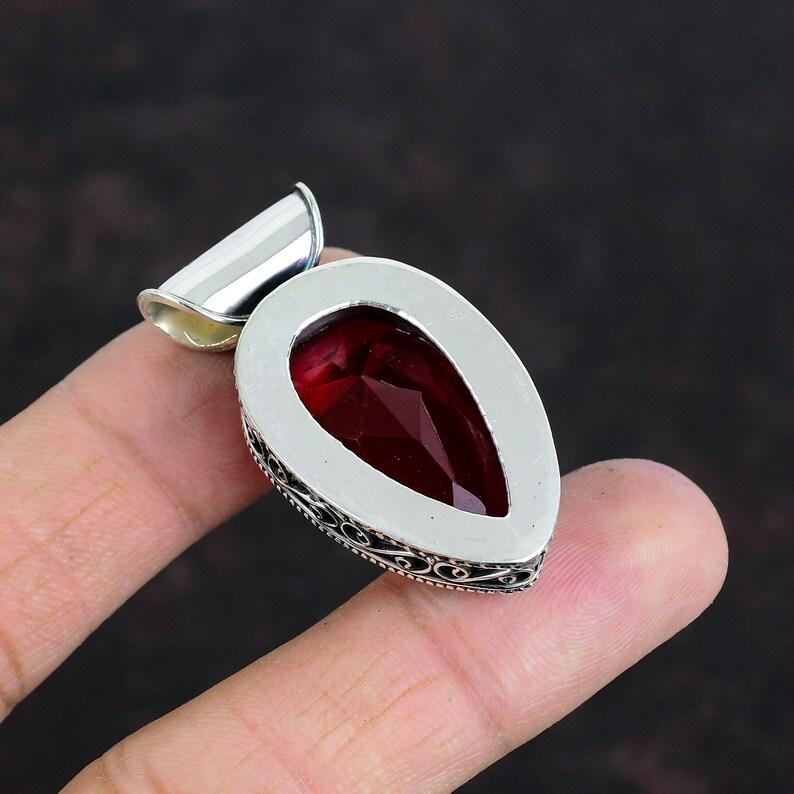Mozambique Garnet Pendant,Gemstone Pendant,Handmade Jewelry,925 Sterling Silver Pendant,Statement Jewelry Anniversary Gifts