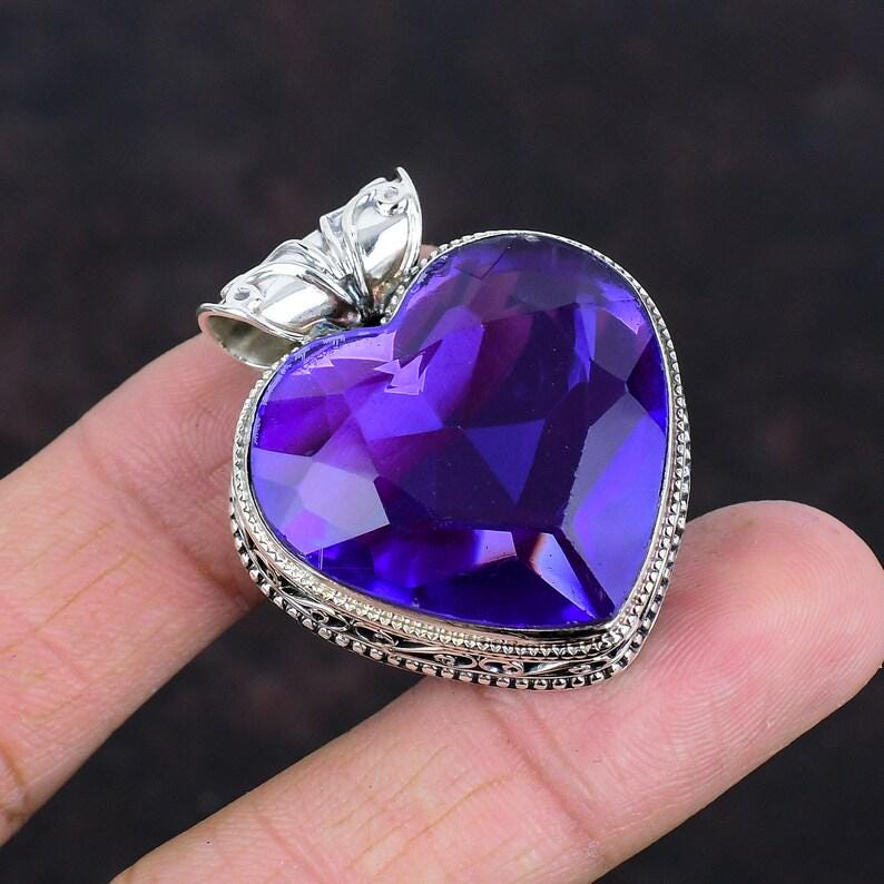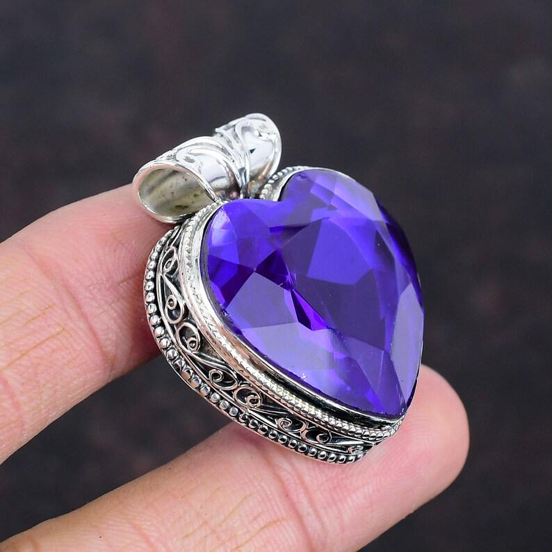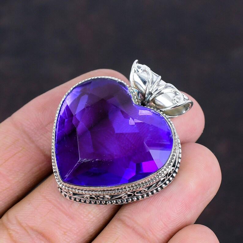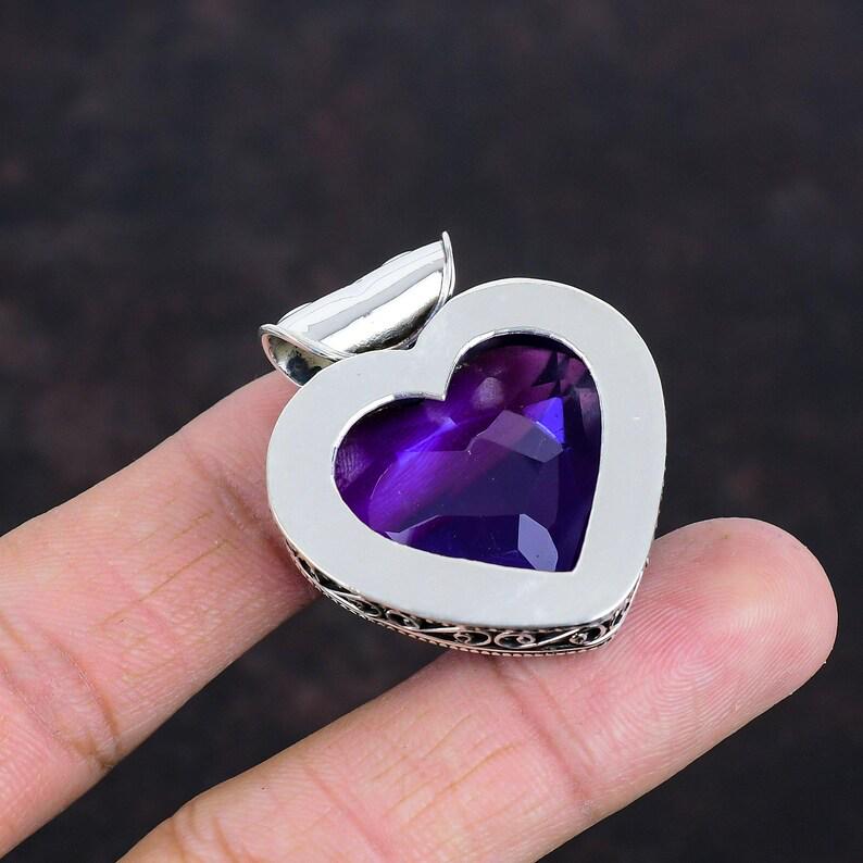 Handmade African Amethyst Heart Pendant: 925 Sterling Silver Boho Jewelry