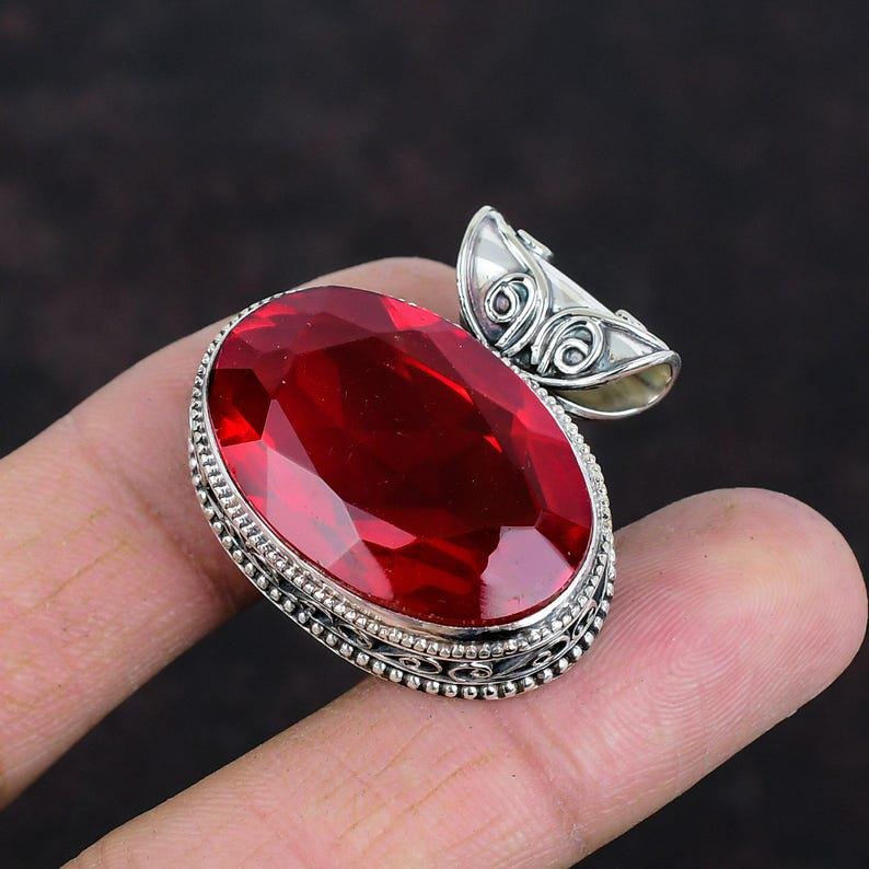 Mozambique Garnet Pendant,Gemstone Pendant,Handmade Jewelry,925 Sterling Silver Pendant,Statement Jewelry Anniversary Gifts