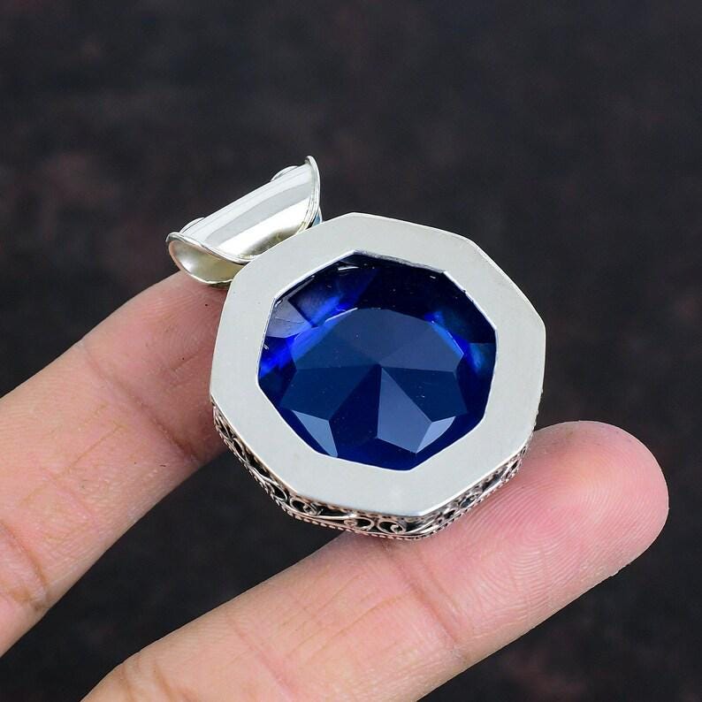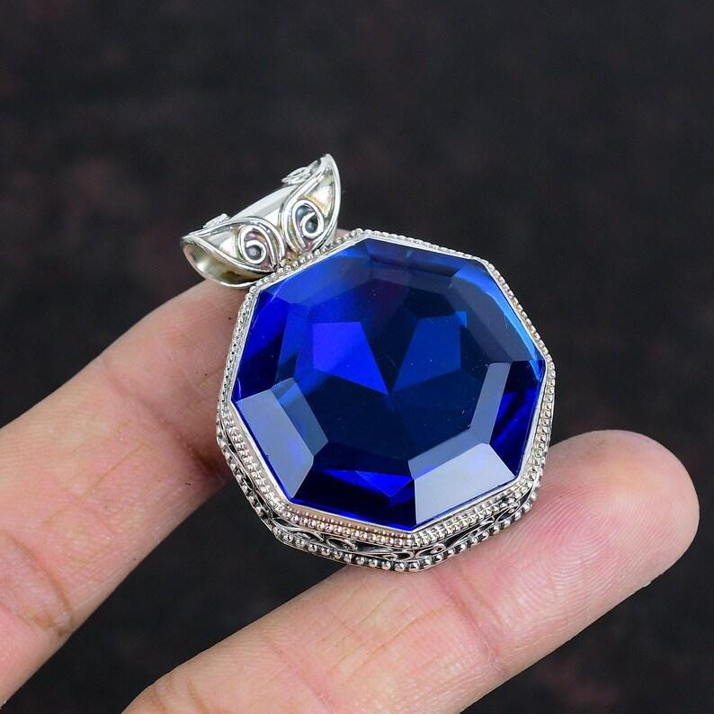 Lab-Created Tanzanite Quartz Sterling Silver Pendant: Boho Healing Jewelry