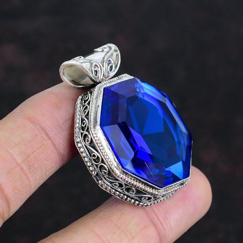 tanzanite quartz pendant vintage pendant 925 sterling silver pendant natural gemstone jewelry handmade elegant pendant gifts for her