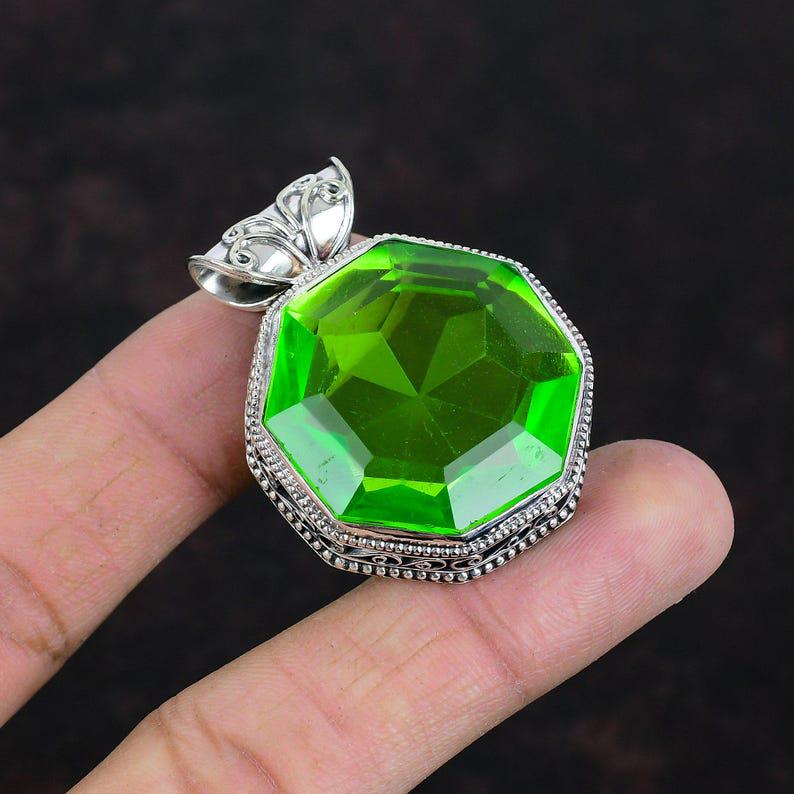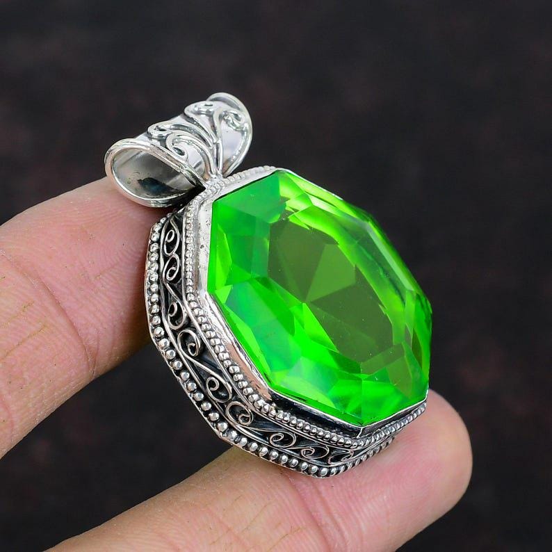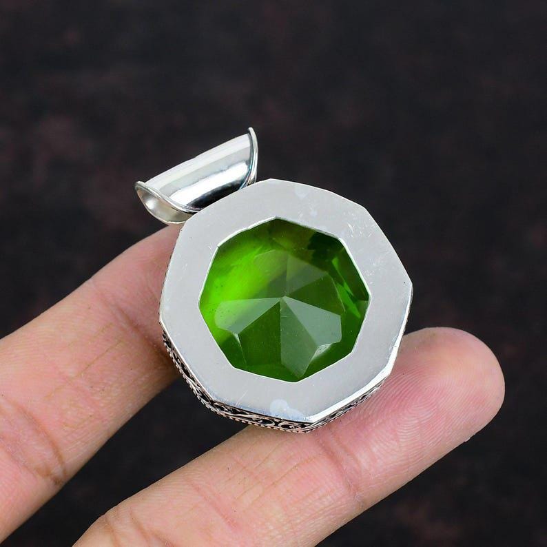 Peridot Gemstone Pendant, green color pendant,Vintage Pendant,925 Sterling Silver Pendant,Handmade Jewelry Gifts For Mom