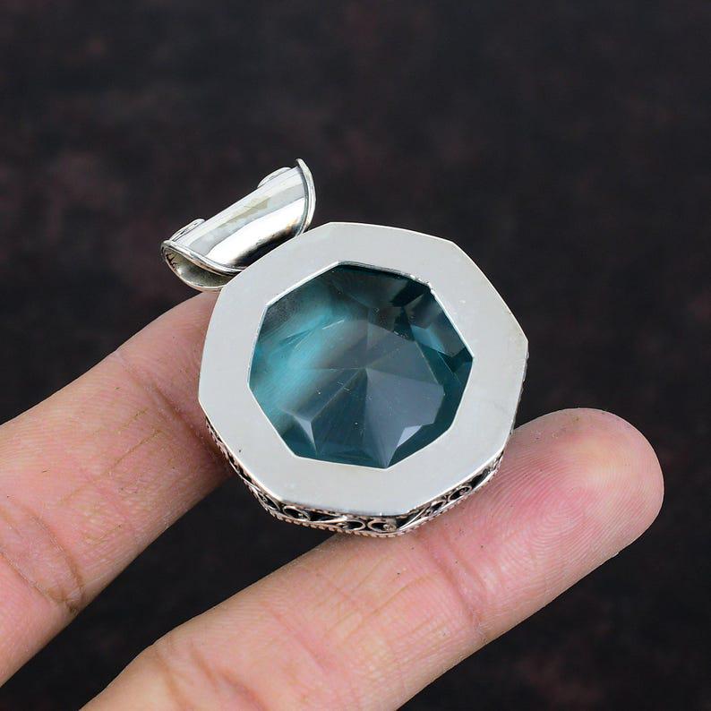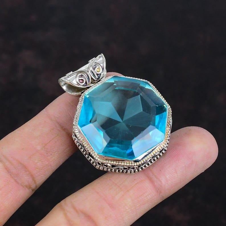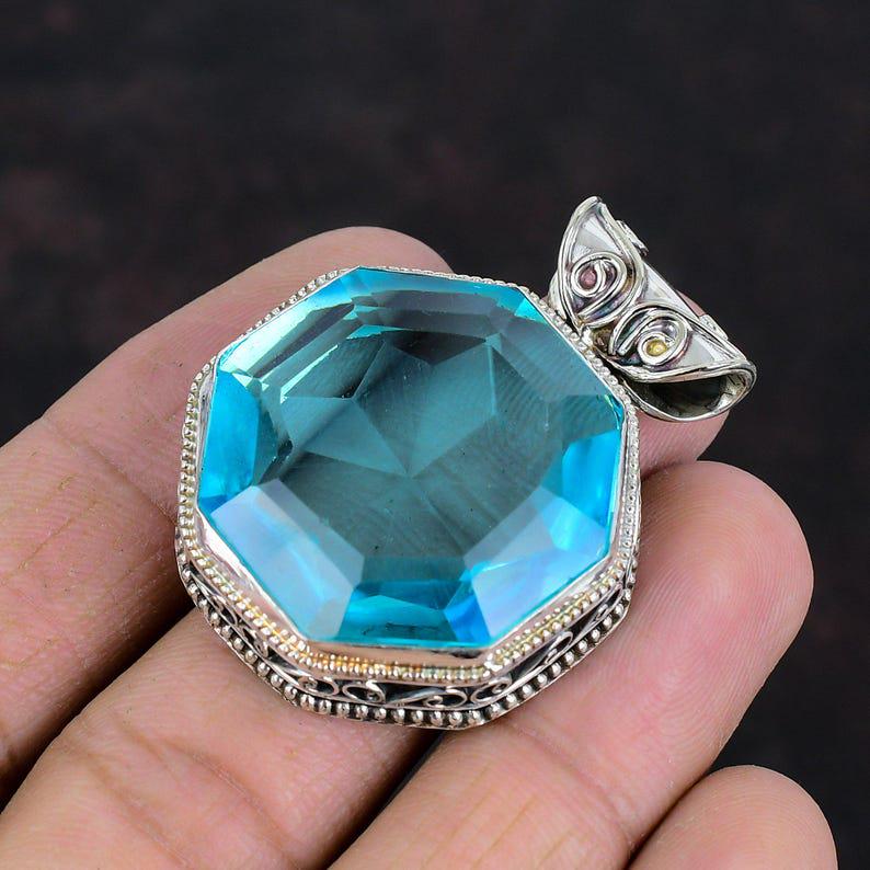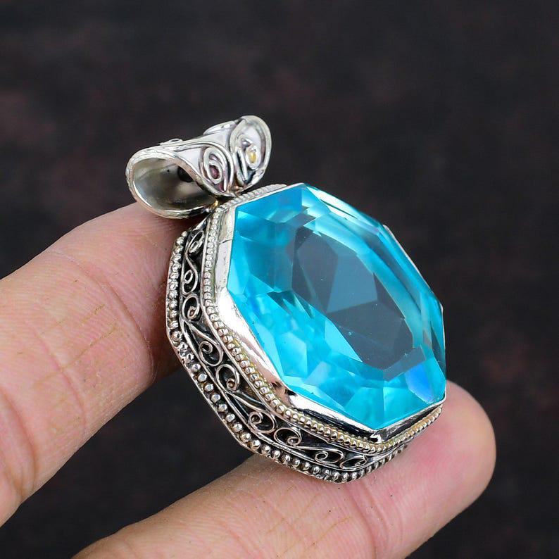 Faceted Swiss Blue Topaz Gemstone Pendant Handmade Jewelry Vintage Pendant 925 Sterling Silver Pendant Gifts For Wife Unique Design Pendant
