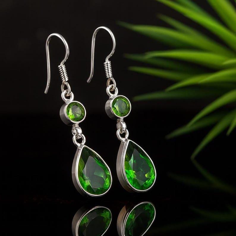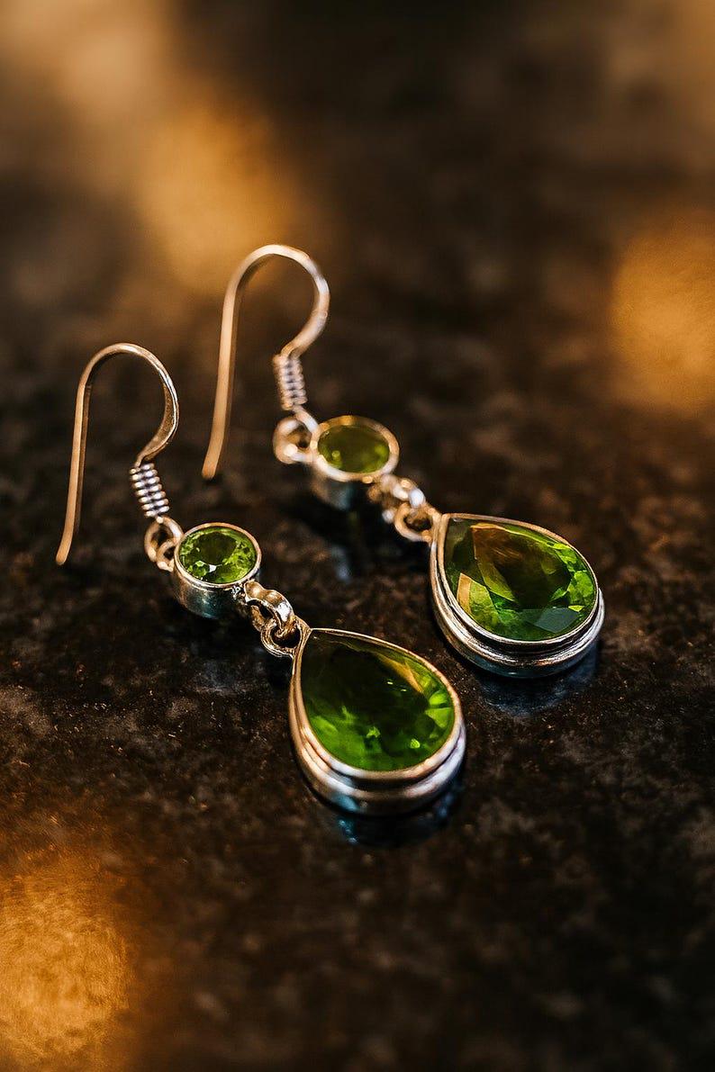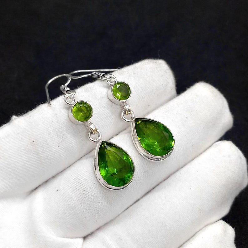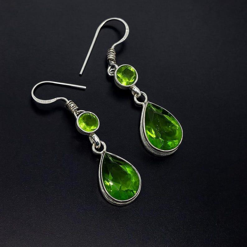 Handmade Peridot Dangle Earrings: 925 Sterling Silver Drop Earrings